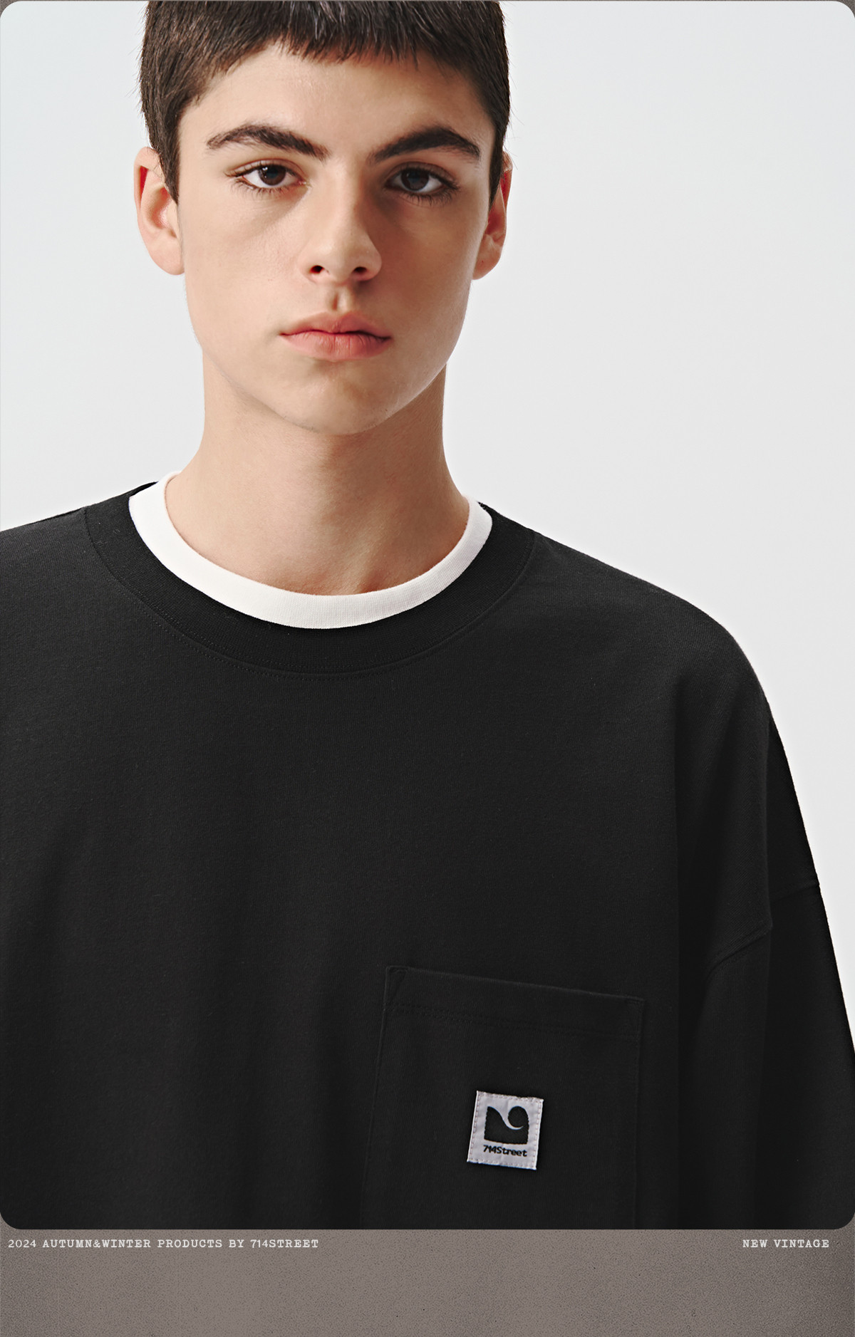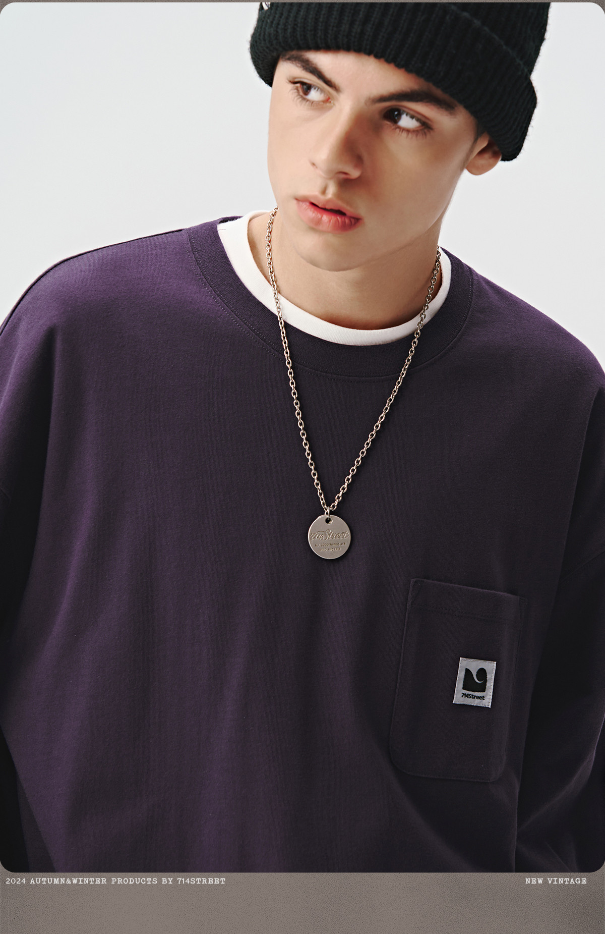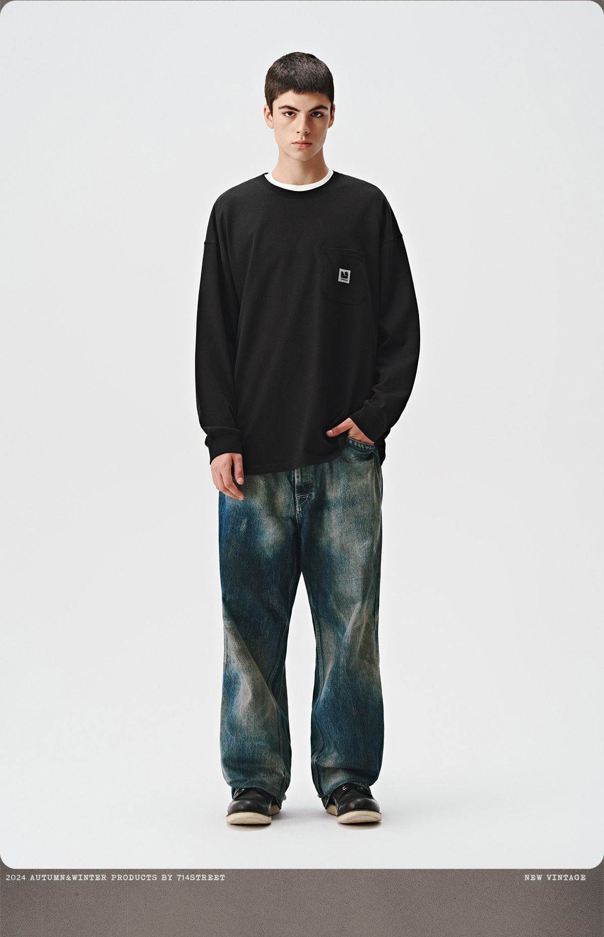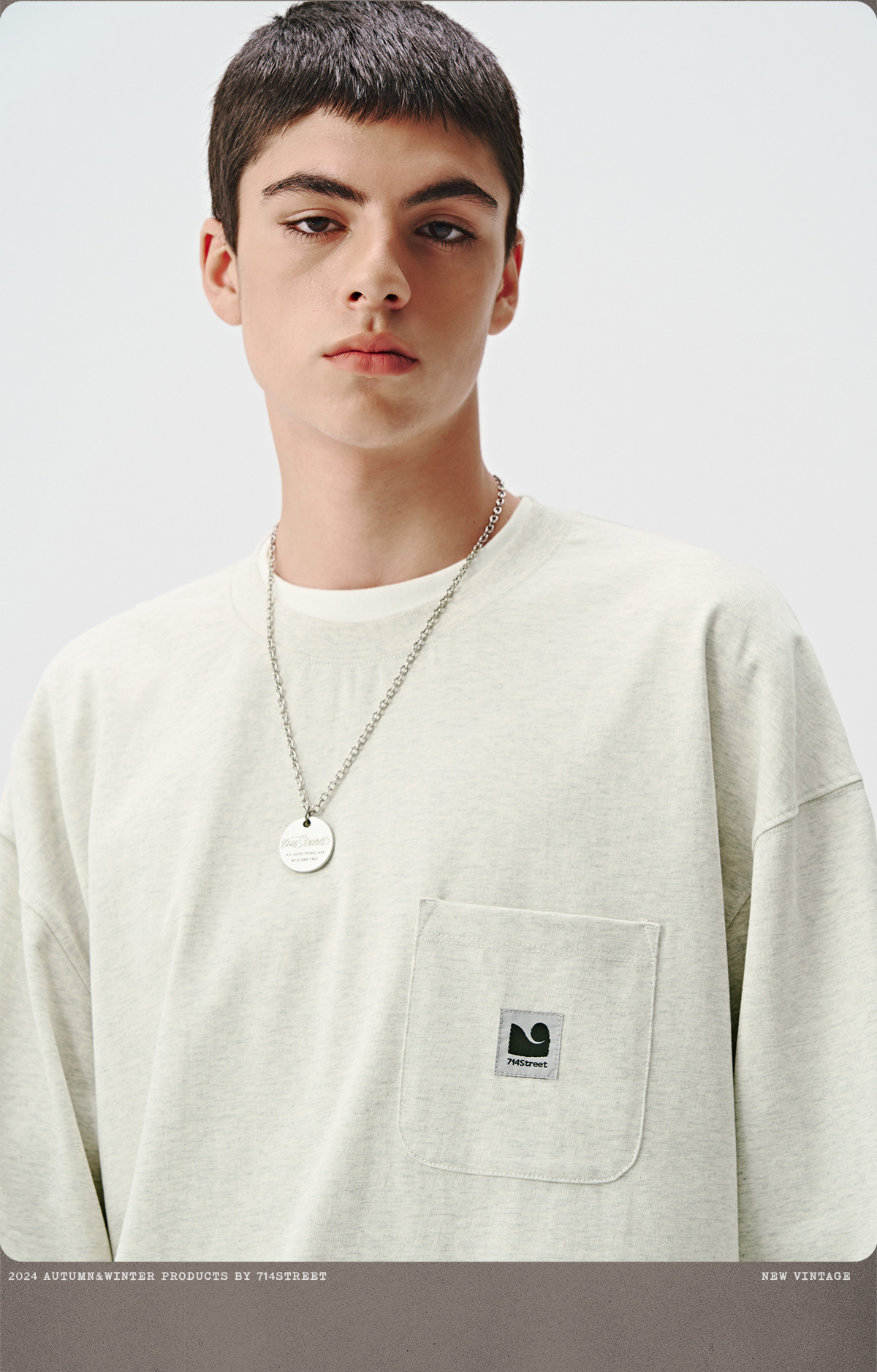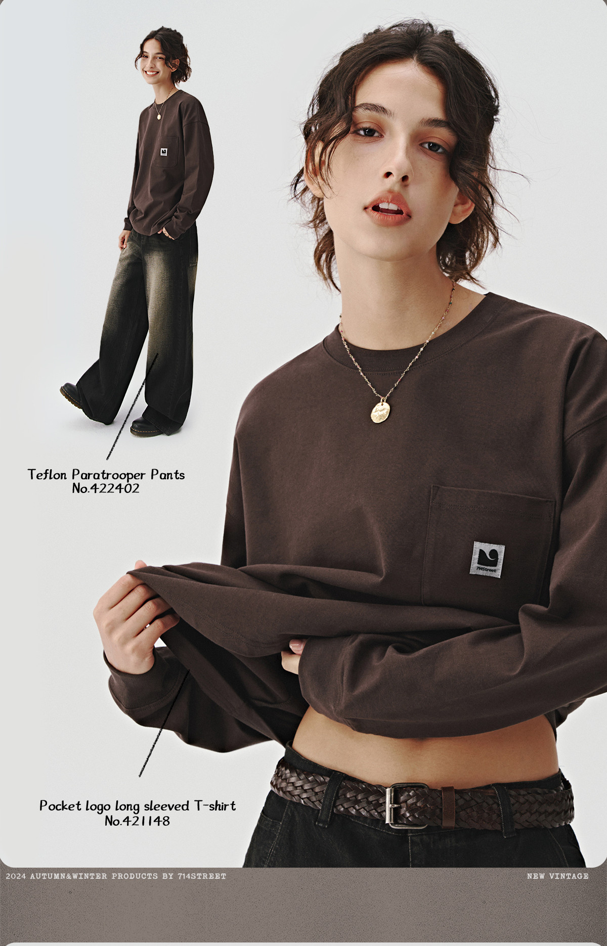 714street重磅300g口袋长袖T恤男2024秋季新款情侣装宽松休闲上衣