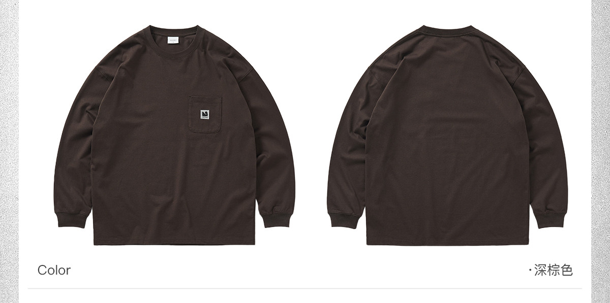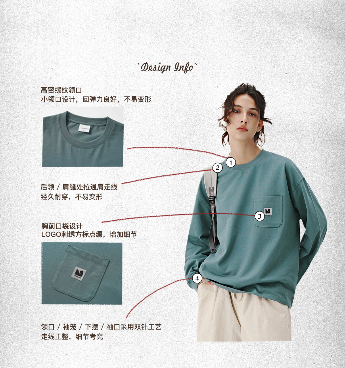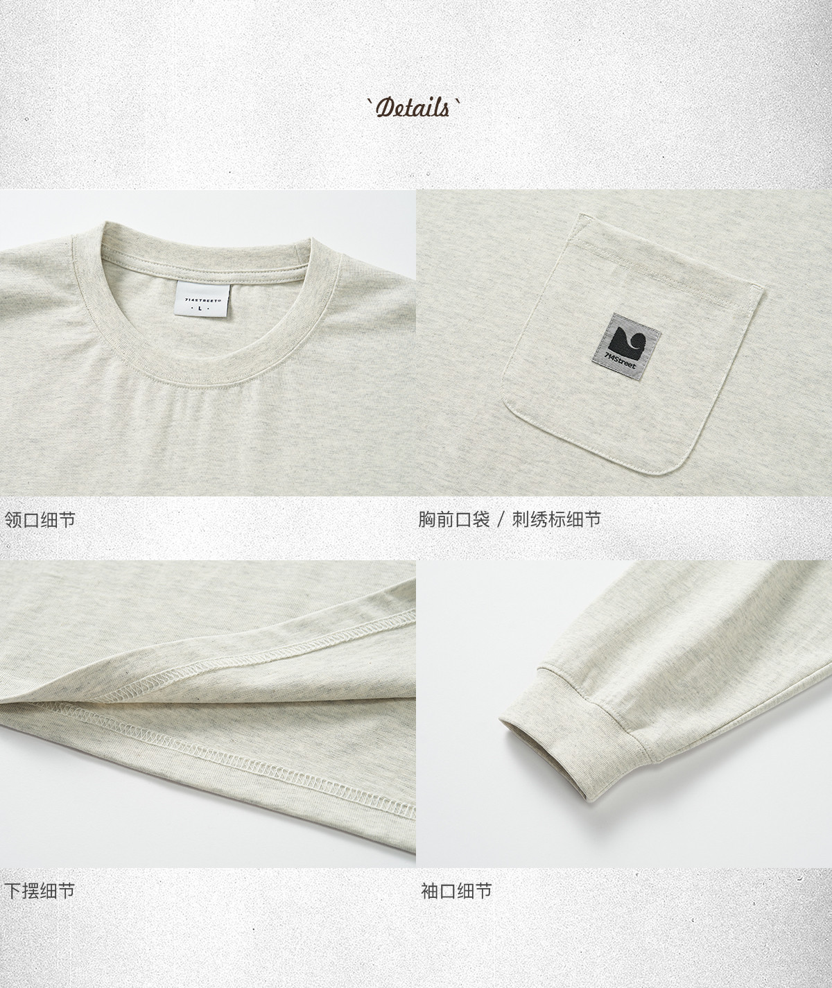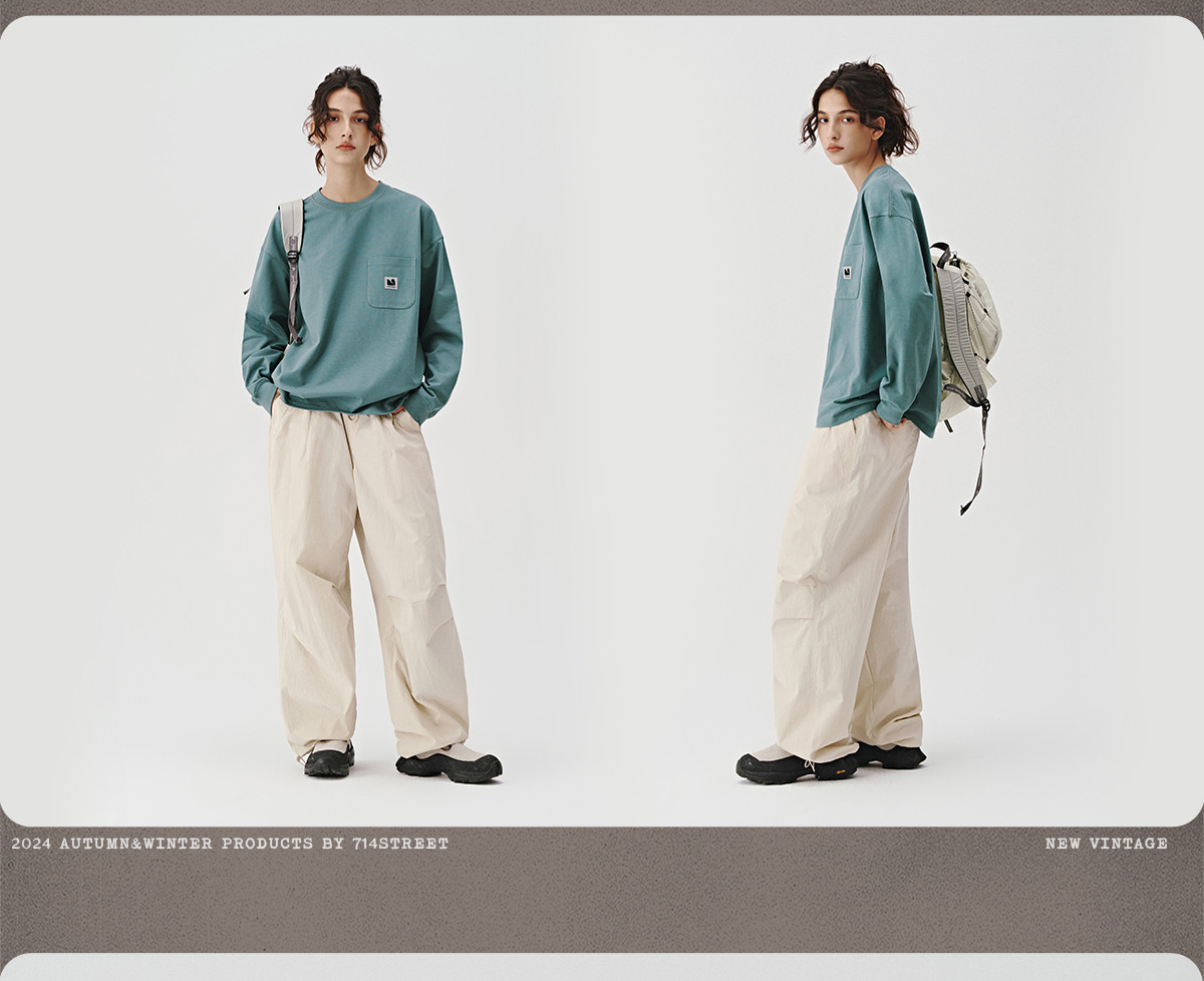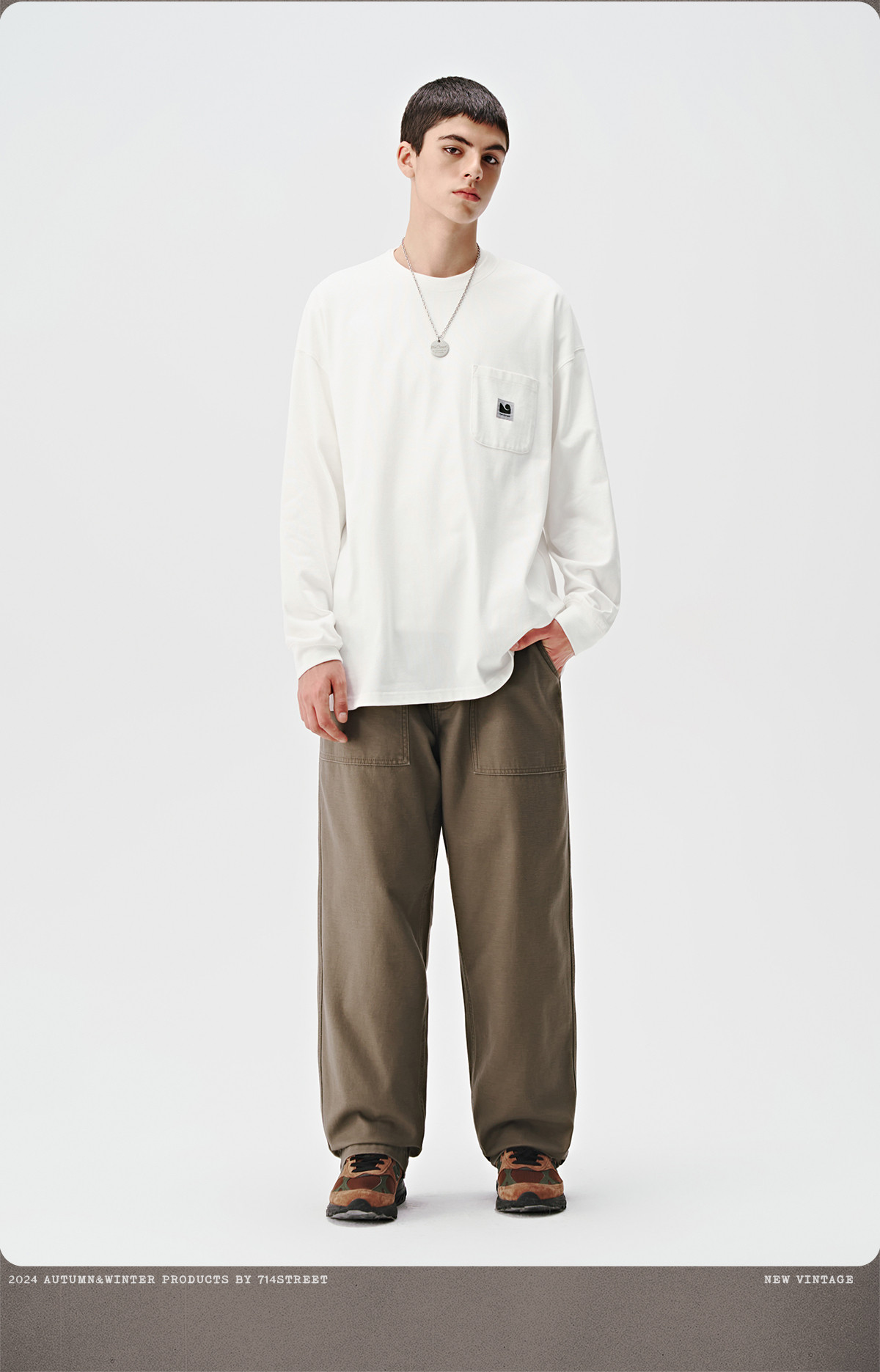 714street重磅300g口袋长袖T恤男2024秋季新款情侣装宽松休闲上衣