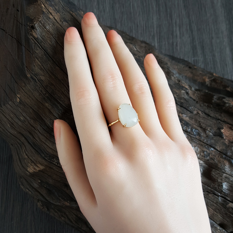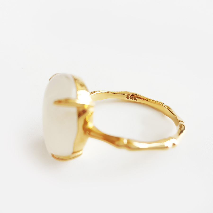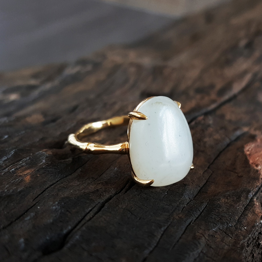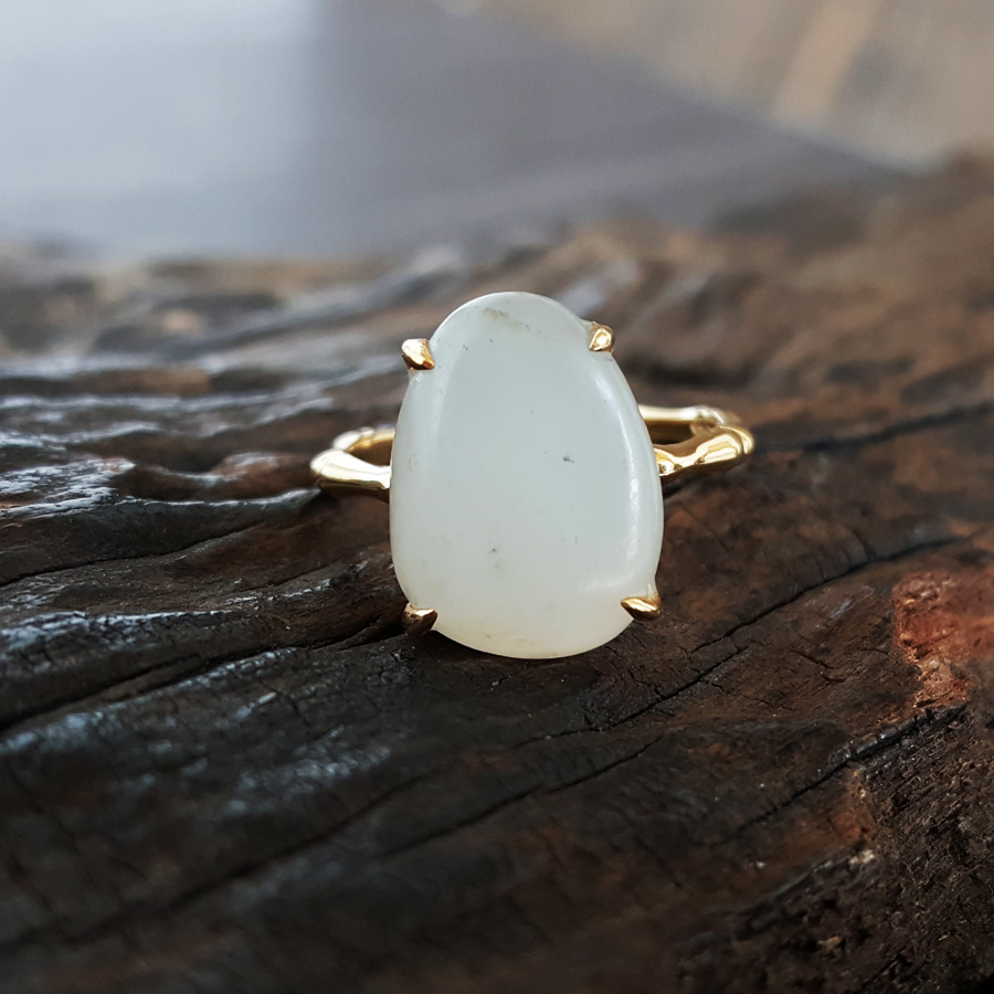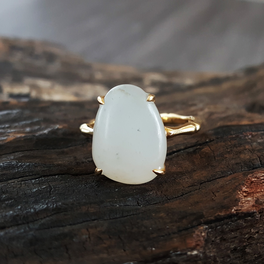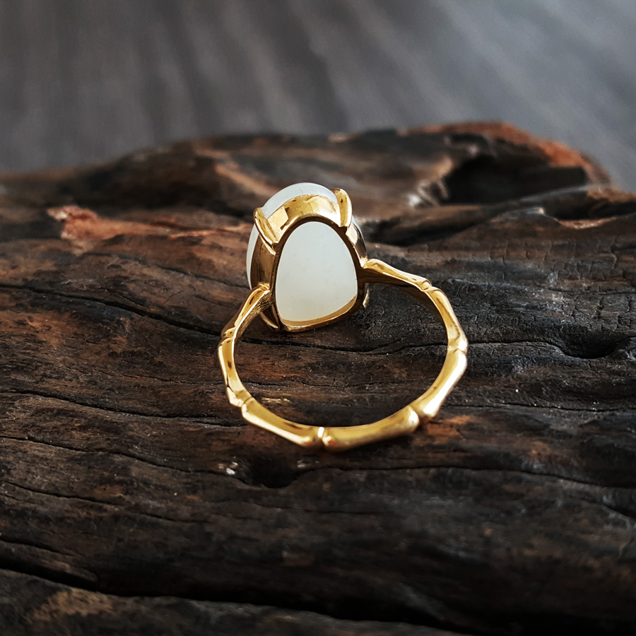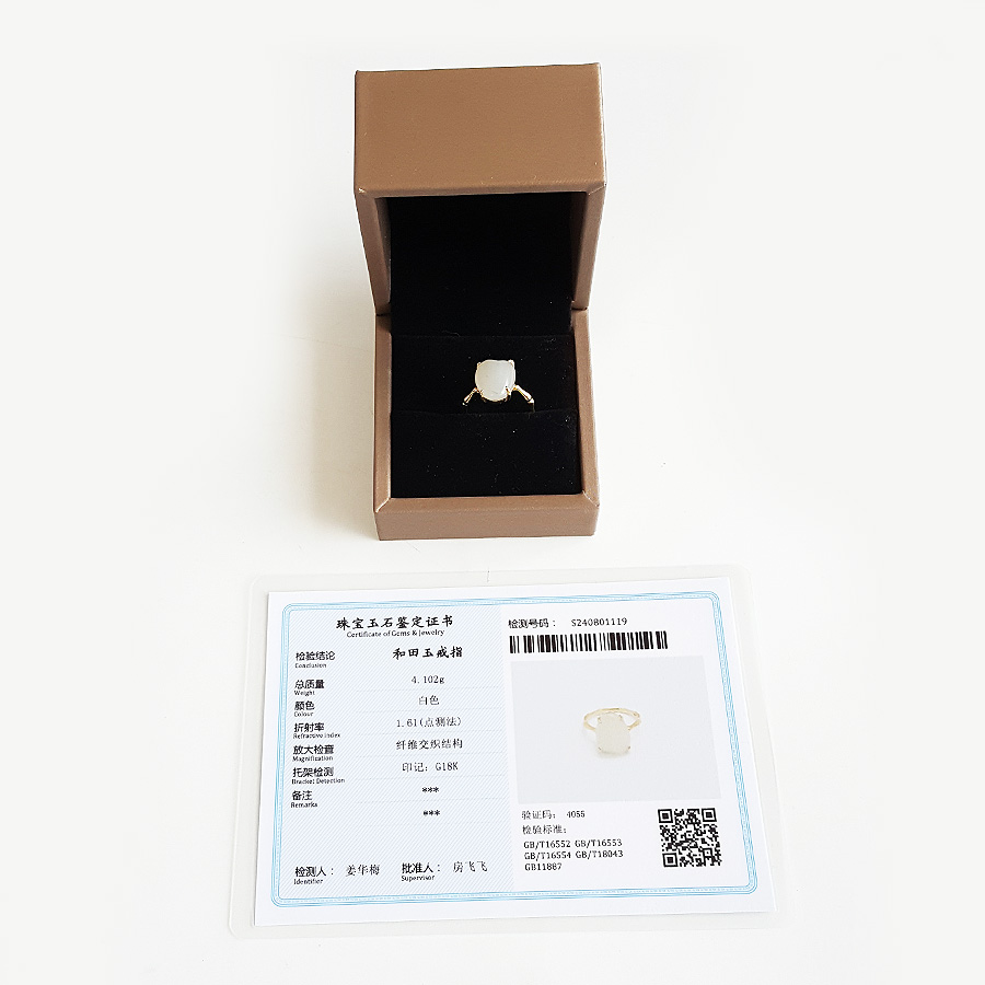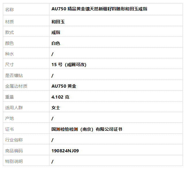 【天然正品】AU750精品黄金镶天然新疆籽料随形和田玉戒指15号(戒圈可改)190824NJ09 现售价:2280