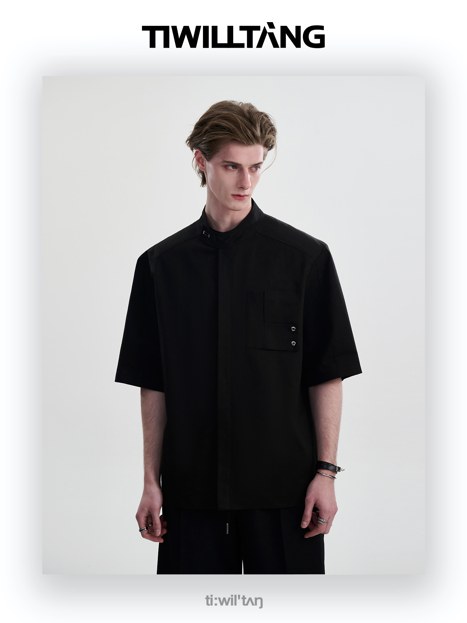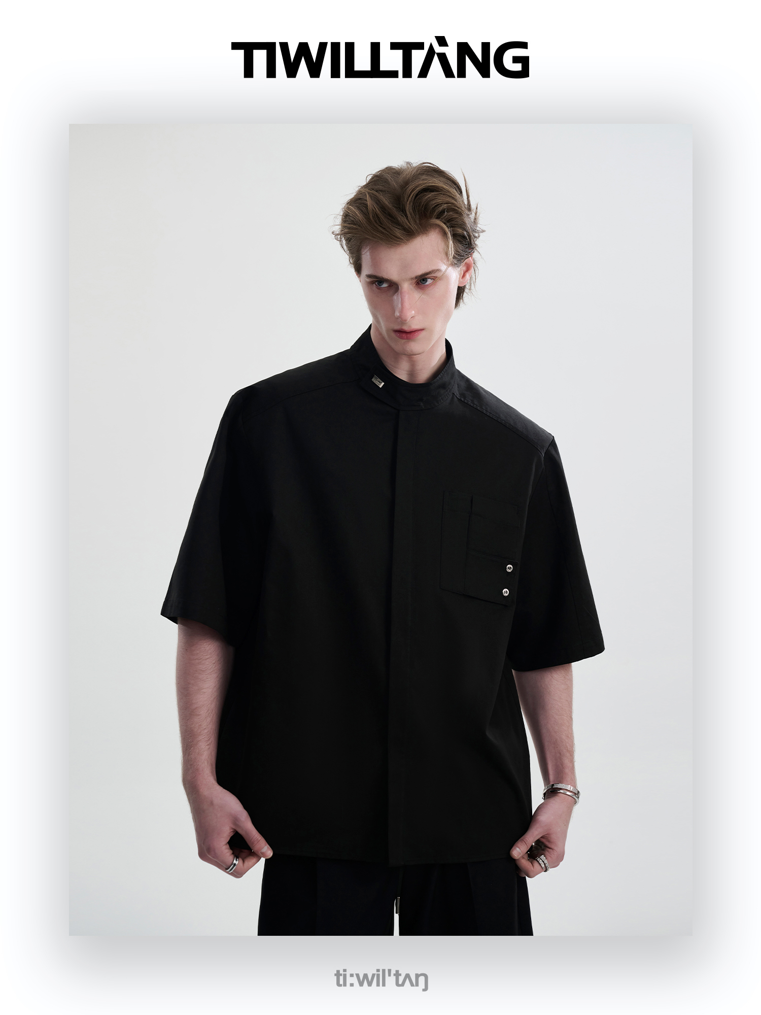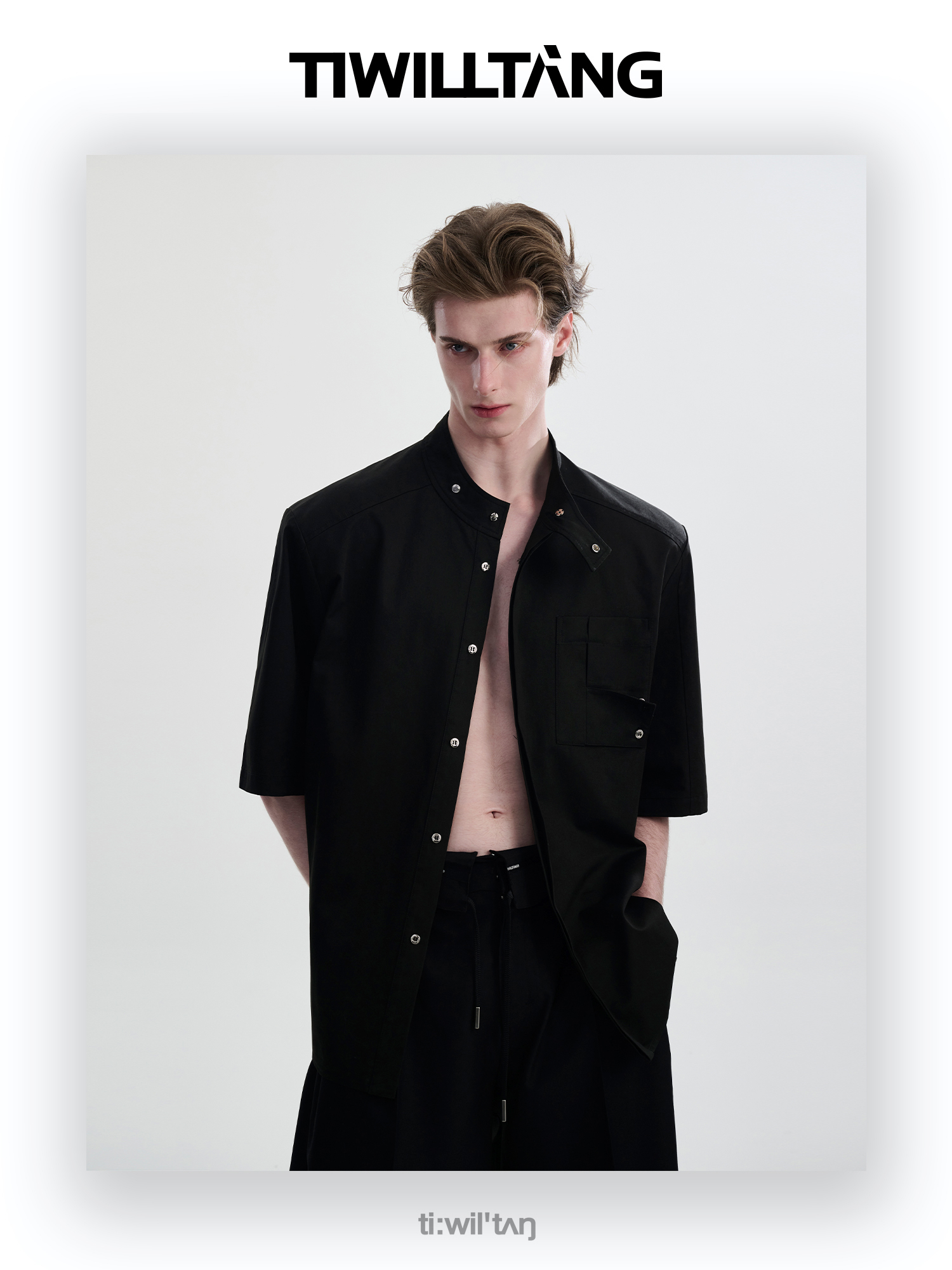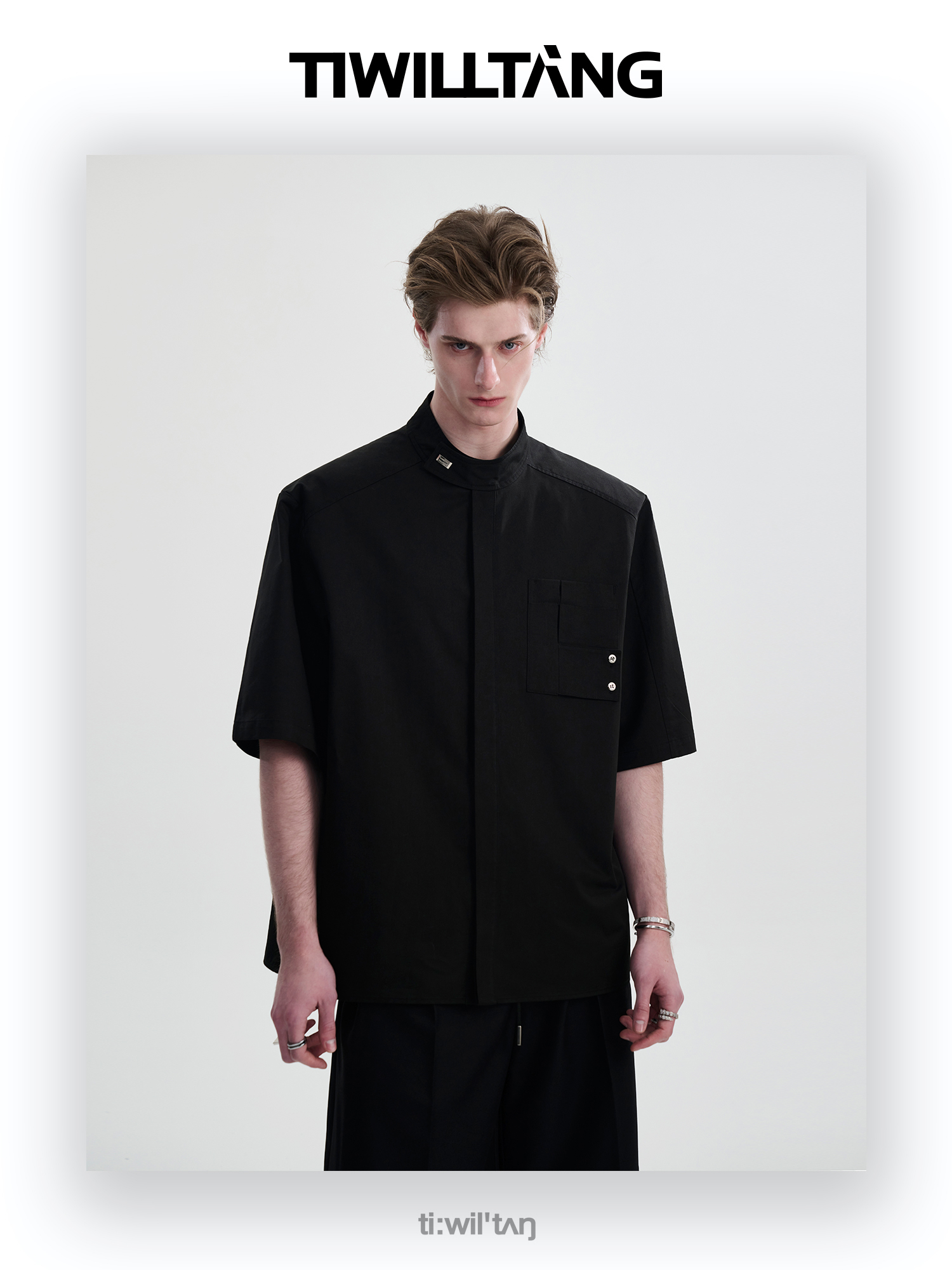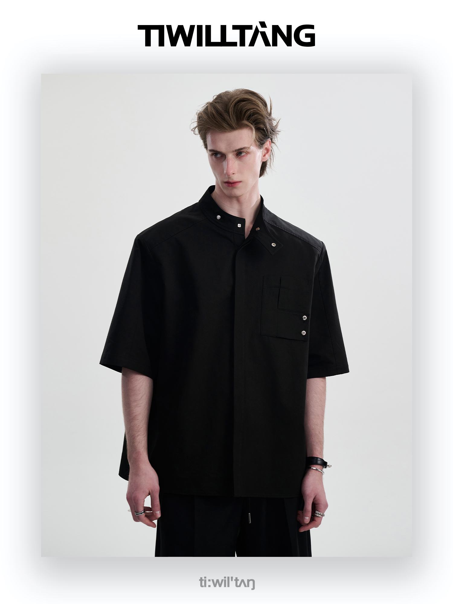 TIWILLTANG启世录“圣夜御拓”新中式克制品味扣袢短袖设计师衬衫