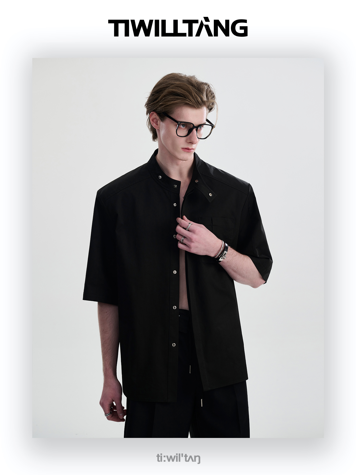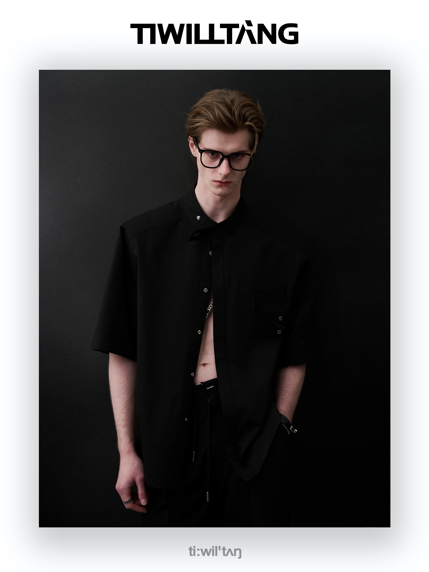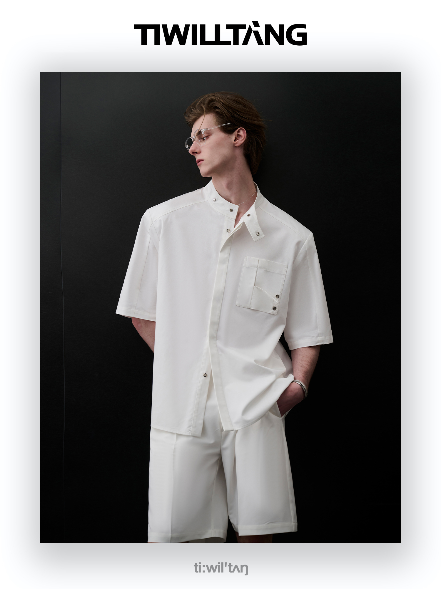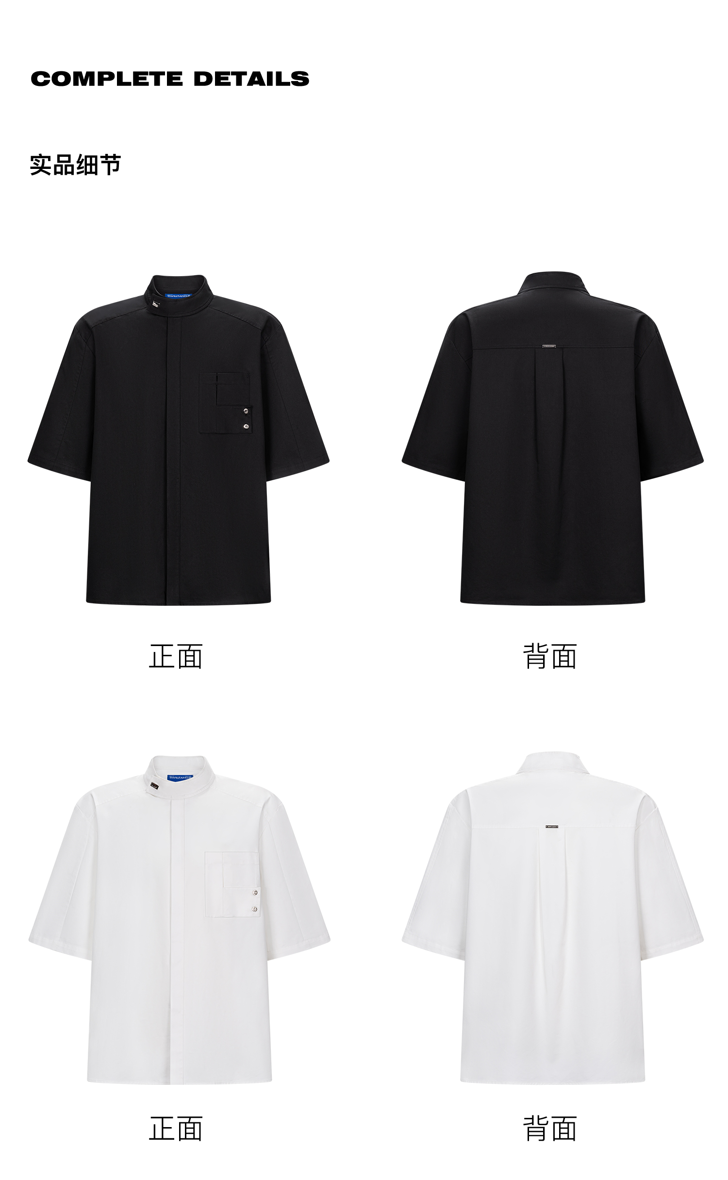 TIWILLTANG启世录“圣夜御拓”新中式克制品味扣袢短袖设计师衬衫