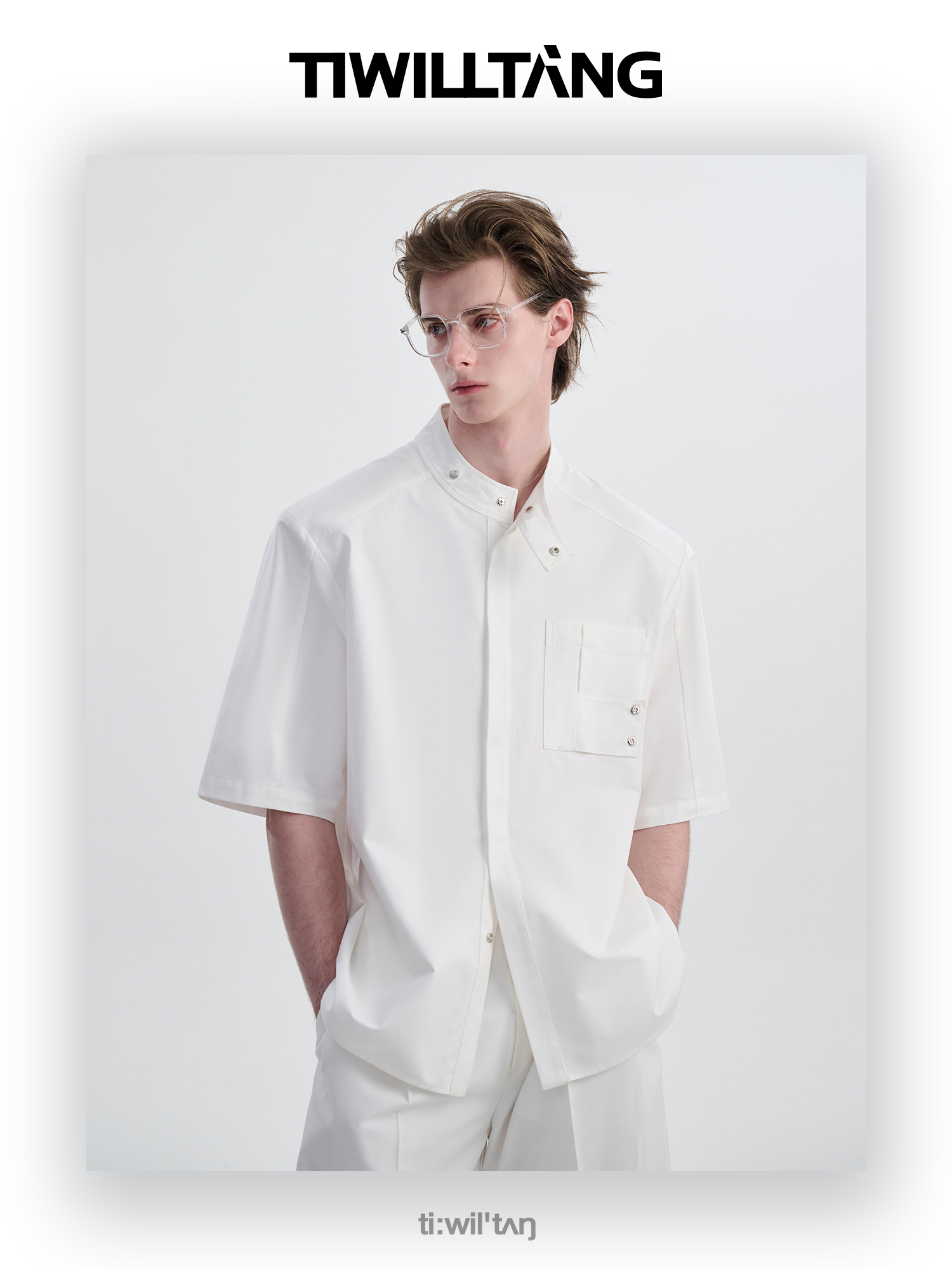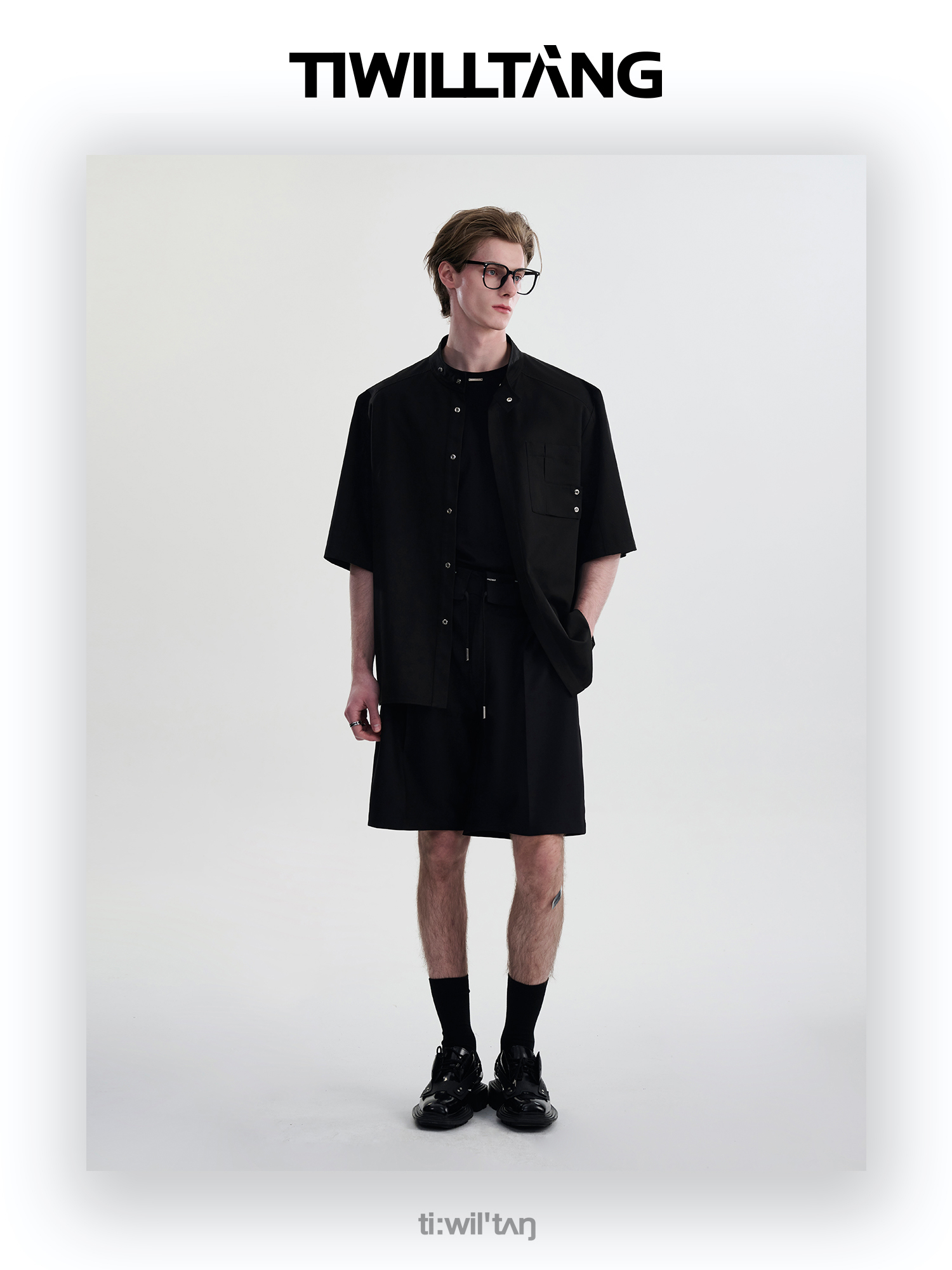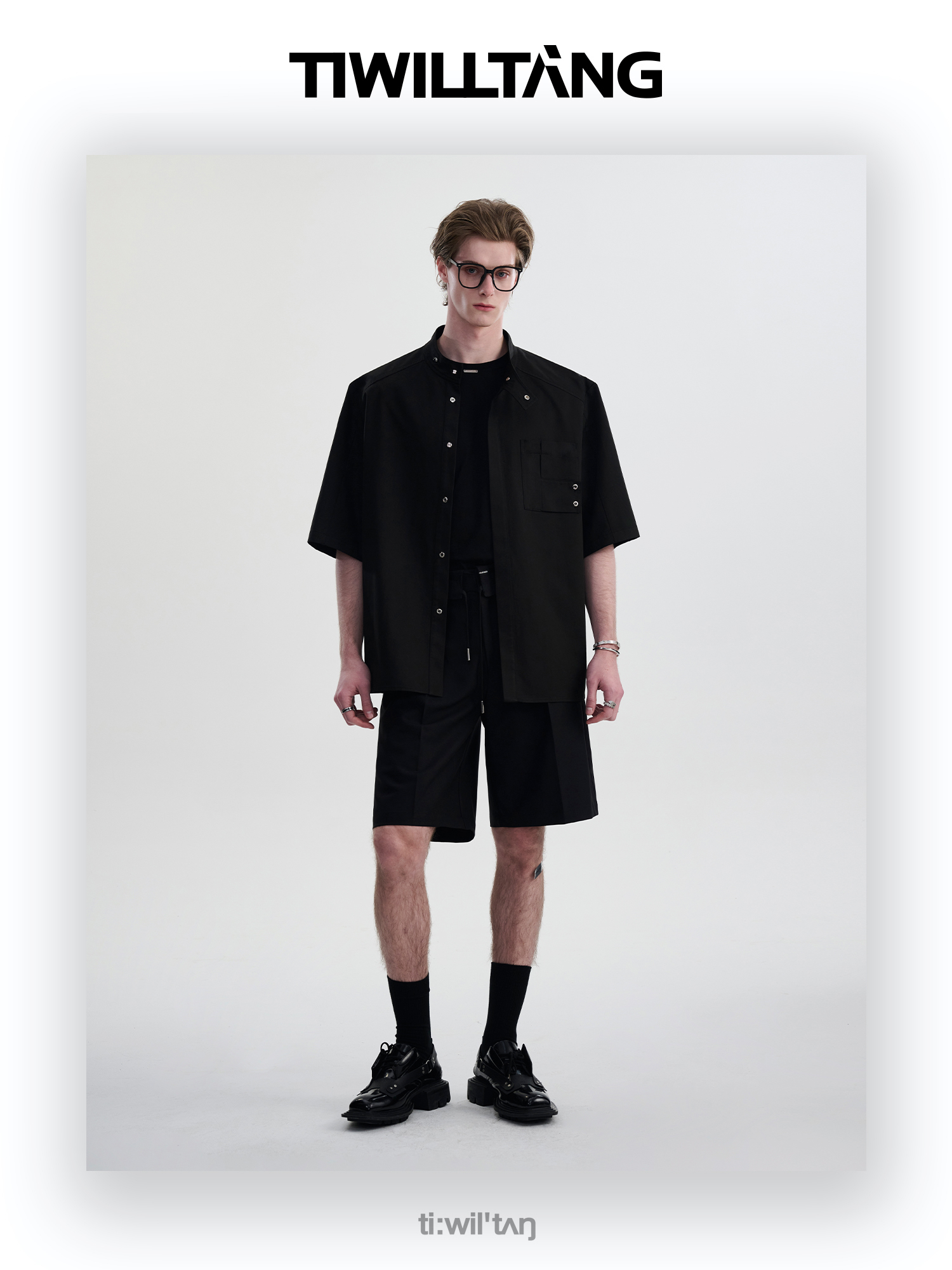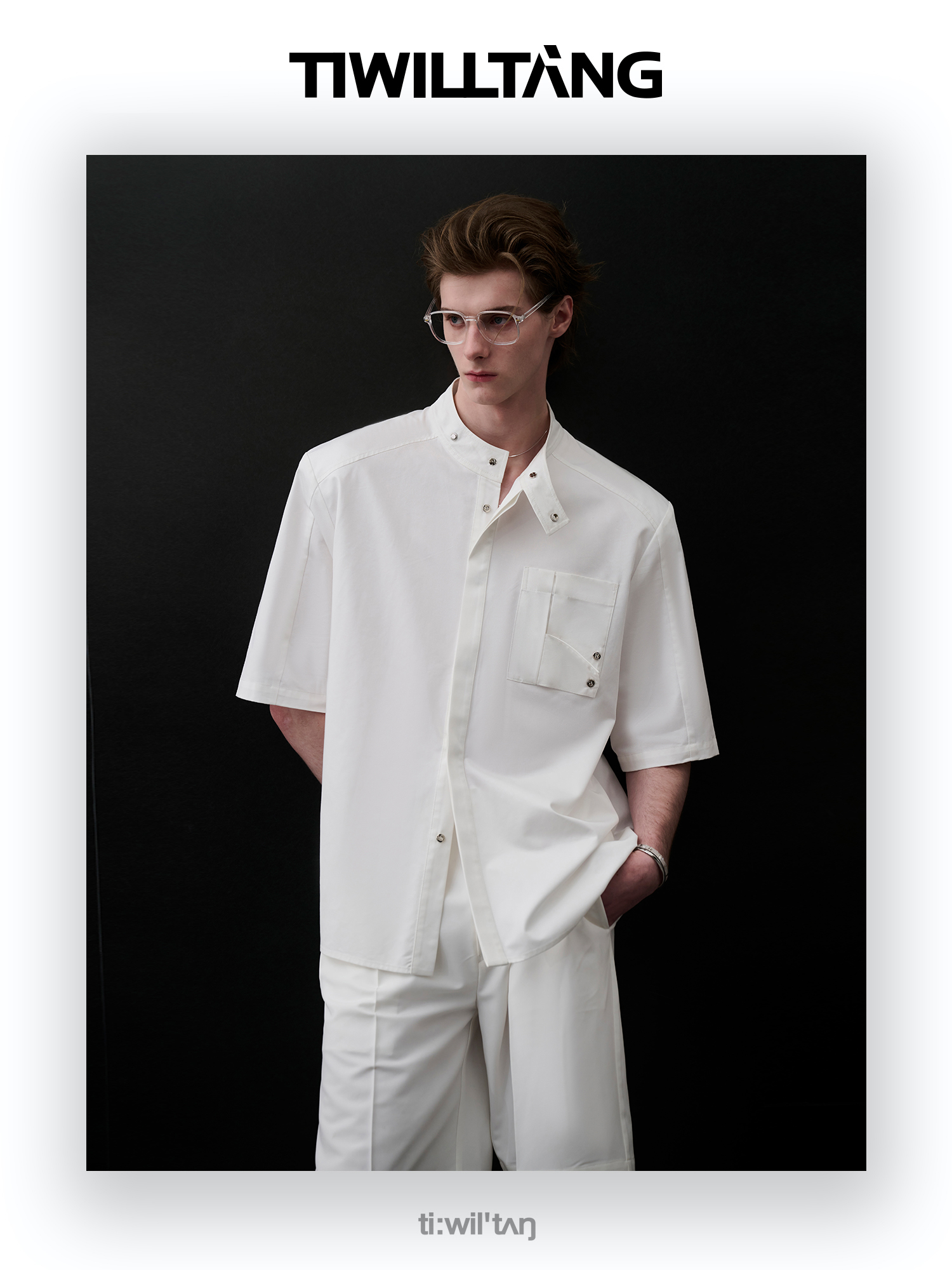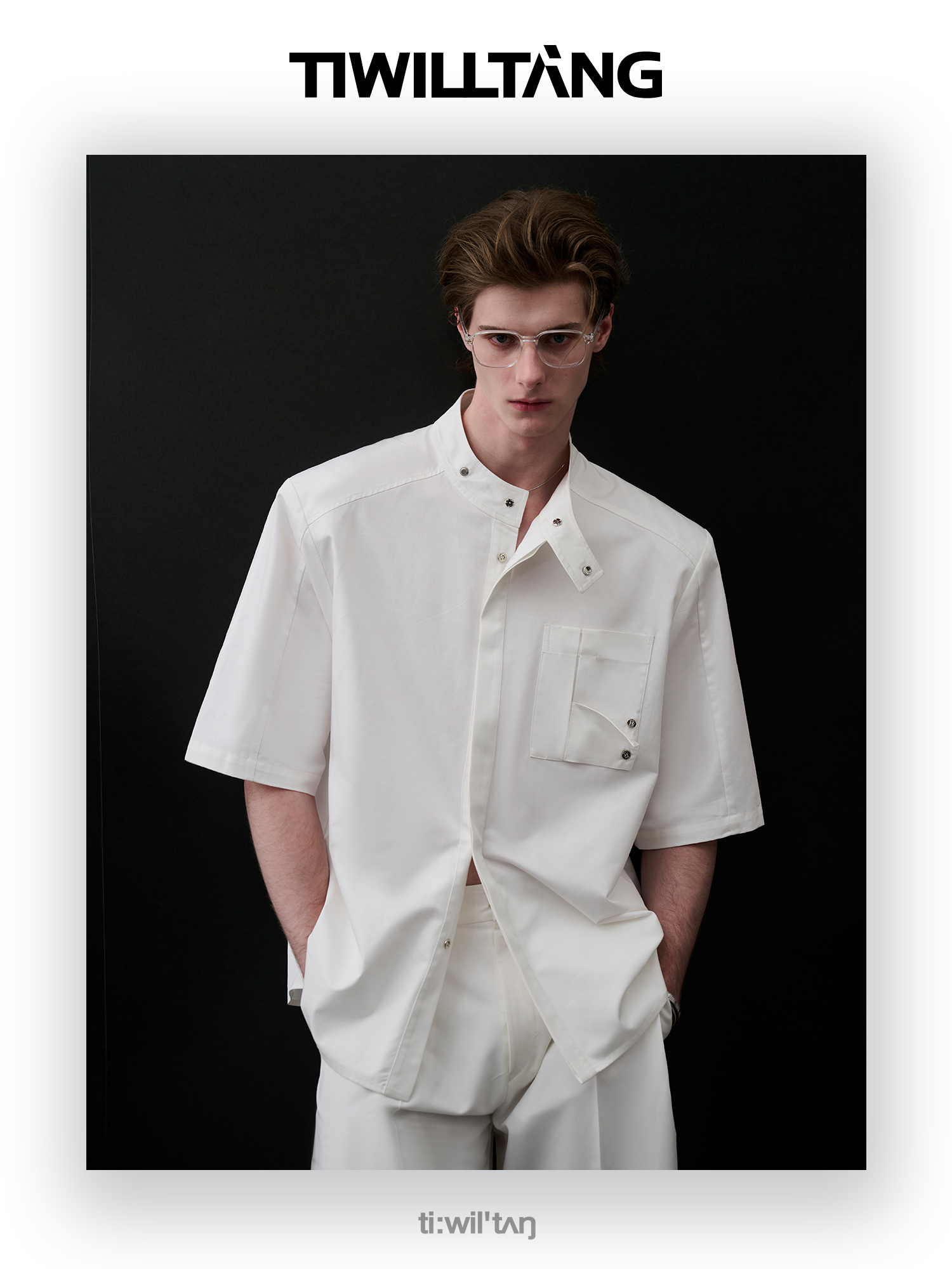TIWILLTANG启世录“圣夜御拓”新中式克制品味扣袢短袖设计师衬衫