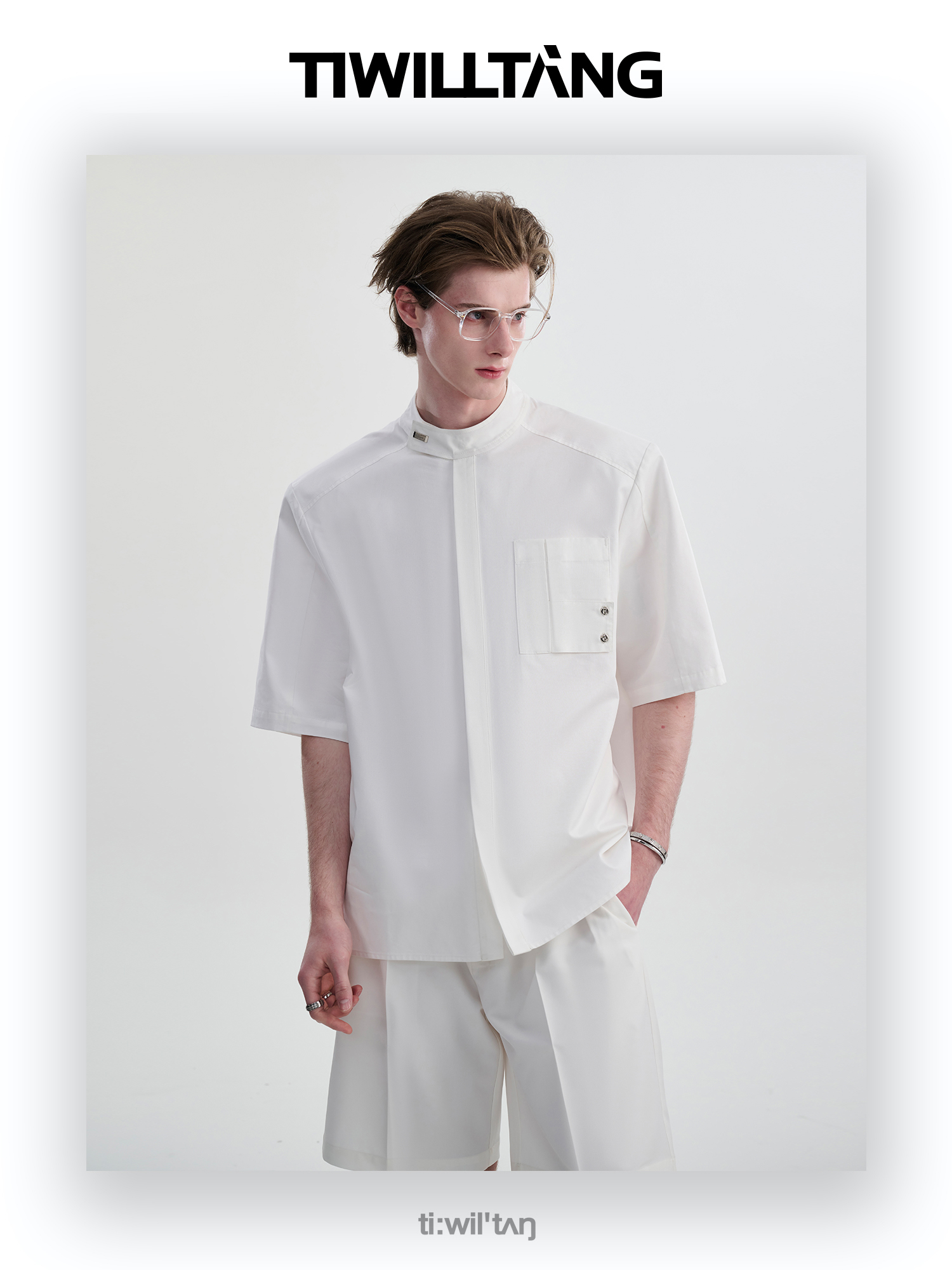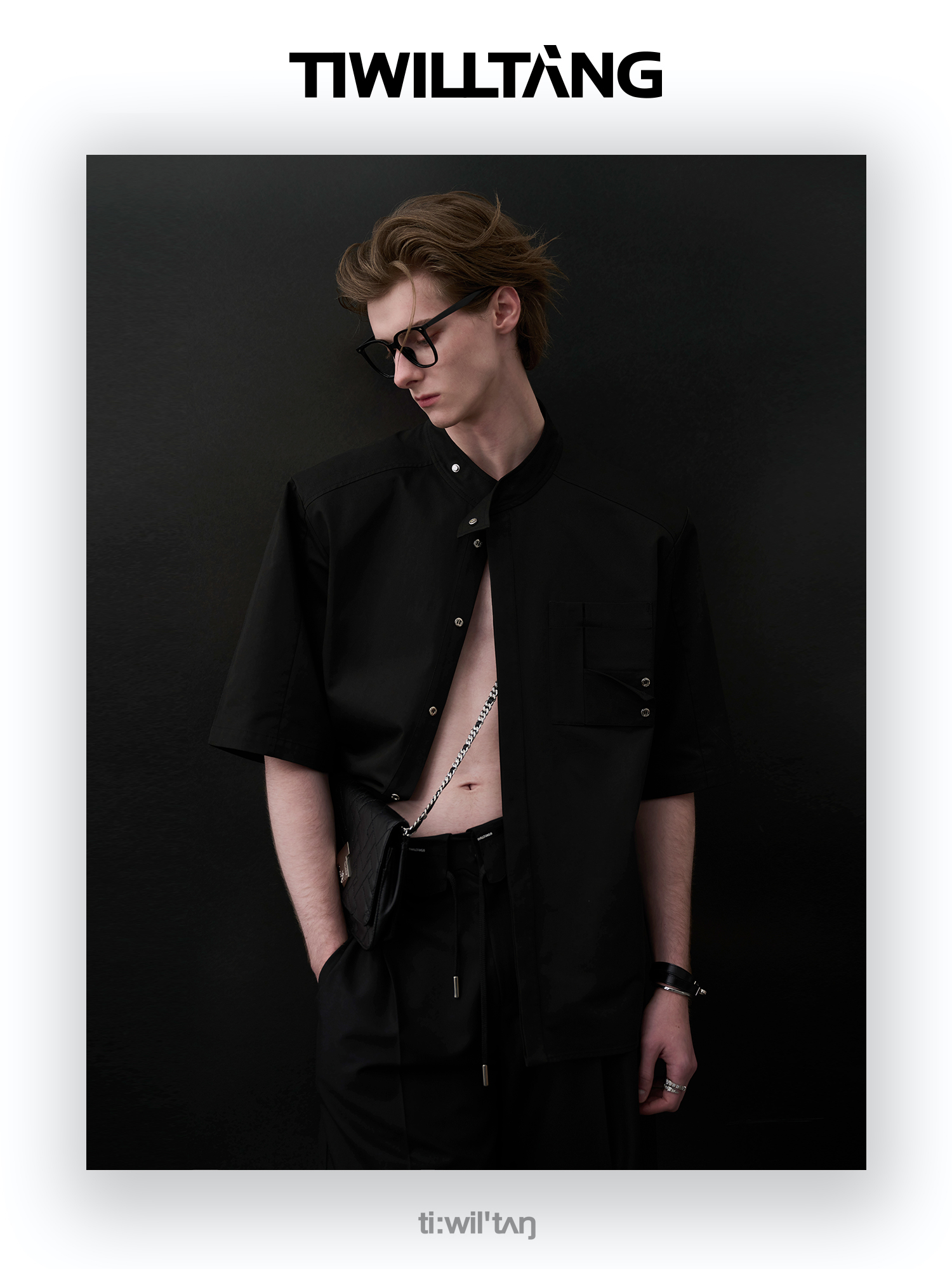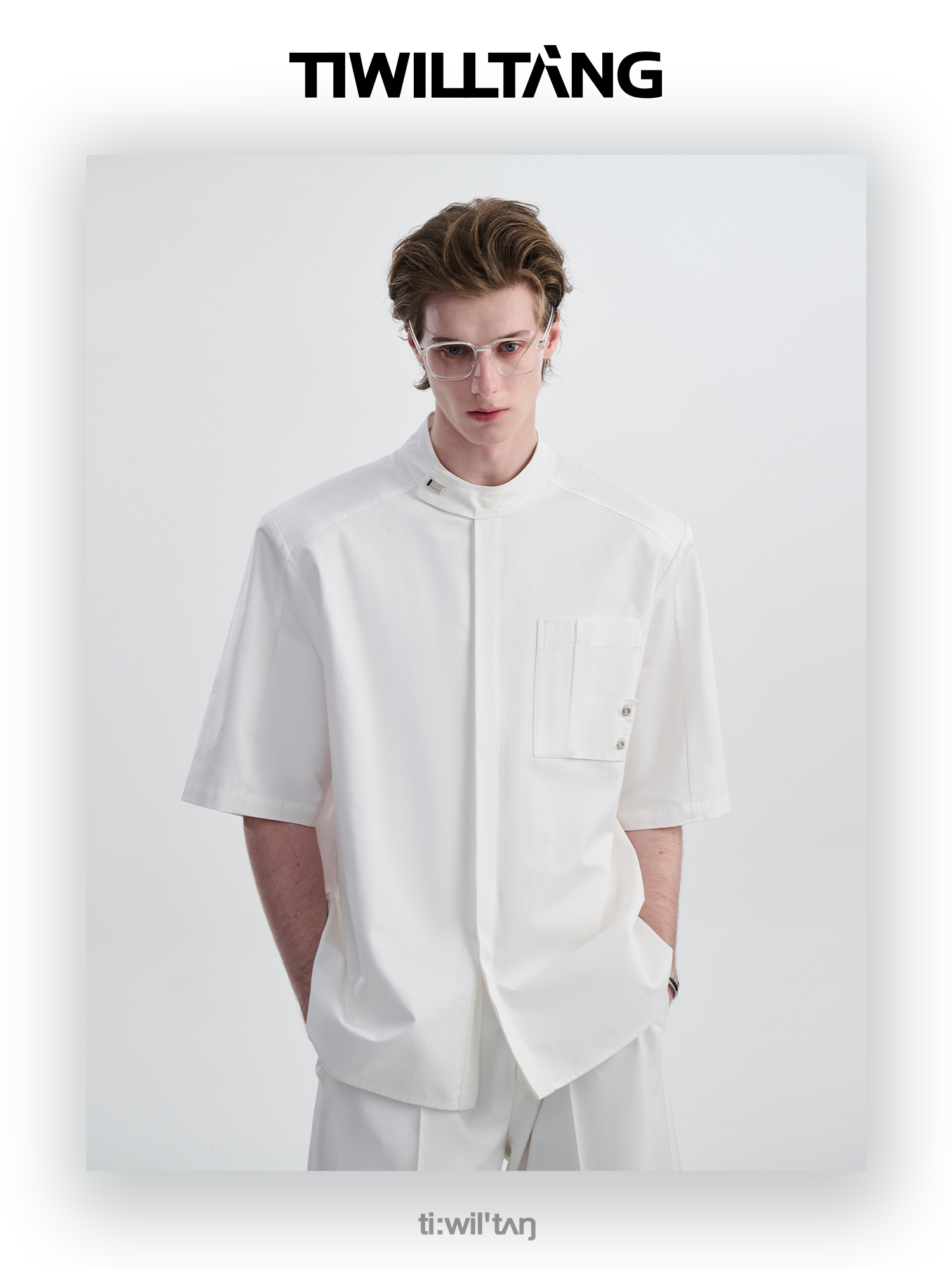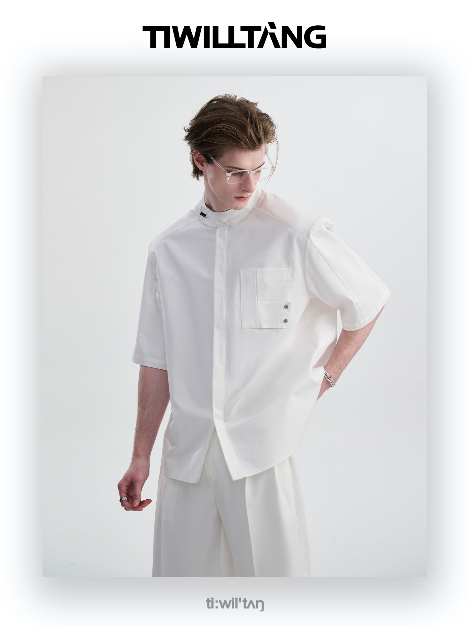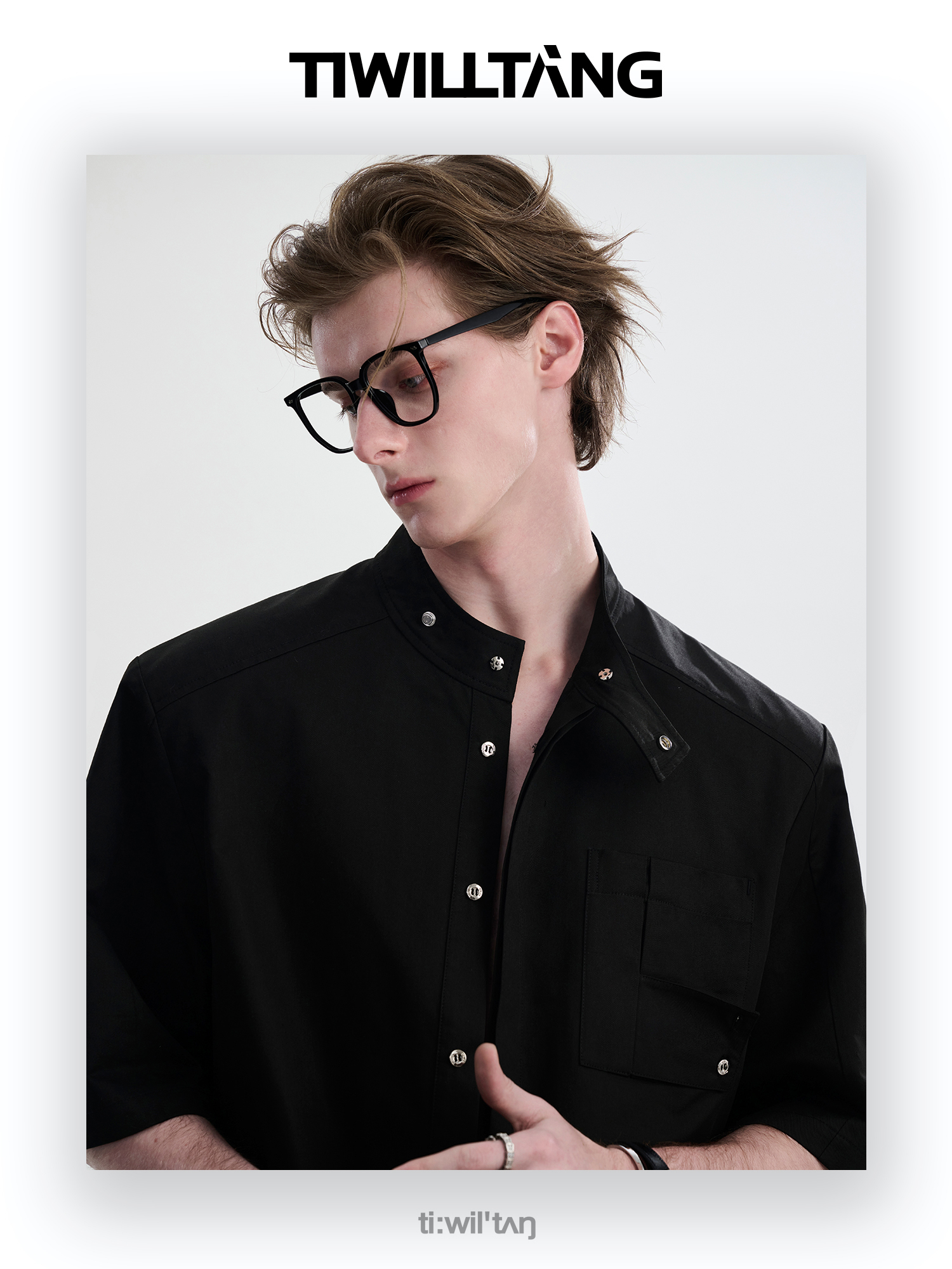 TIWILLTANG启世录“圣夜御拓”新中式克制品味扣袢短袖设计师衬衫