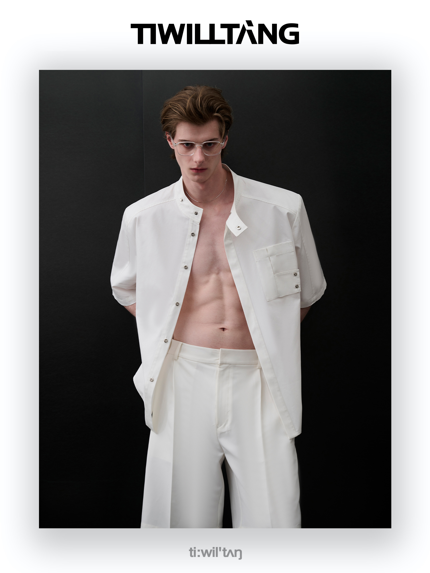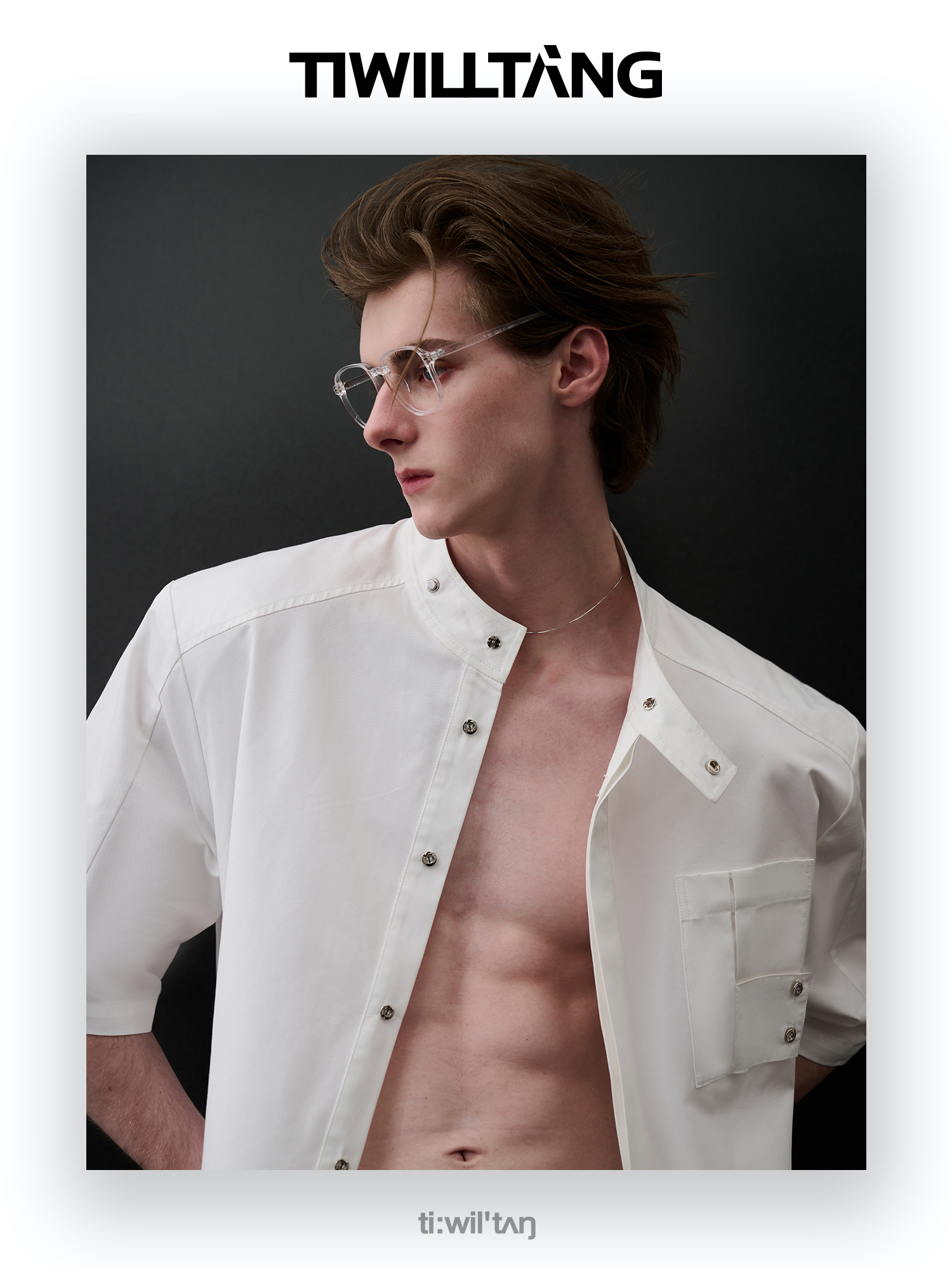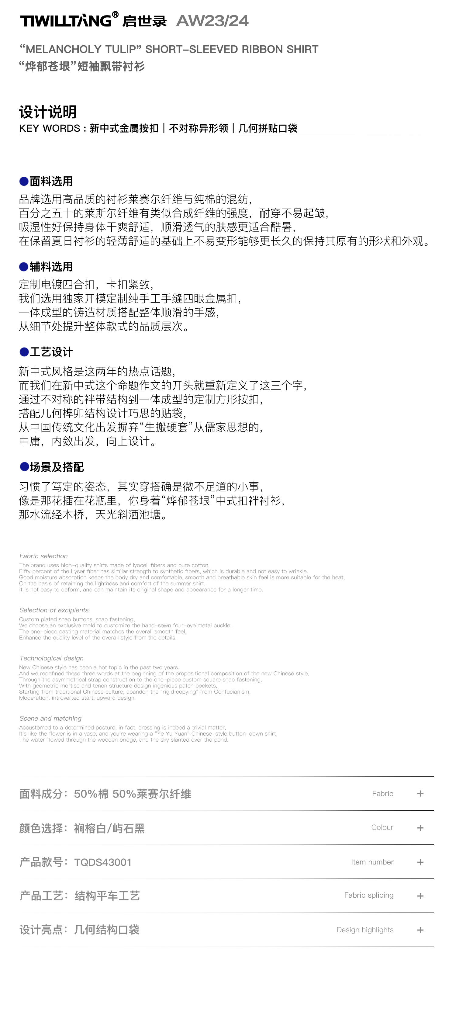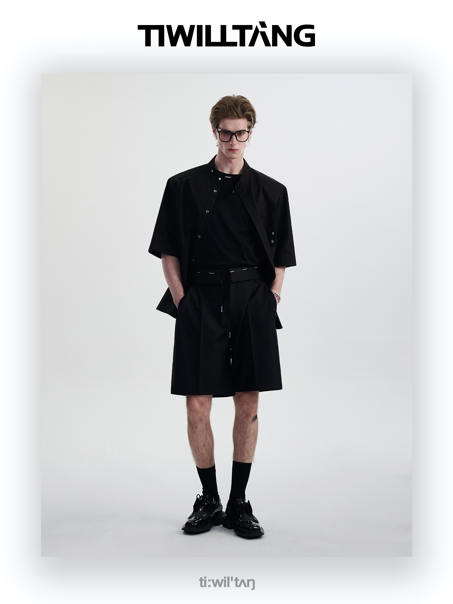 TIWILLTANG启世录“圣夜御拓”新中式克制品味扣袢短袖设计师衬衫