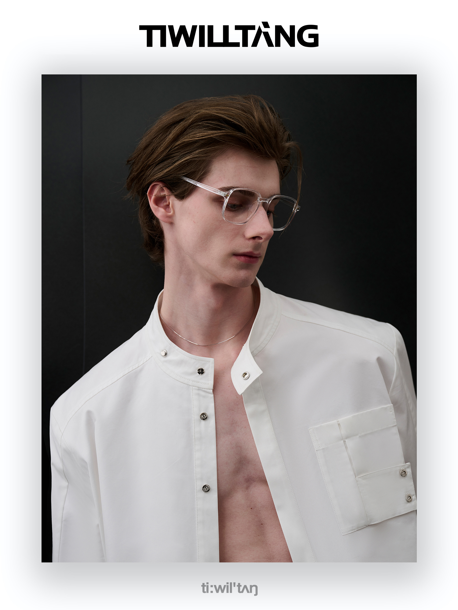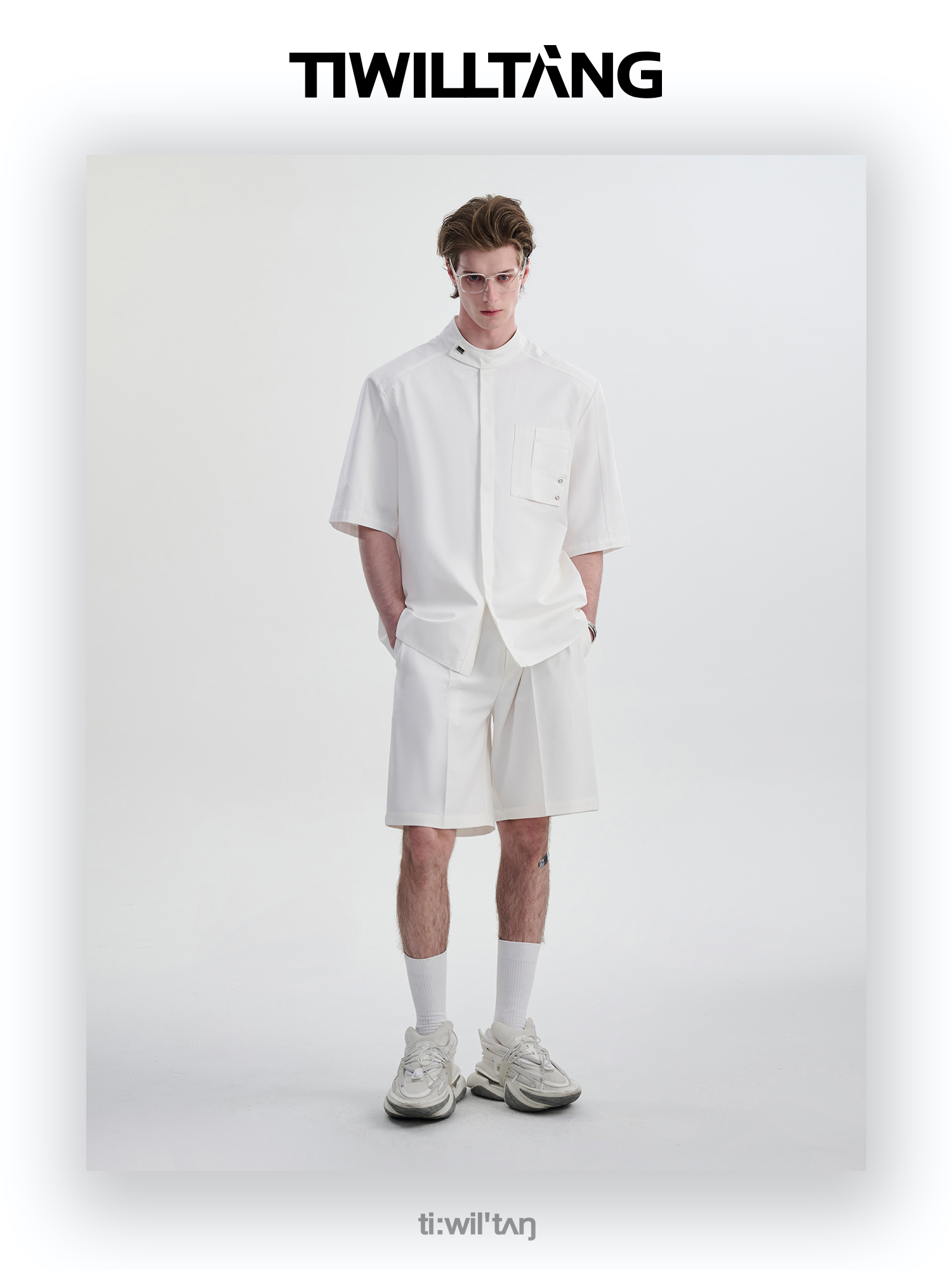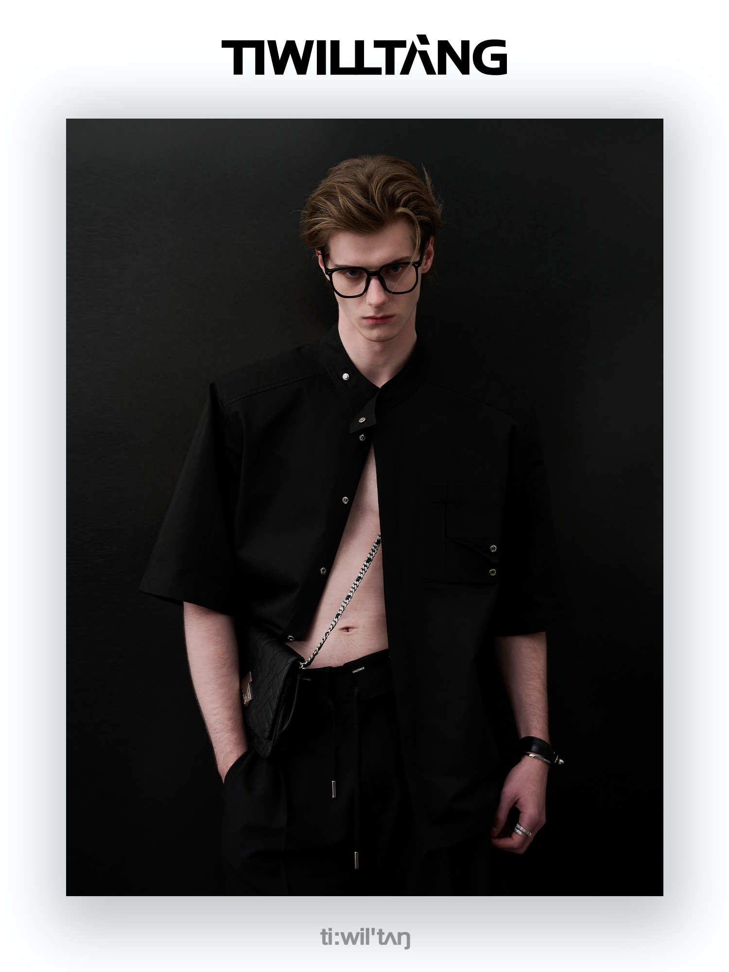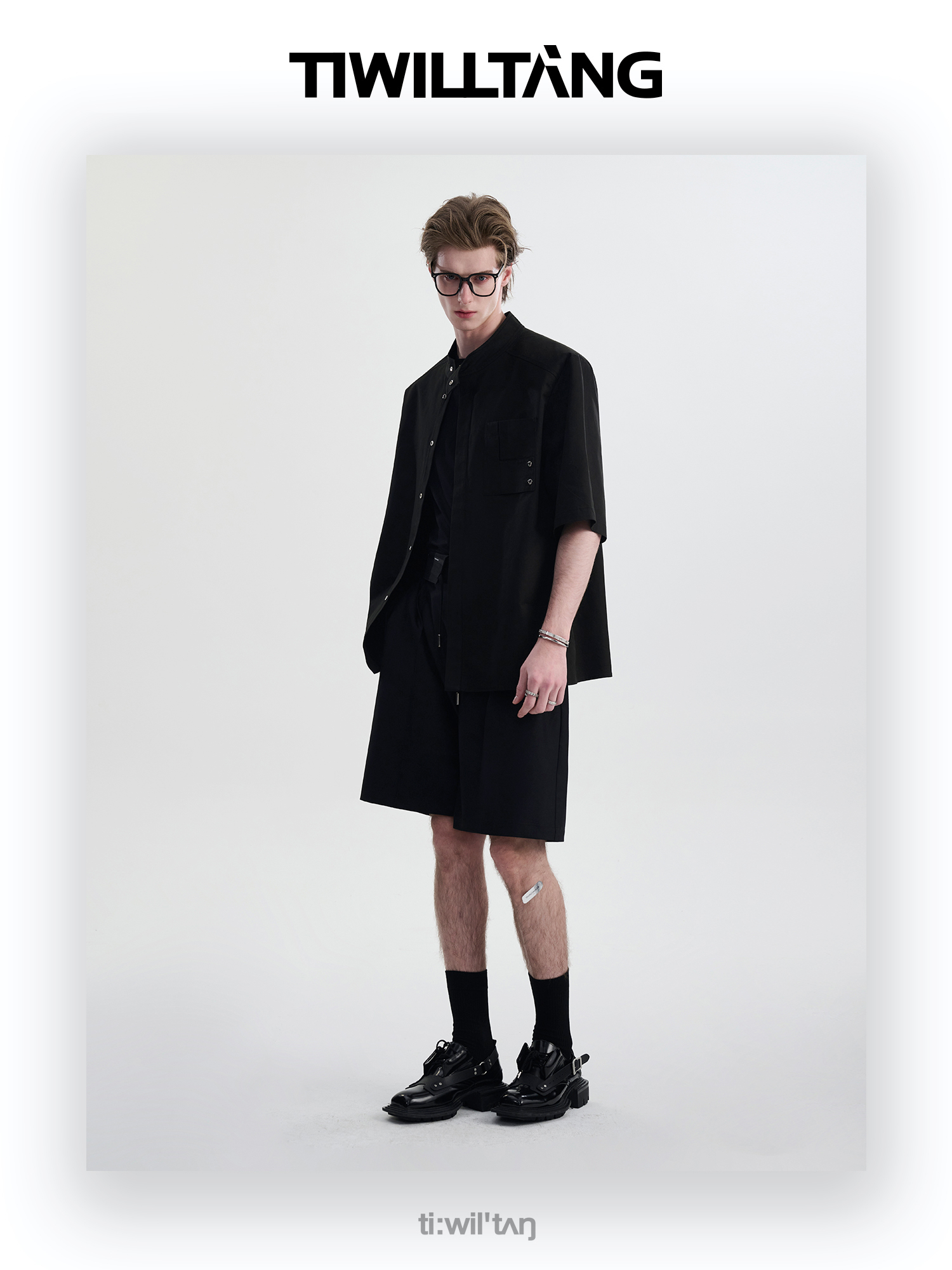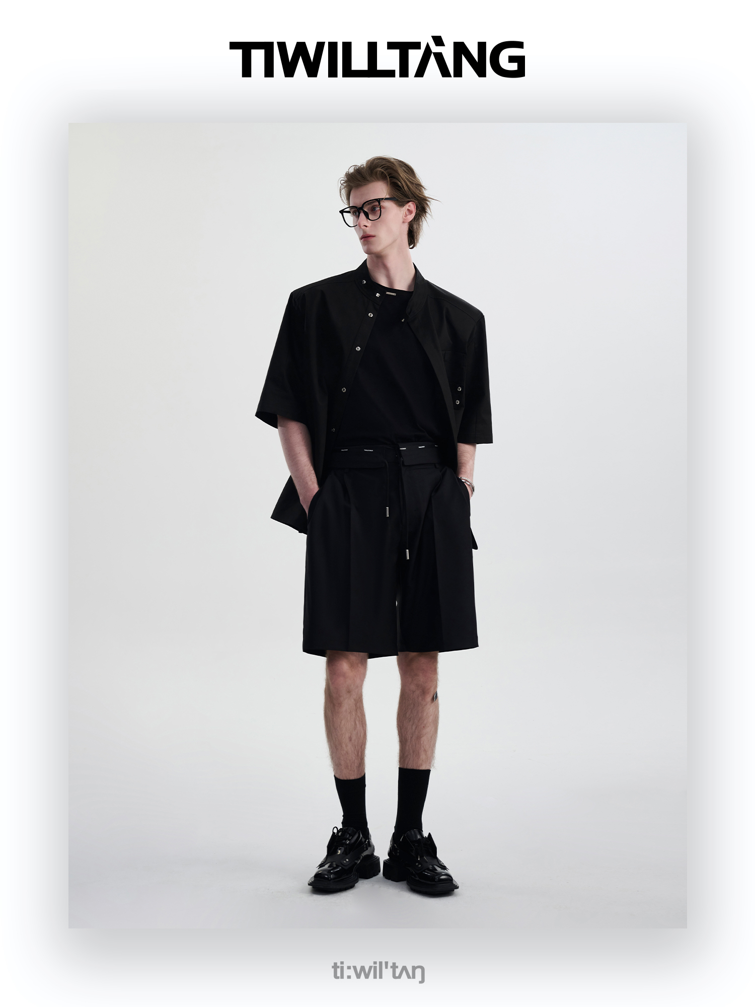 TIWILLTANG启世录“圣夜御拓”新中式克制品味扣袢短袖设计师衬衫
