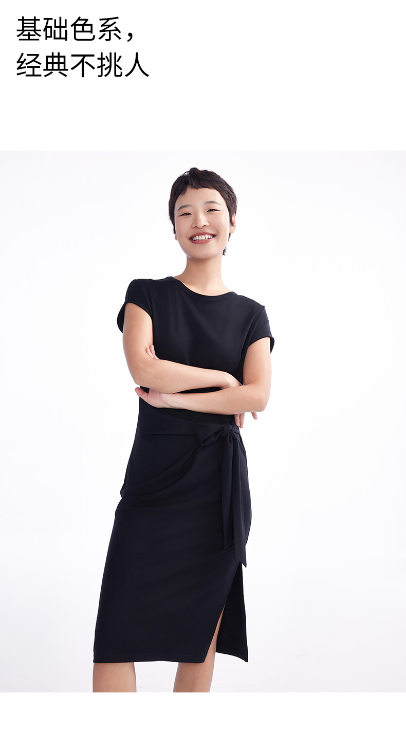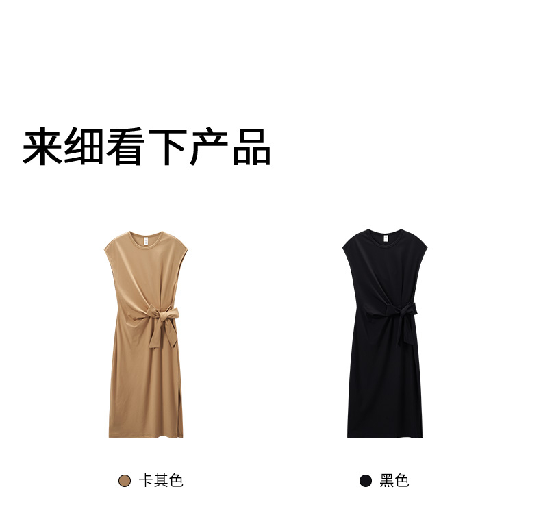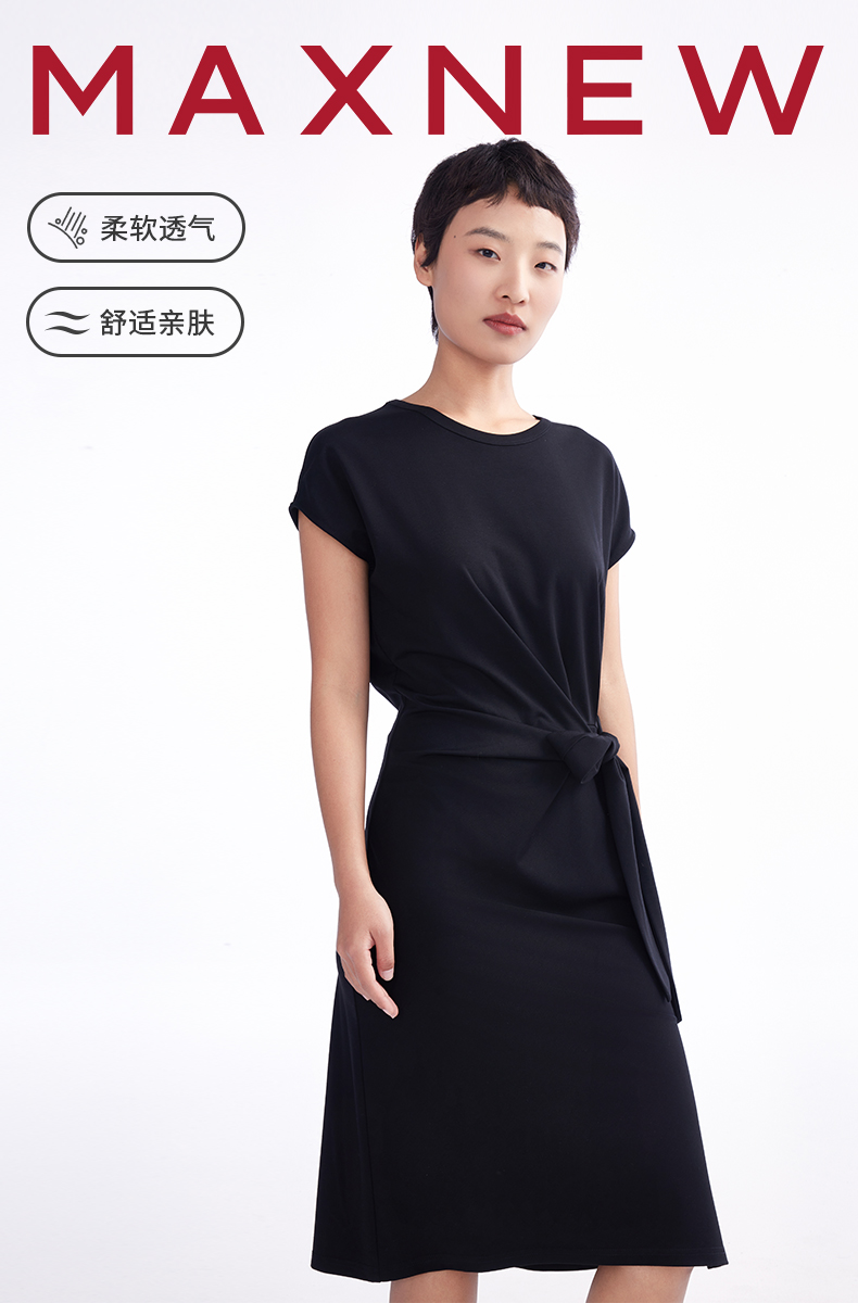 【裙装】女装高密罗马布舒适亲肤收腰绑带连衣裙 1N2225301