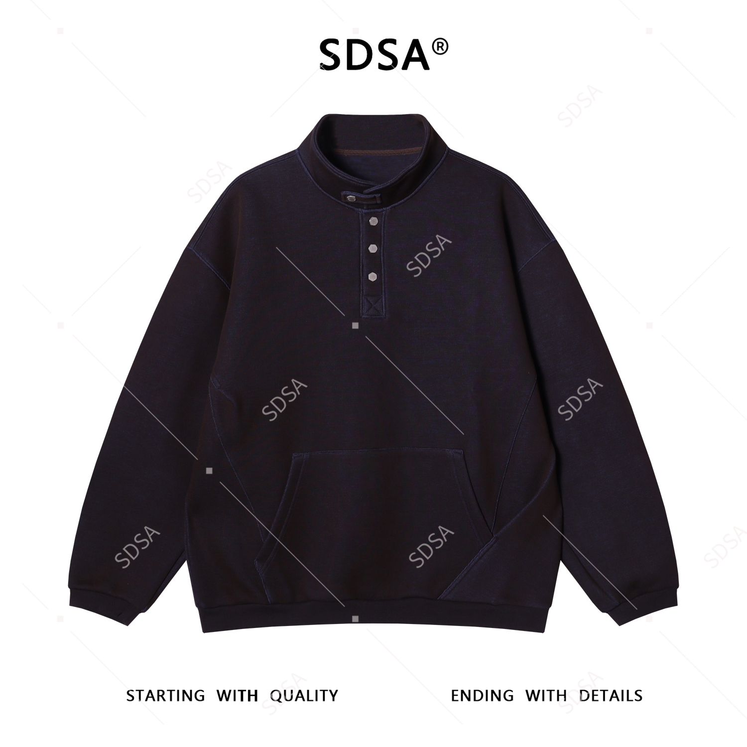 32082SDSA男士秋冬新款痞帅男装潮牌半按扣设计立领卫衣套头时尚上衣