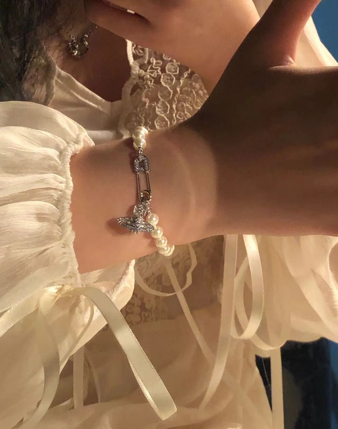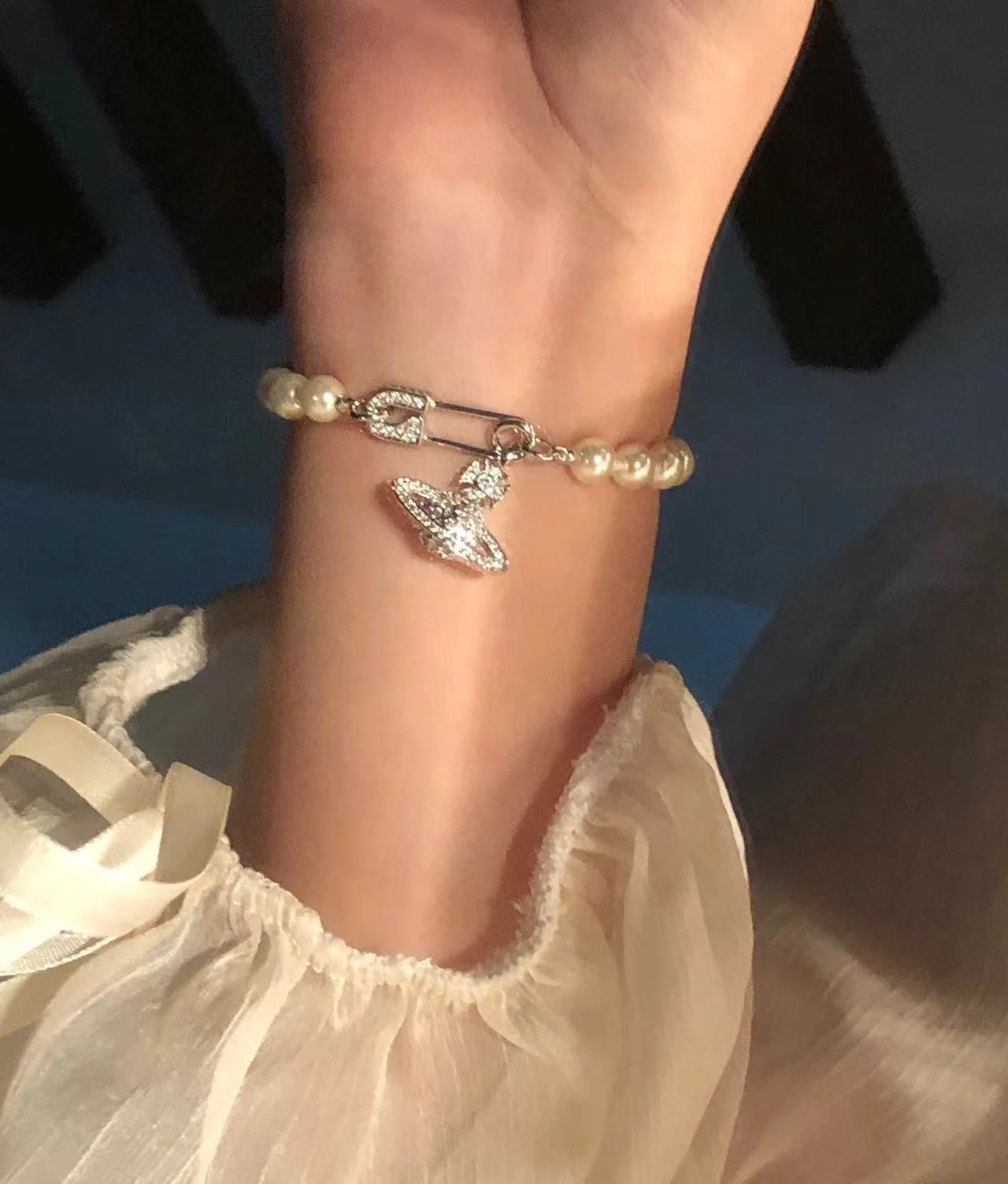 vivienne westwood西太后土星别针手链!英国时装设计师,时装的朋克之母!时尚潮流风格,品质强大,超美的设计!简约大气刺绣logo‼精致💎这个款不用担心不好看,因为经典的洋气的新设计!赠礼的完美之选,充分展现个性风范。品质非常整个首饰给人大牌气场的同时又非常精致,让整个人的层次提升好几个level💟绝对值得入手‼️🌟
