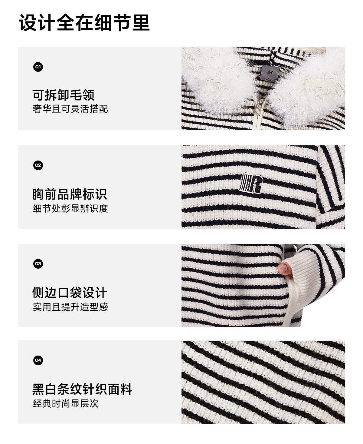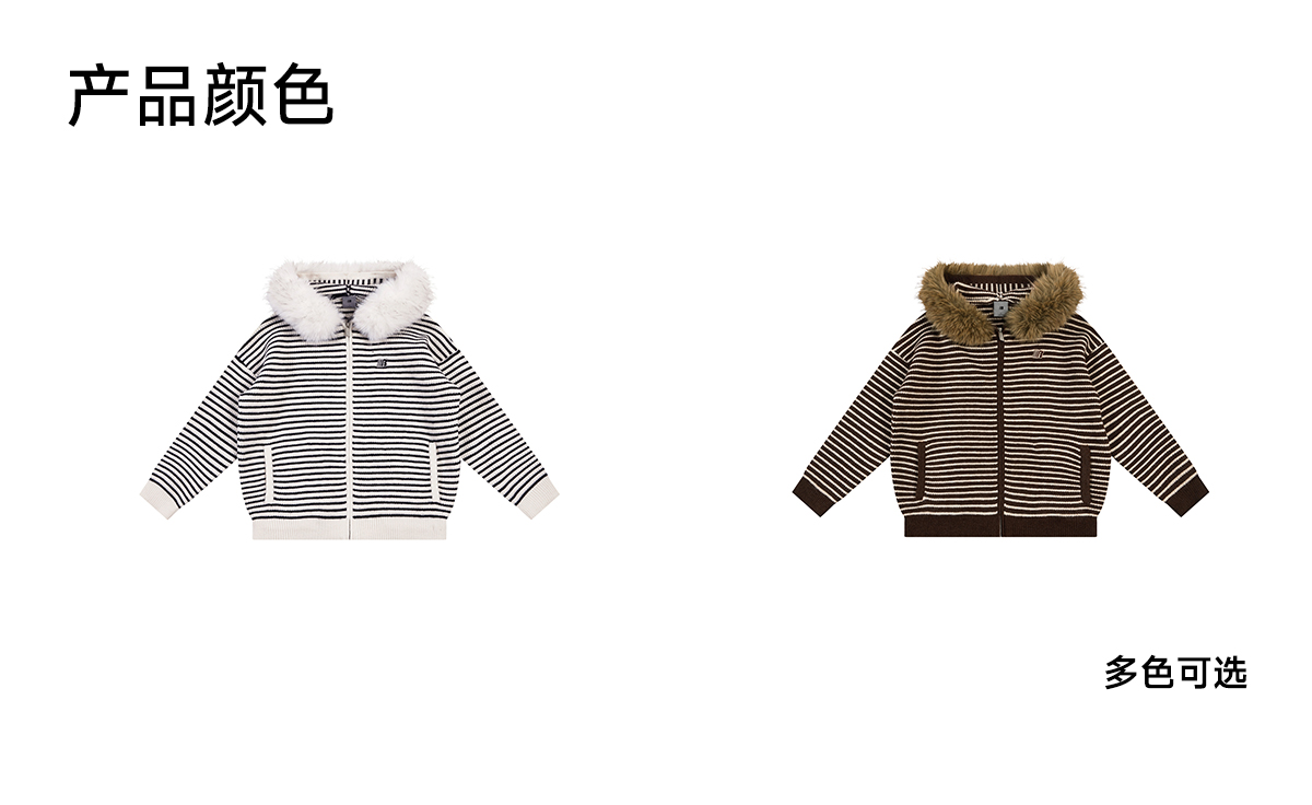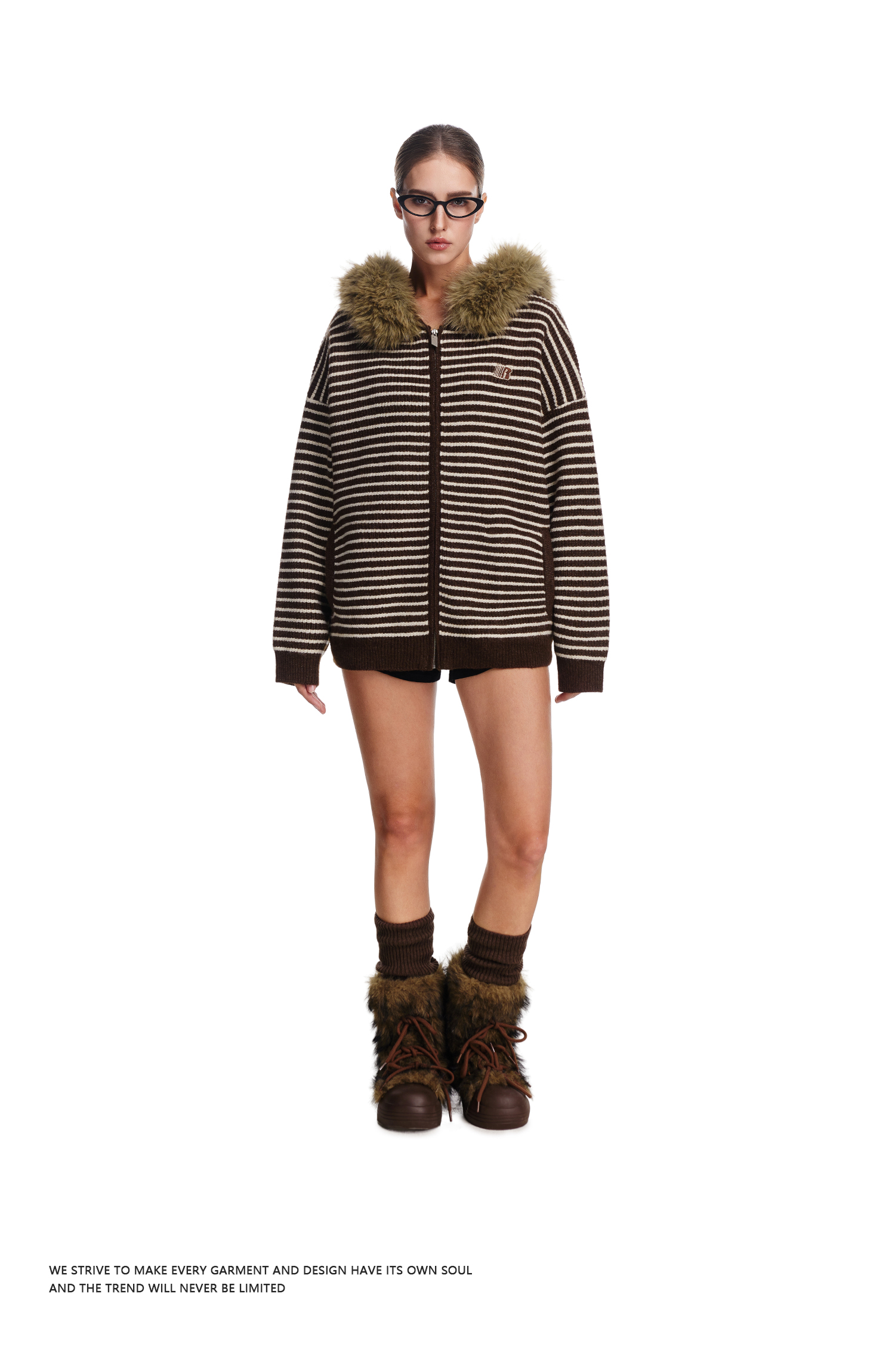 FDR官方店 条纹毛衣可拆卸毛领针织开衫秋季加厚情侣毛衣外套男女