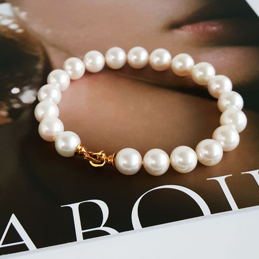 名称 | AU750黄金镶天然近完美AKOYA约8.5-9MM海水珍珠手链 |