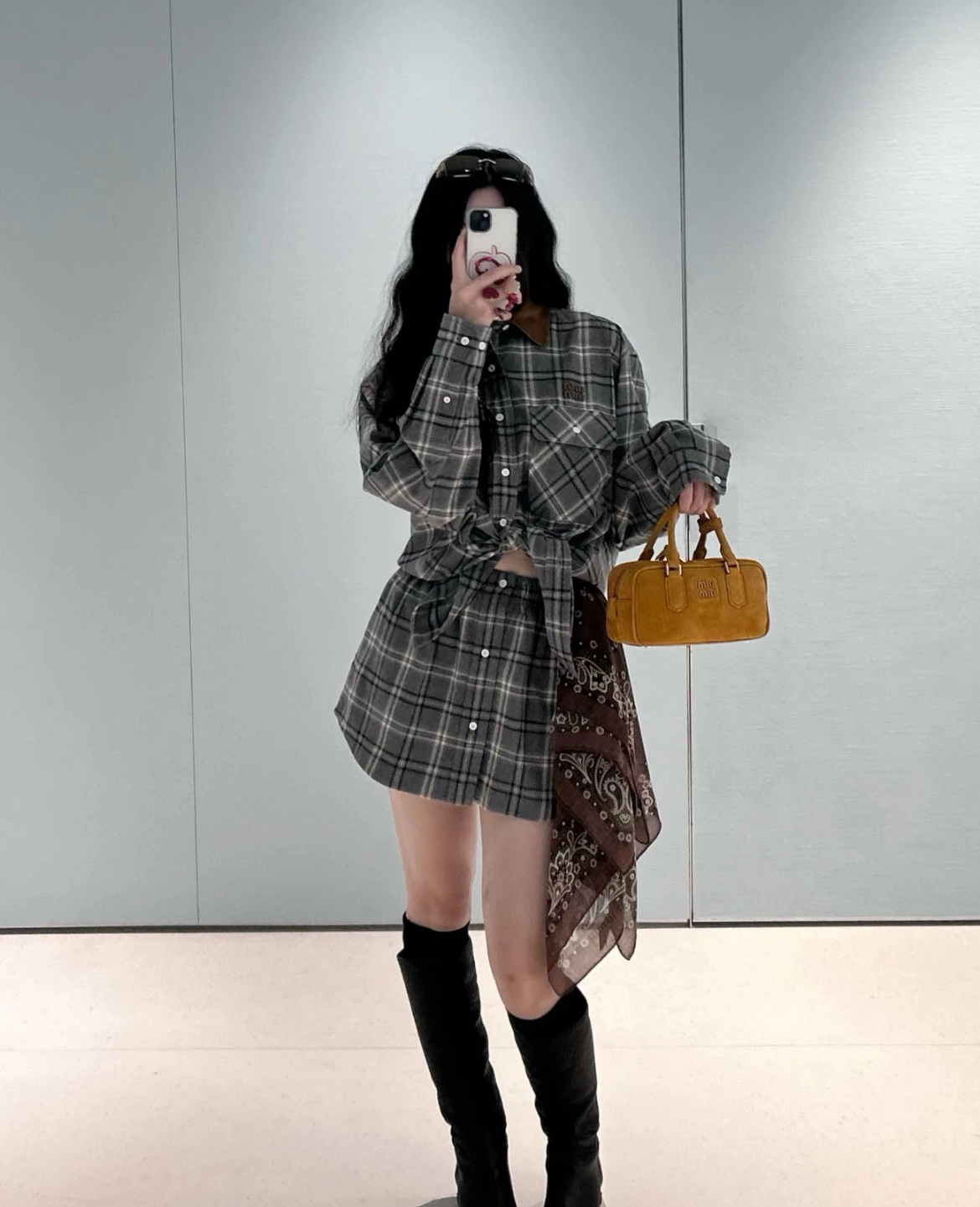 新款格纹衬衫, 这款法兰绒衬衫以宽松版型和复古灵感格纹图案重新诠释90年代美学,饰有灯芯绒领和撞色皮革徽标,这件衬衫真的爱惨了,配色超洋气,一年四季都能穿上的单品,优选高品质纯棉面料 ✨ 不挑人的宽松版型,能与同季下装搭配营造时尚造型,驾驭各种场合✨不管是单穿还是叠穿都很出片,氛围感直接拉满~轻松凹造型 显瘦显高💫强烈推荐,氛围感拉满