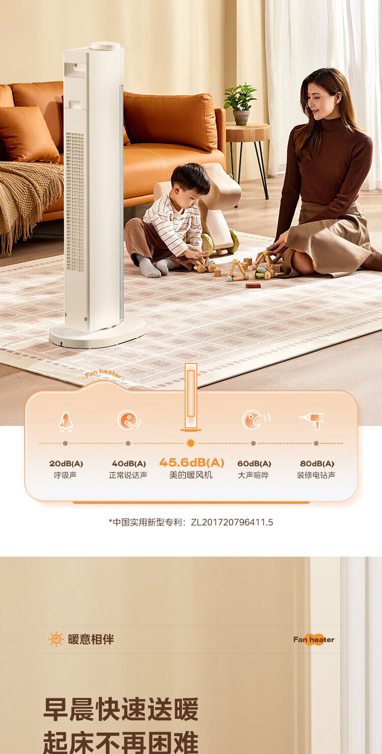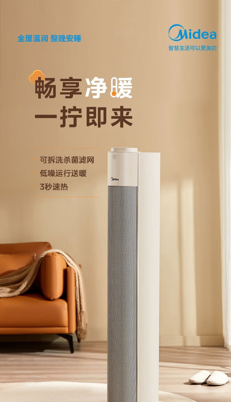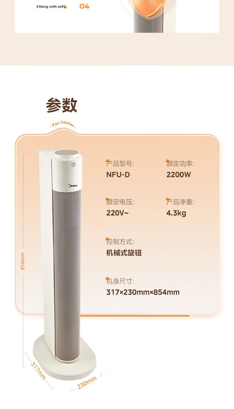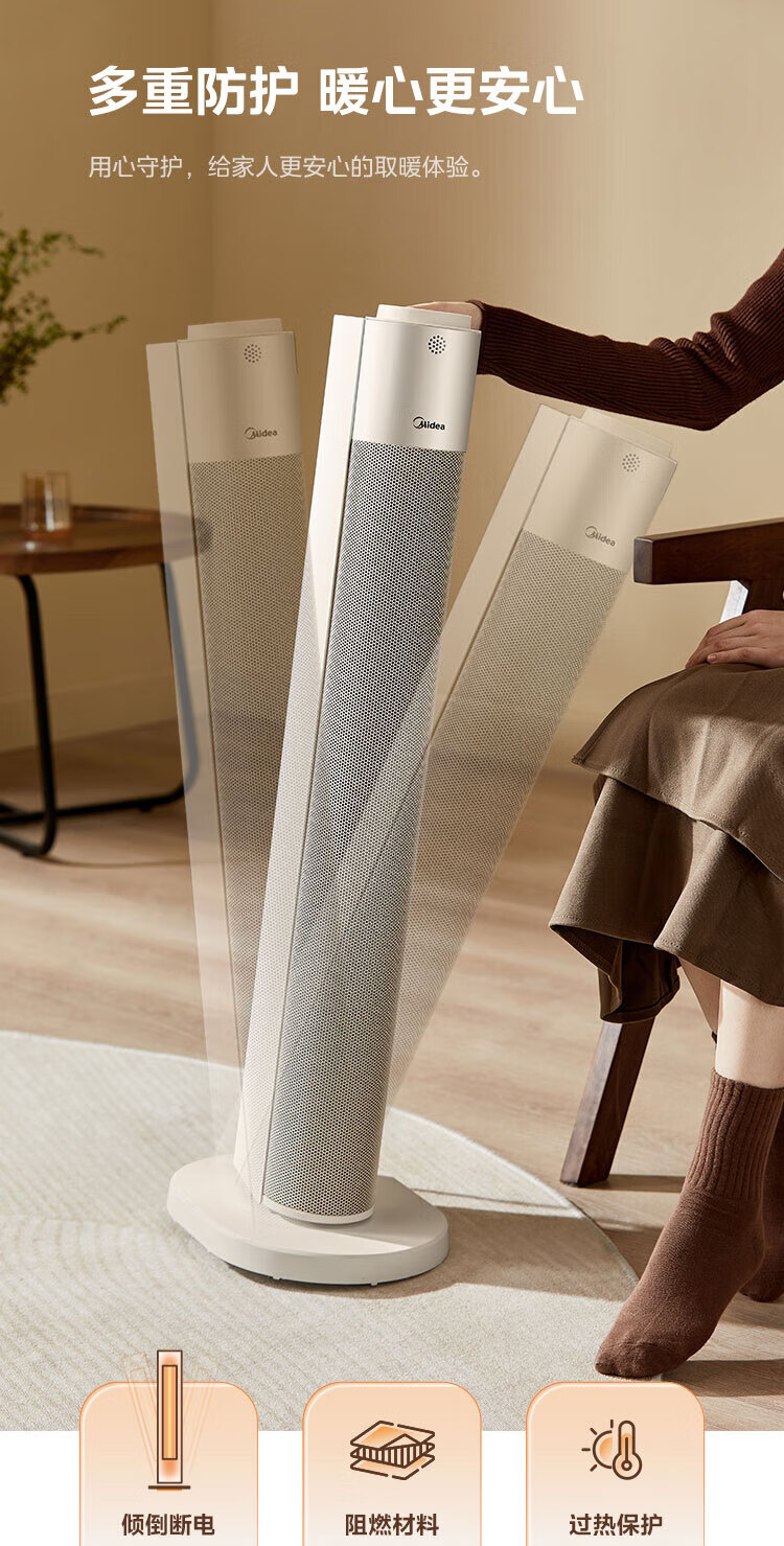 美的(Midea)取暖器 电暖气 用大面积 立式 轻音 节能 倾倒断电 小巧便捷 可拆洗取暖器家用 NFU-D