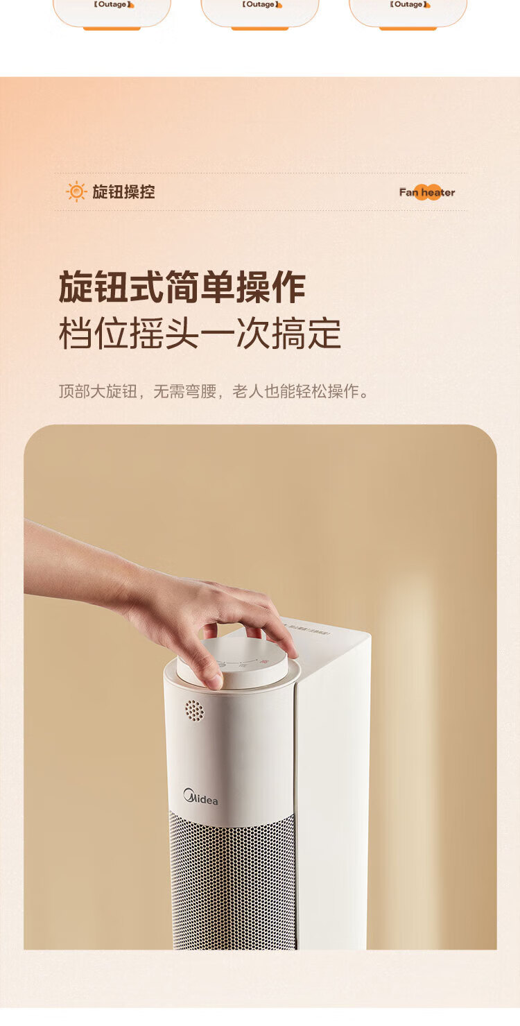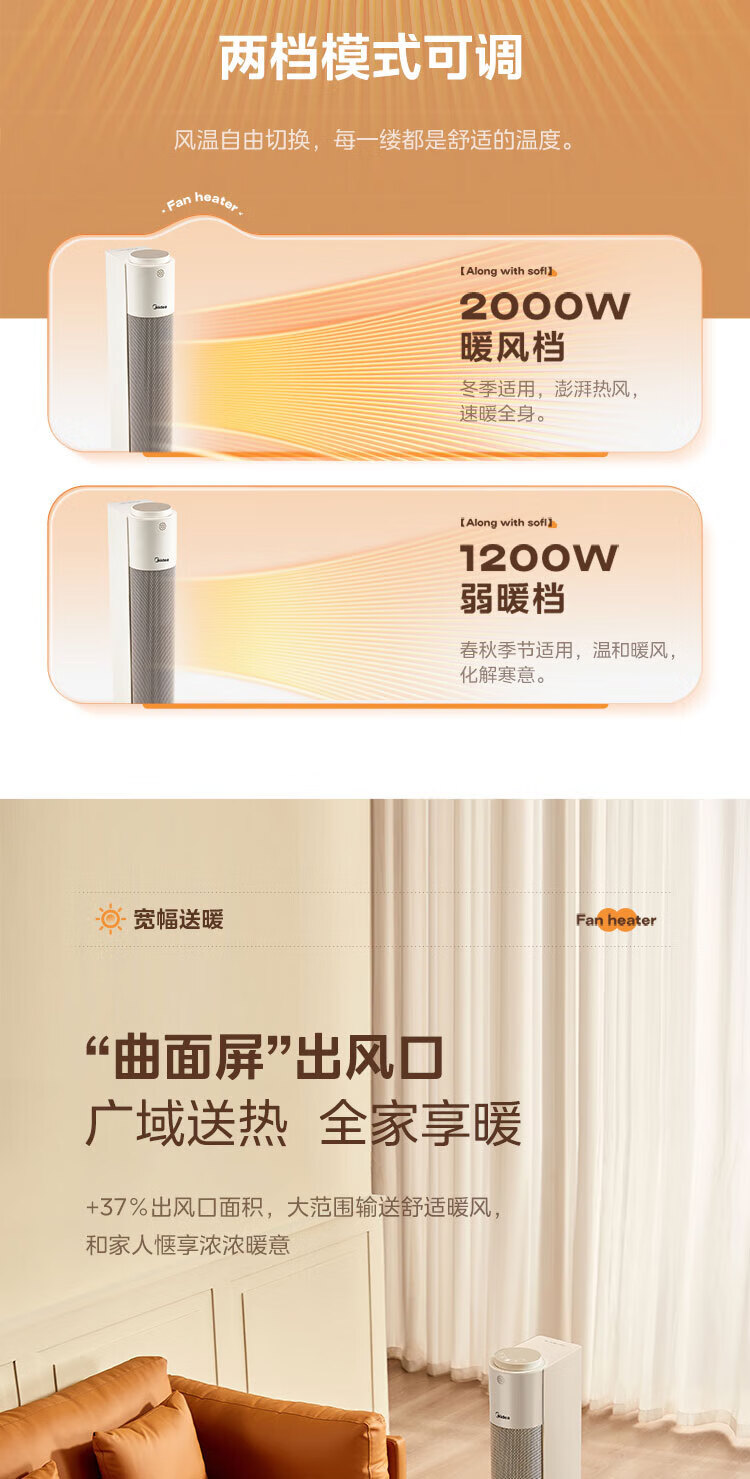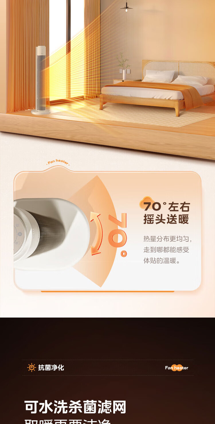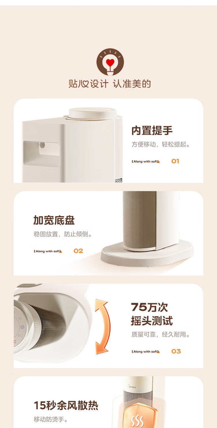 美的(Midea)取暖器 电暖气 用大面积 立式 轻音 节能 倾倒断电 小巧便捷 可拆洗取暖器家用 NFU-D