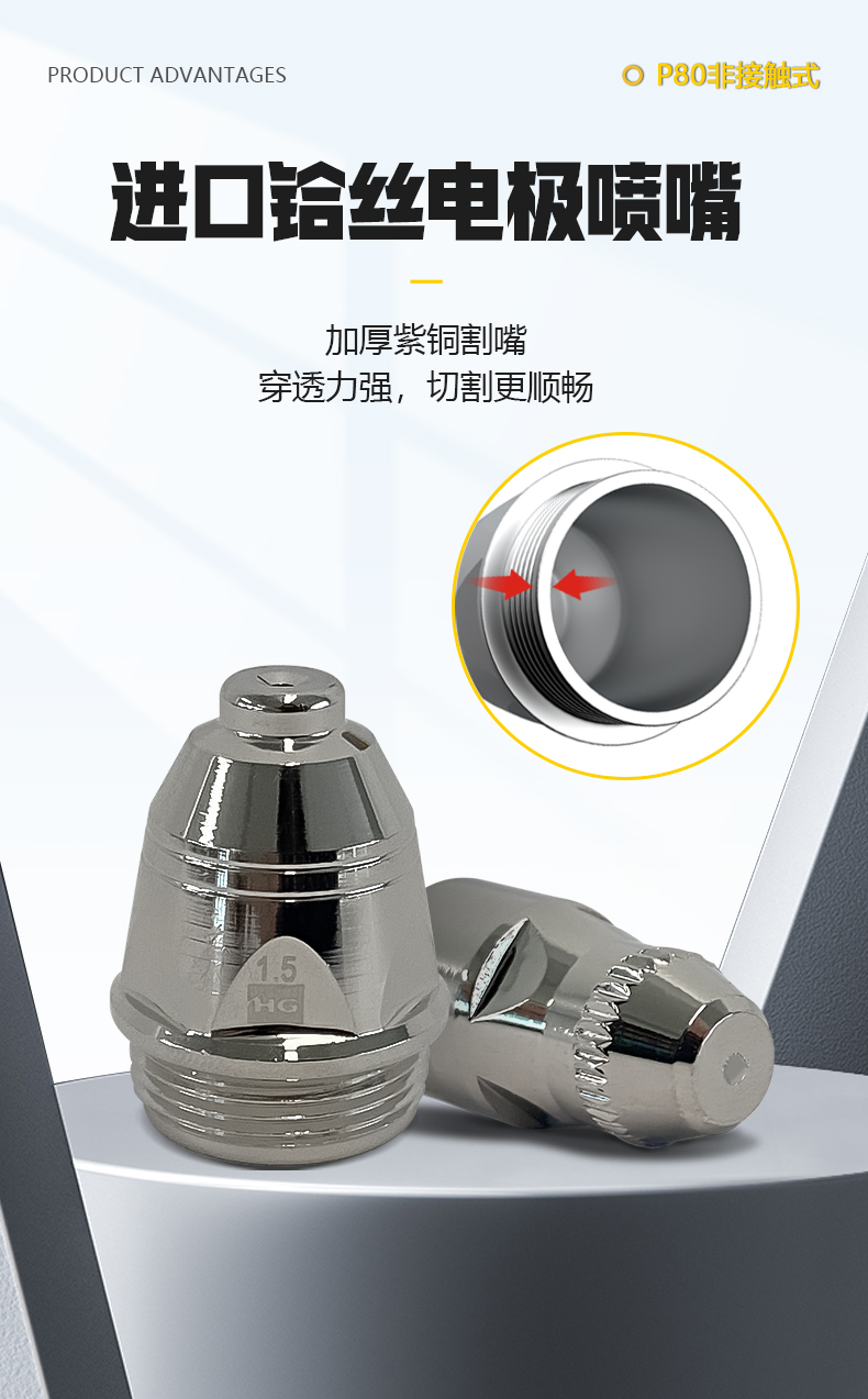 上海沪工等离子切割枪P80【非接触式优选款】P80铪丝电极【10只装】