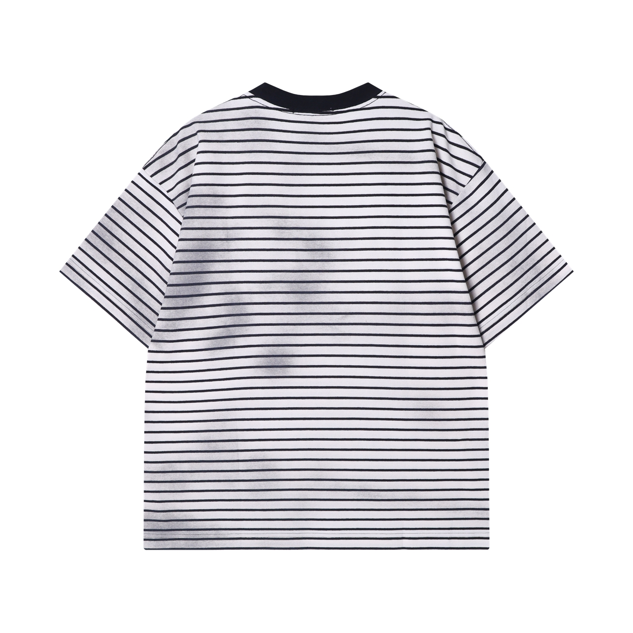 2025夏季新款个性条纹字母刺绣贴标圆领短袖T恤男士休闲百搭宽松