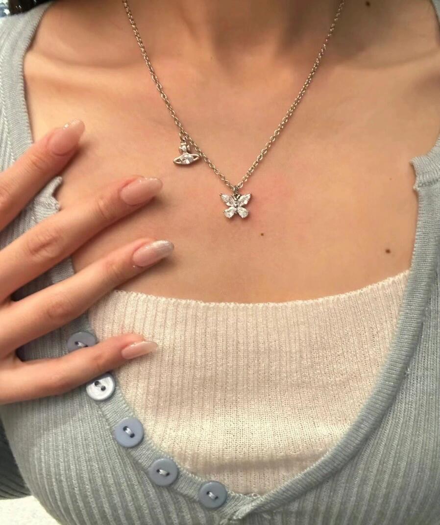 土星蝴蝶项链:链条总长49cm(两环可调节)、吊坠约15.09mm