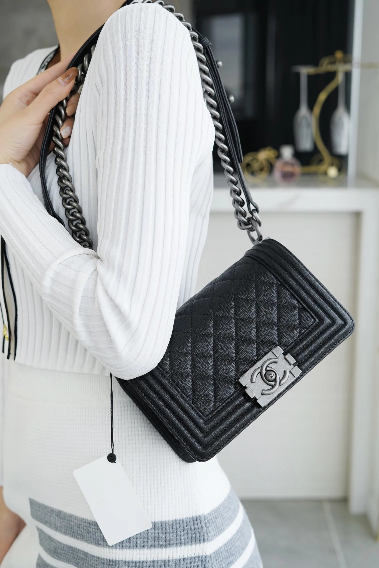 设计灵感源于创始人Gabriell&e Chan&e*背挎的狩猎子弹夹,以嘉柏丽尔·香奈#儿 的一生挚爱“Boy Capel”命名。