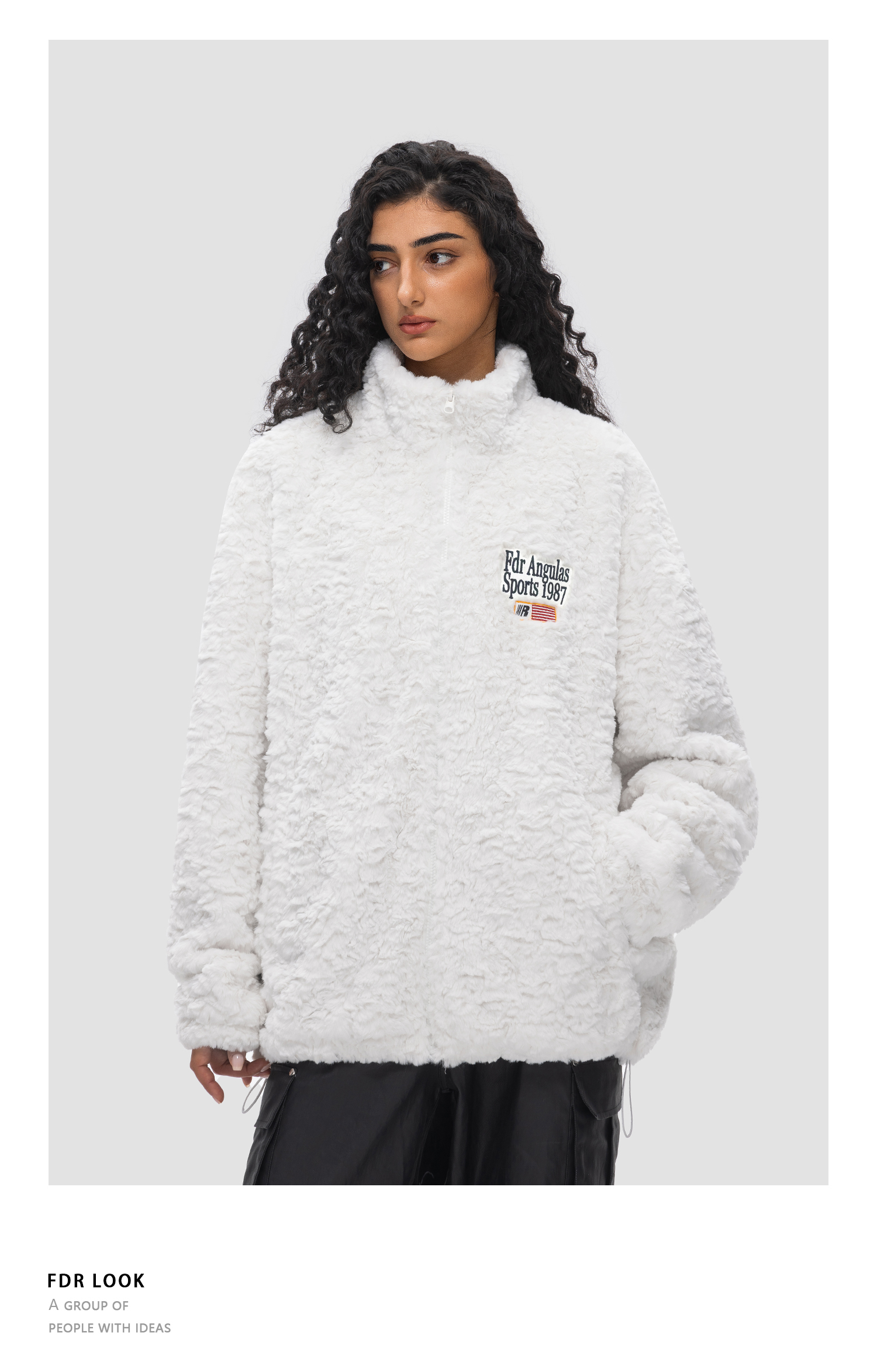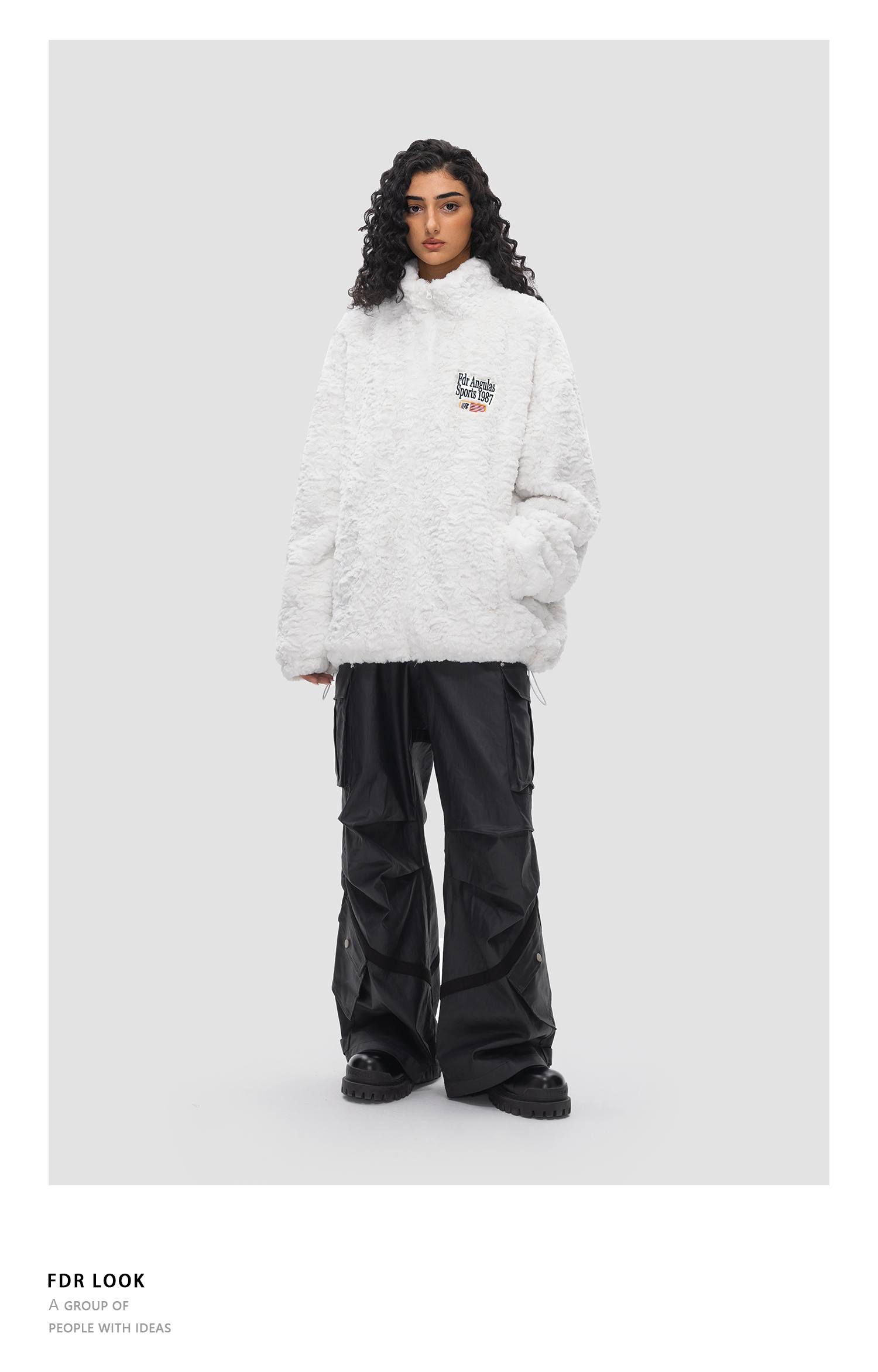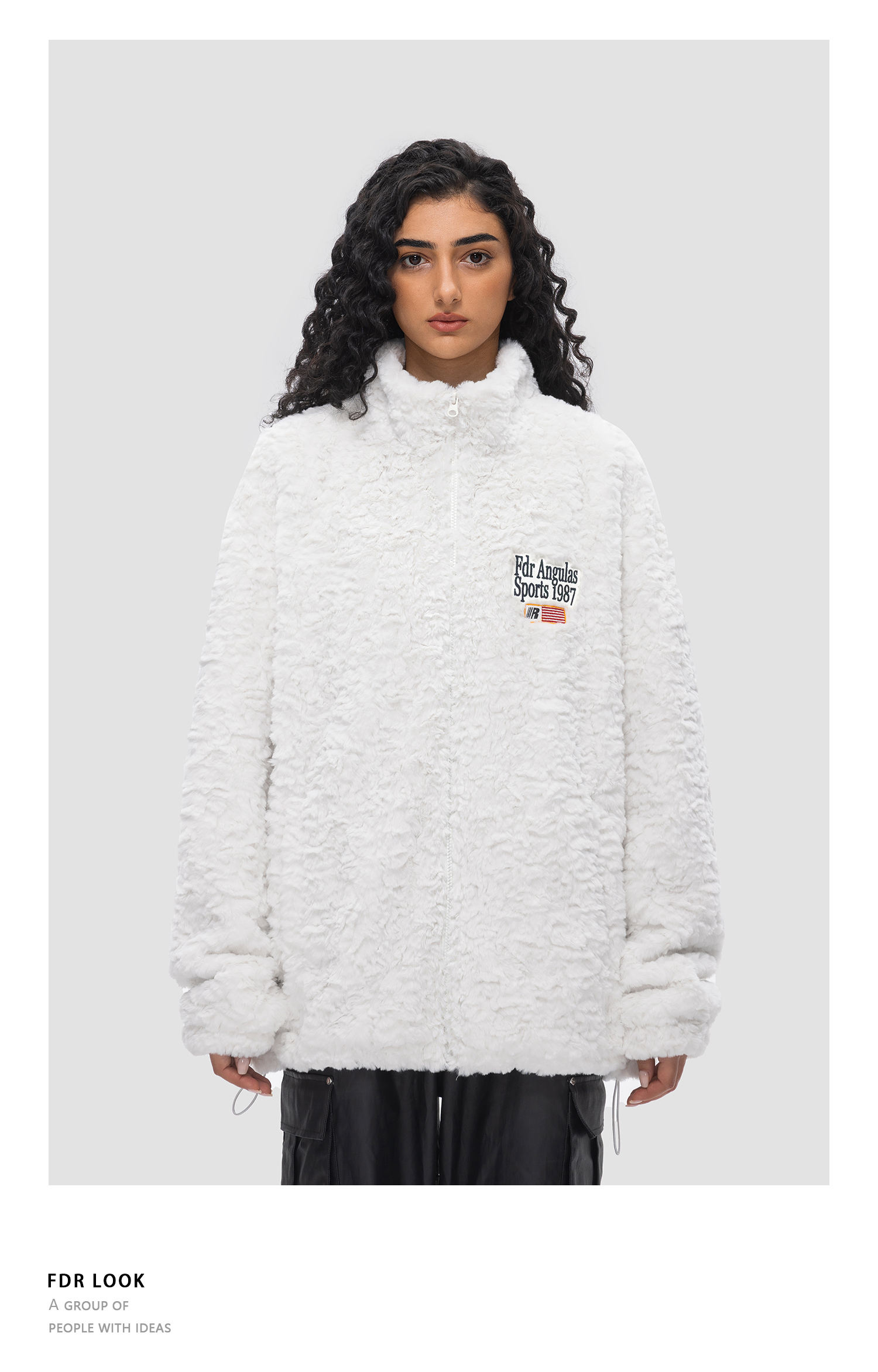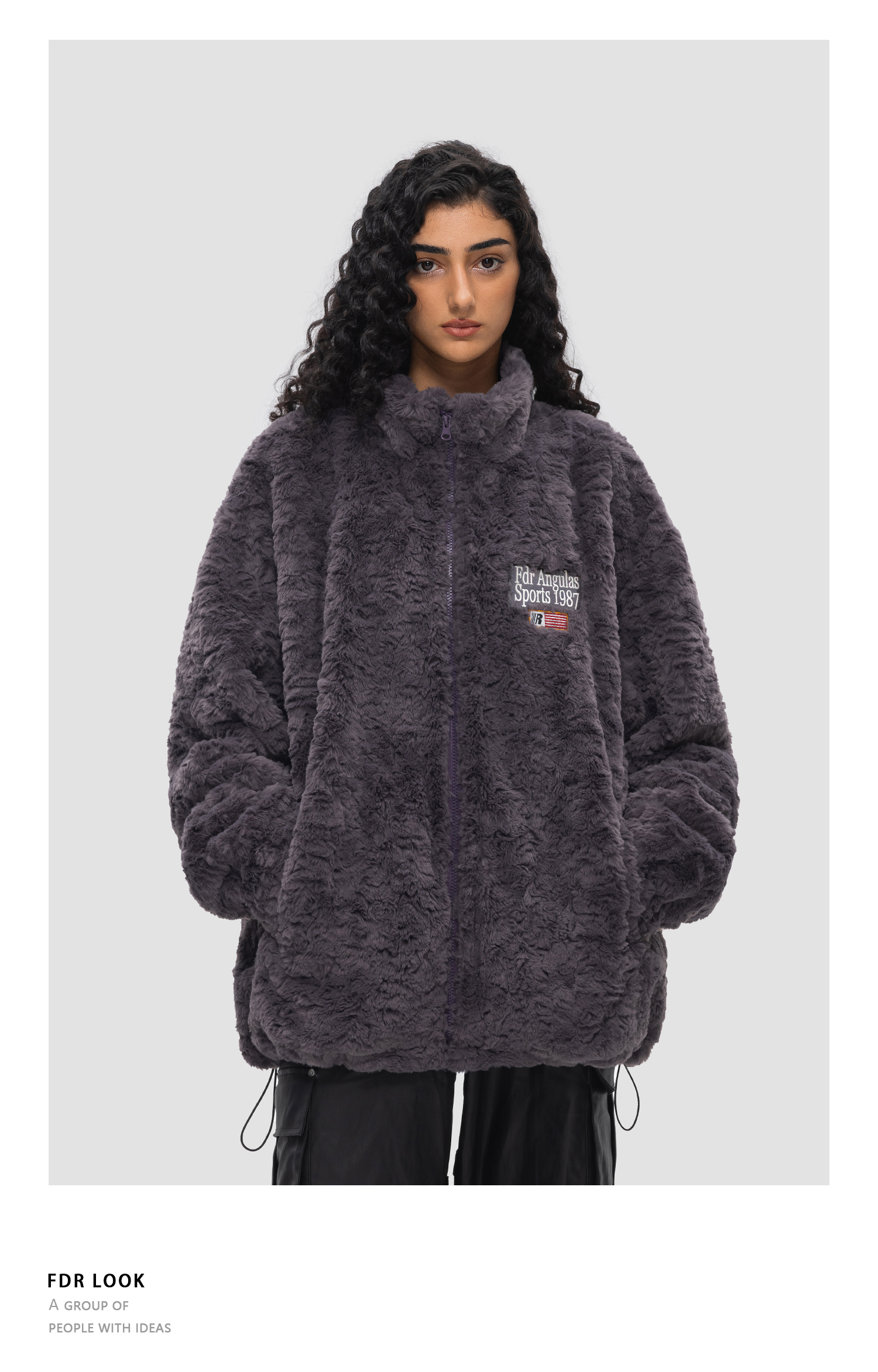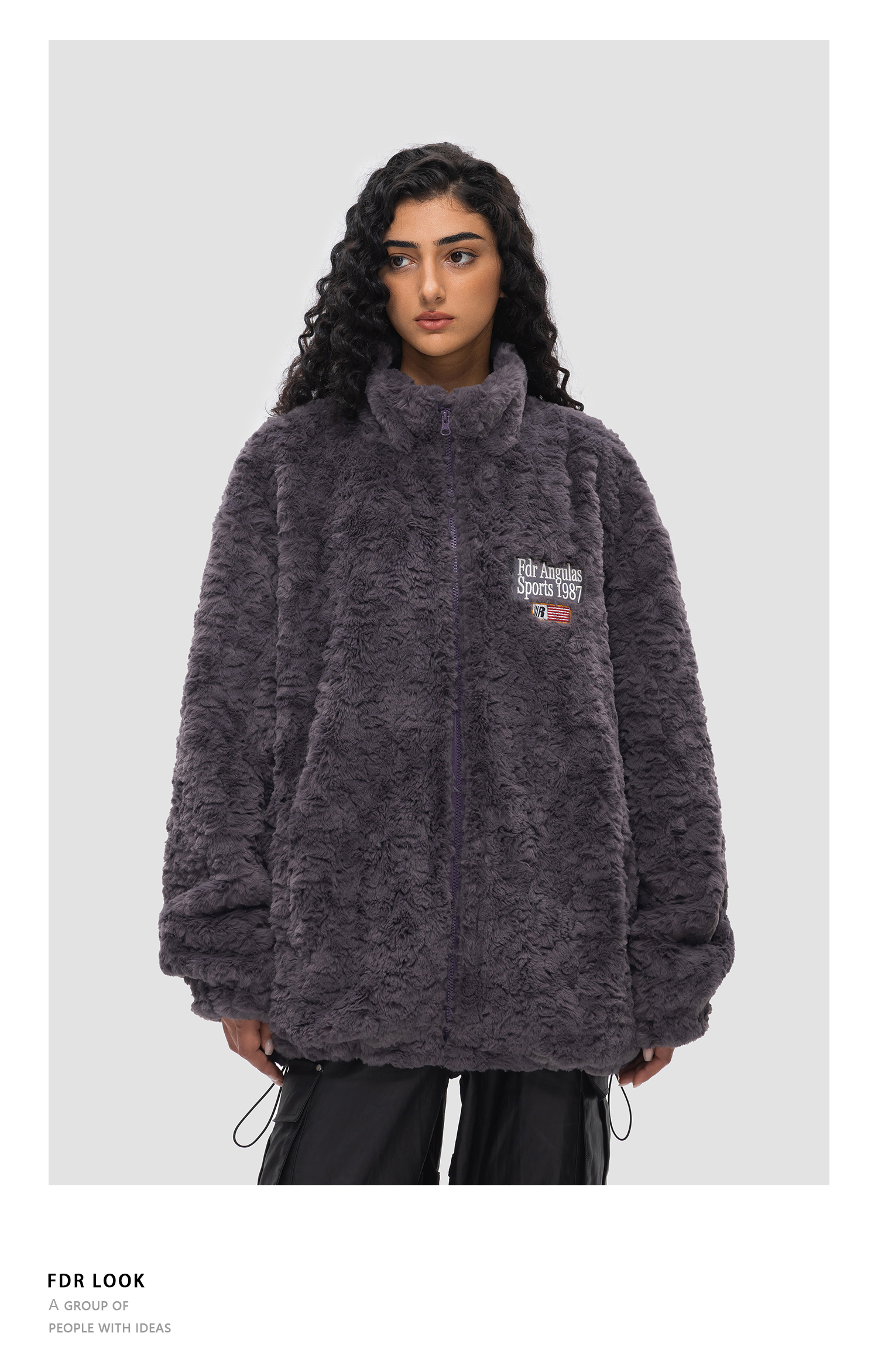 FDR 原创国潮旗帜兔绒夹克外套男女秋冬季加厚情侣装上衣棉衣棉服