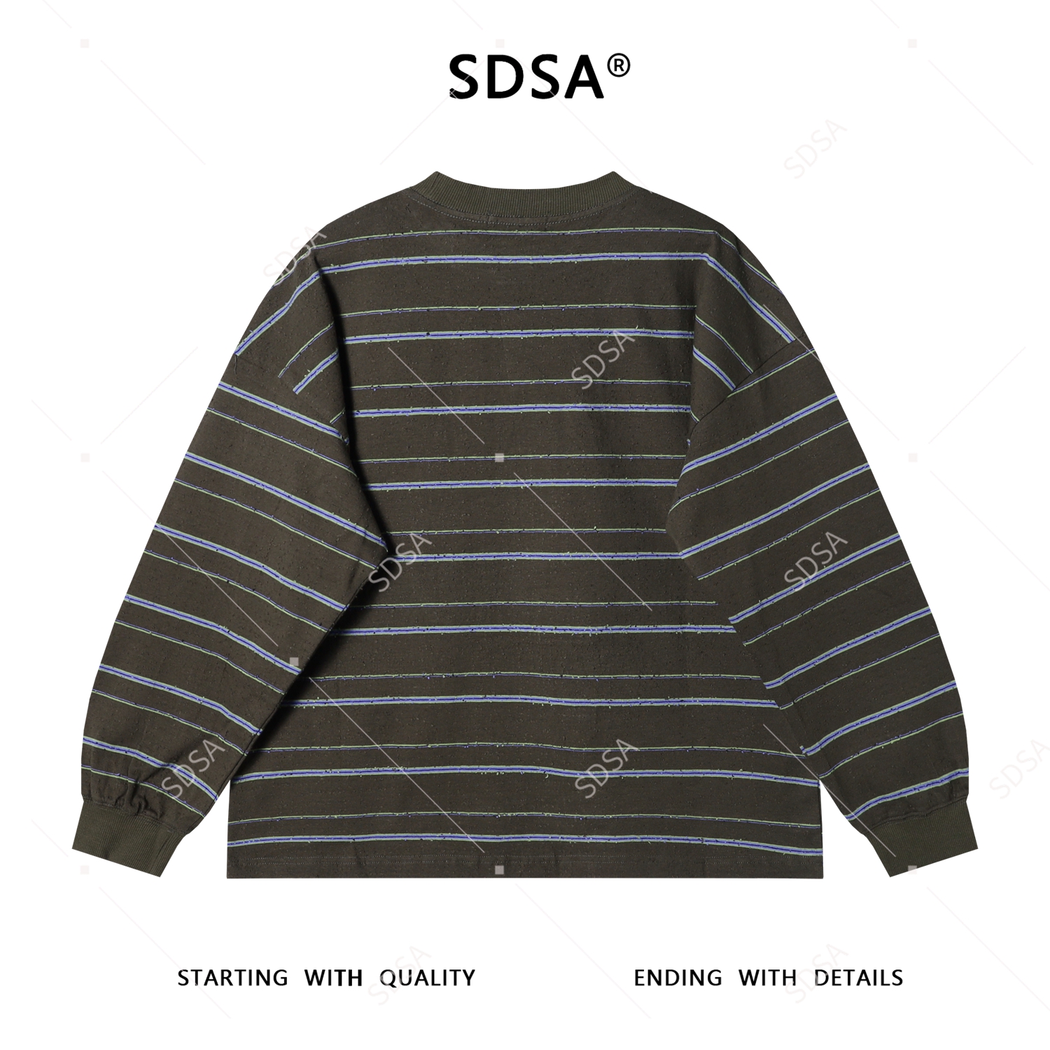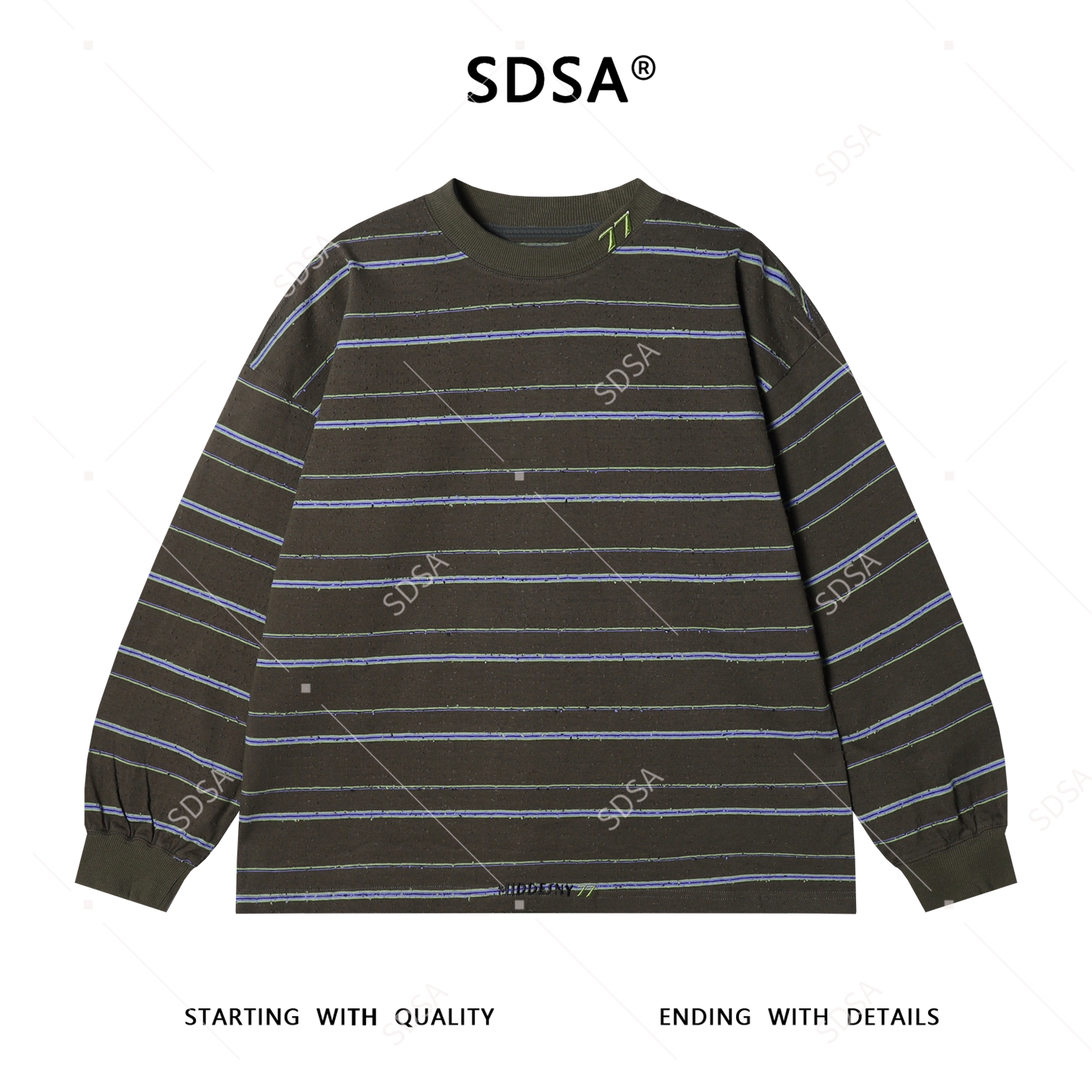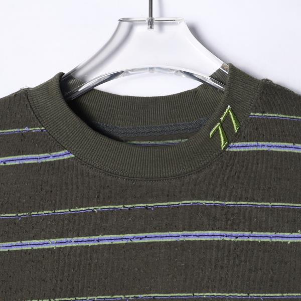 D920SDSA男士秋冬新款痞帅男装潮牌撞色条纹磨毛圆领T恤领口刺绣百搭