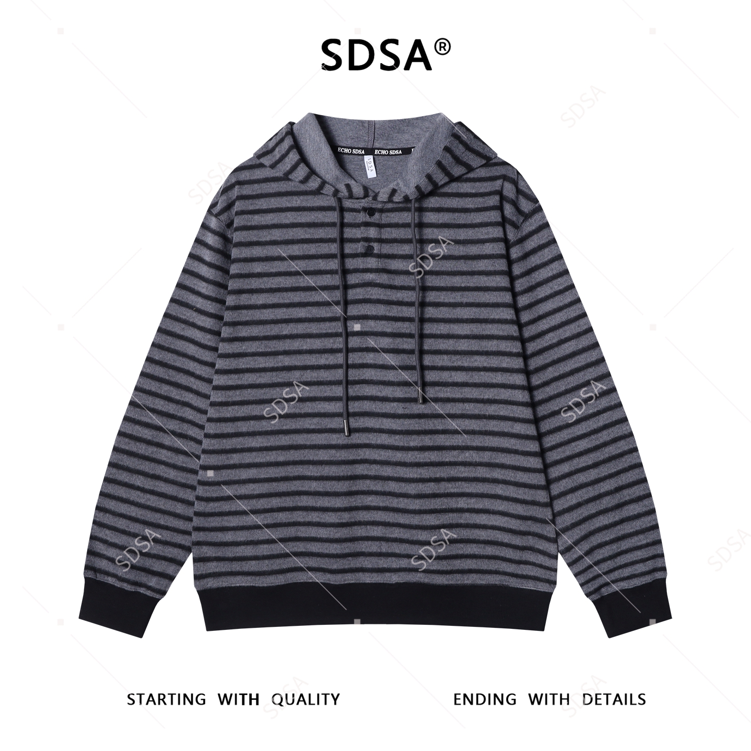 WY1034SDSA男士秋冬新款痞帅男装撞色条纹半纽扣连帽针织卫衣时尚高级感