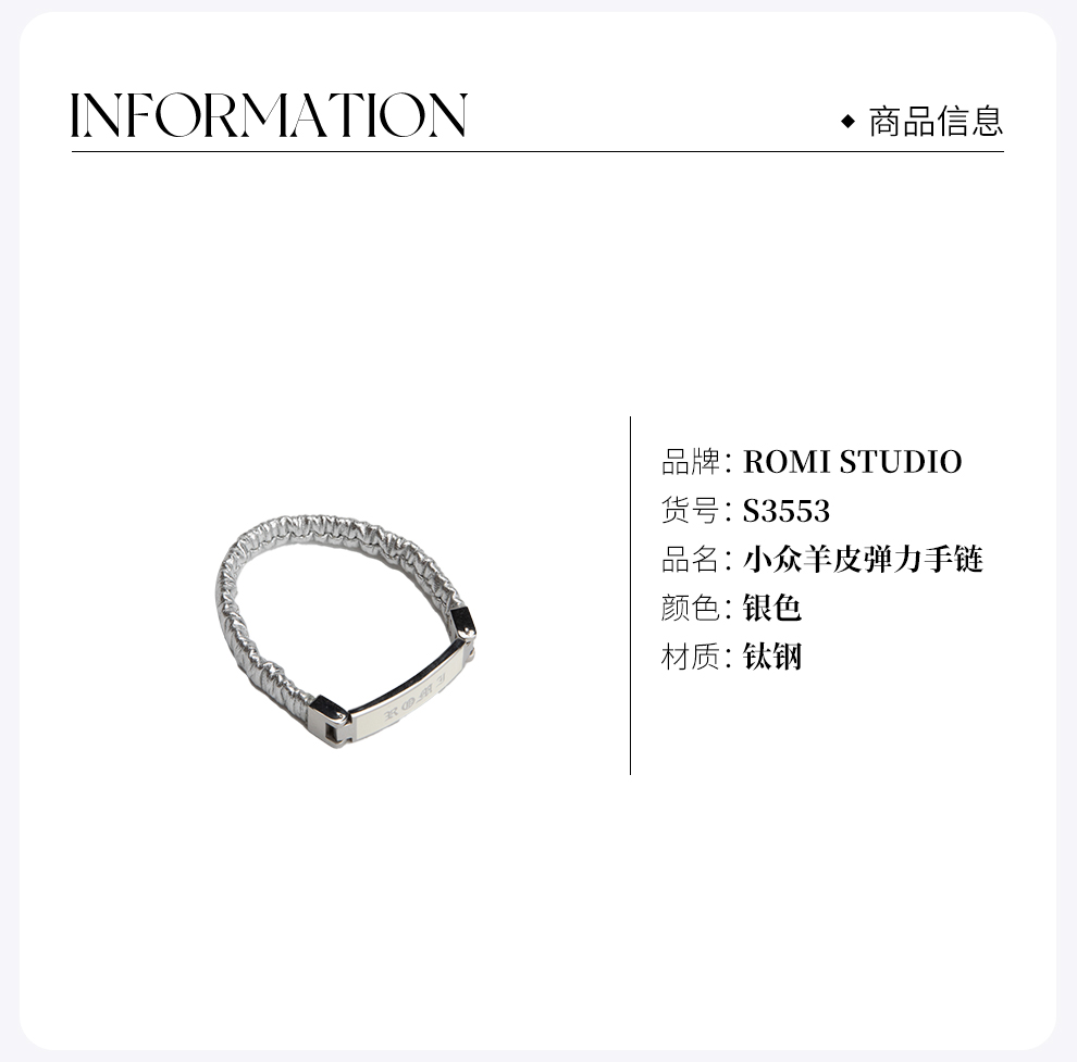 ROMI STUDIO 钛钢手链 “简约百搭”小众设计字母羊皮弹力手链S3553