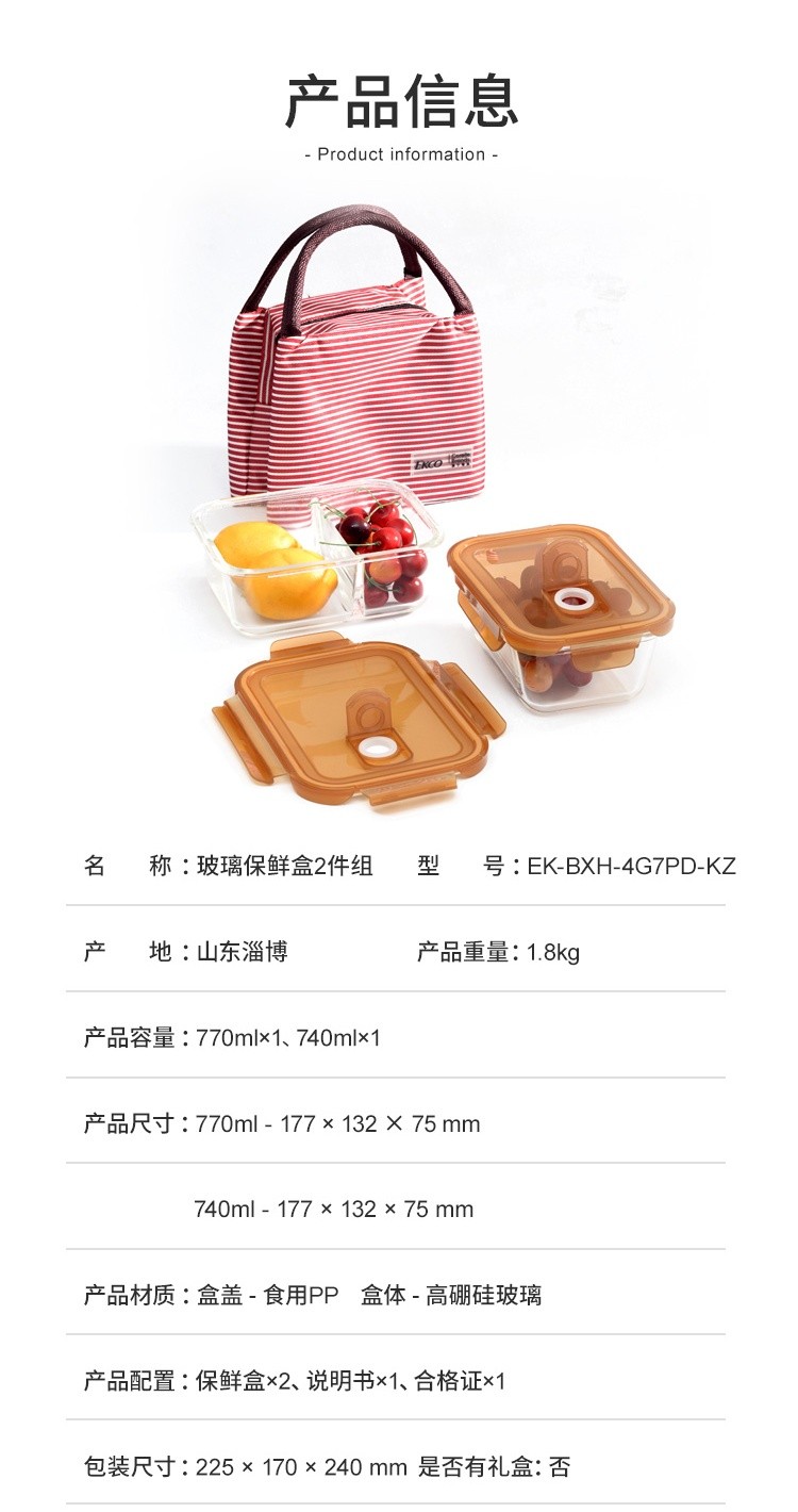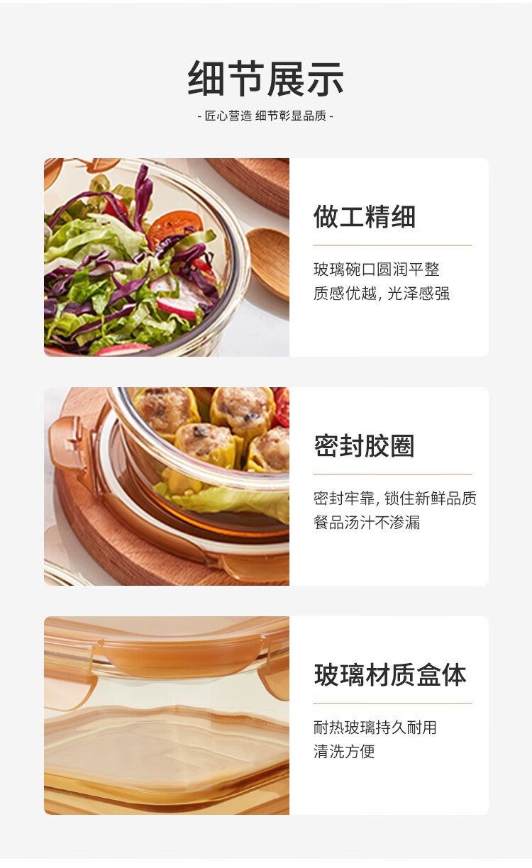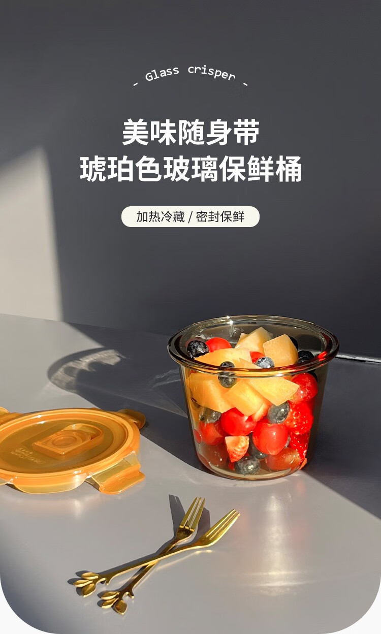 康宁玻璃饭盒玻璃保鲜盒便携饭盒 琥珀色保鲜盒四件套A