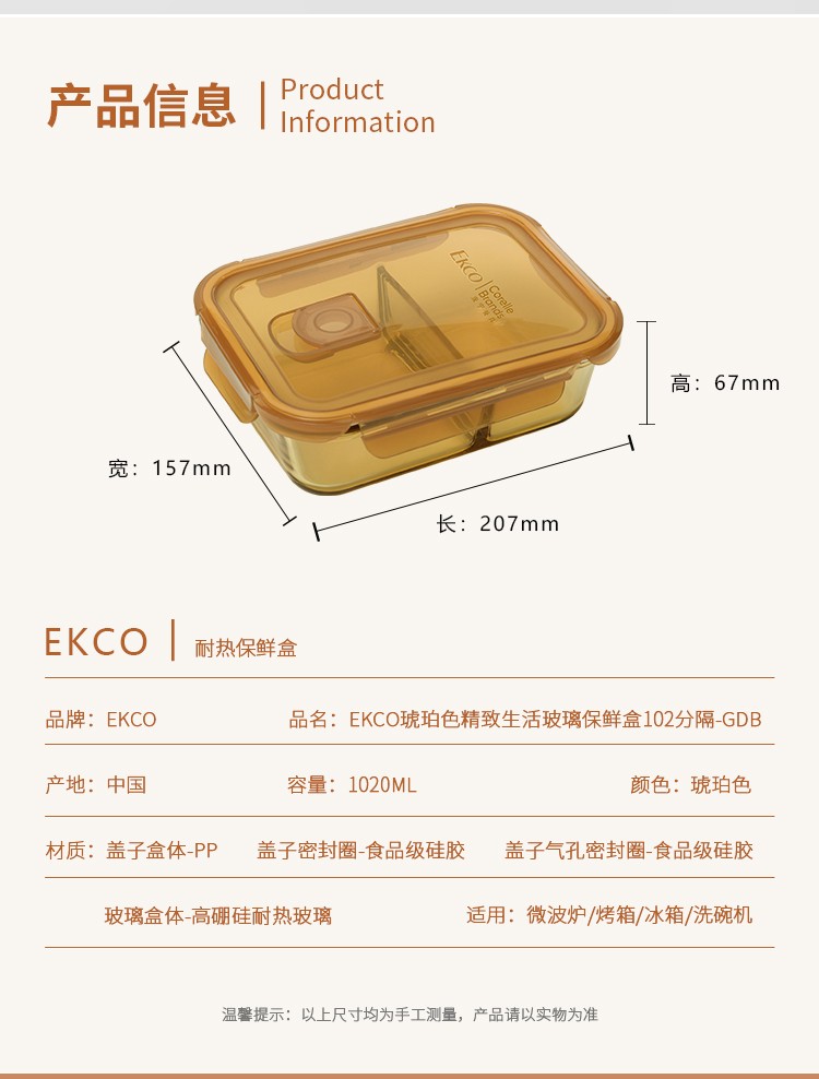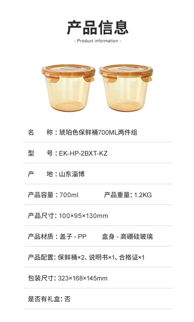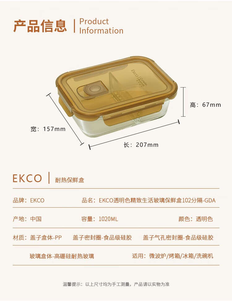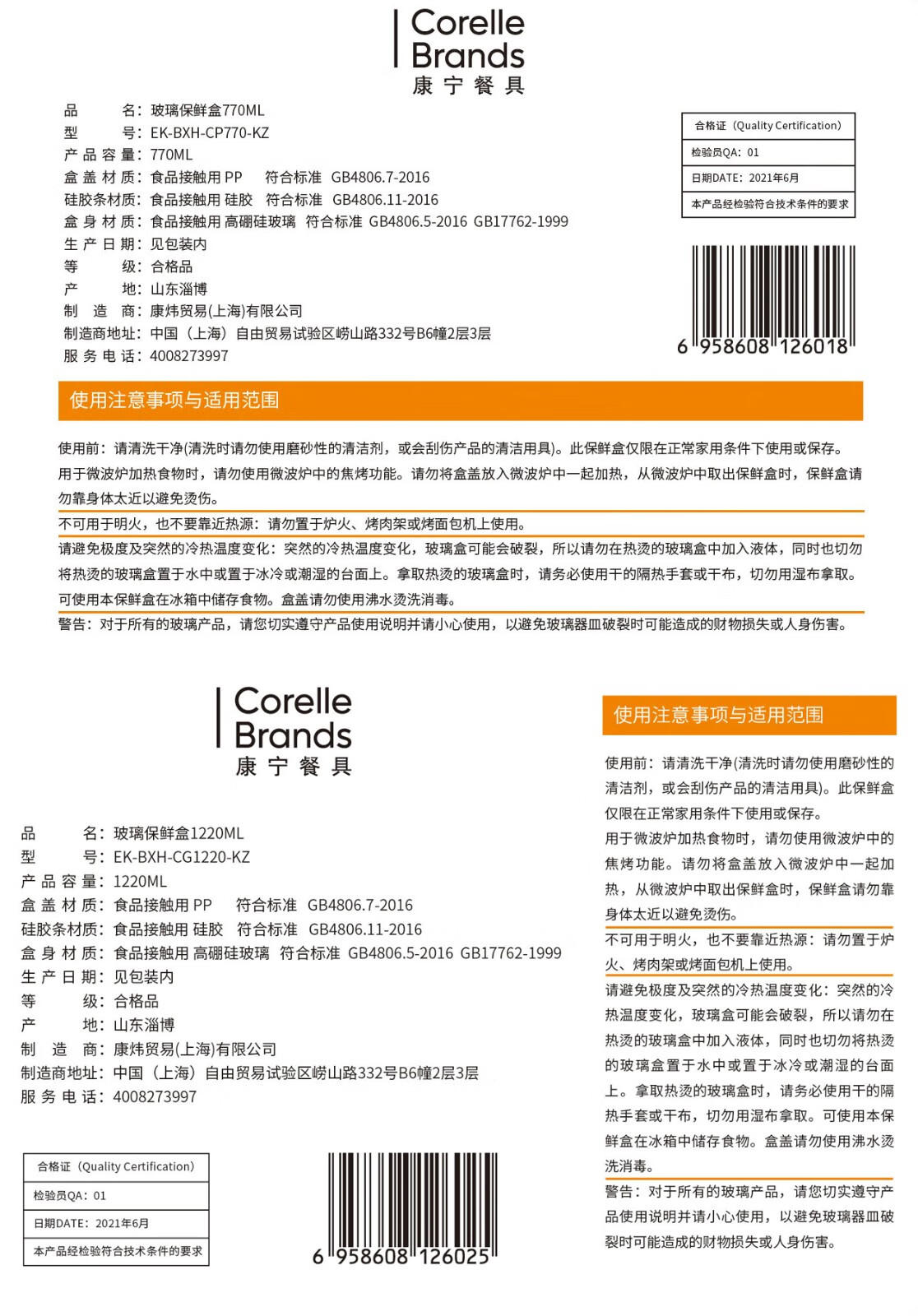 康宁玻璃饭盒玻璃保鲜盒便携饭盒 琥珀色保鲜盒四件套A