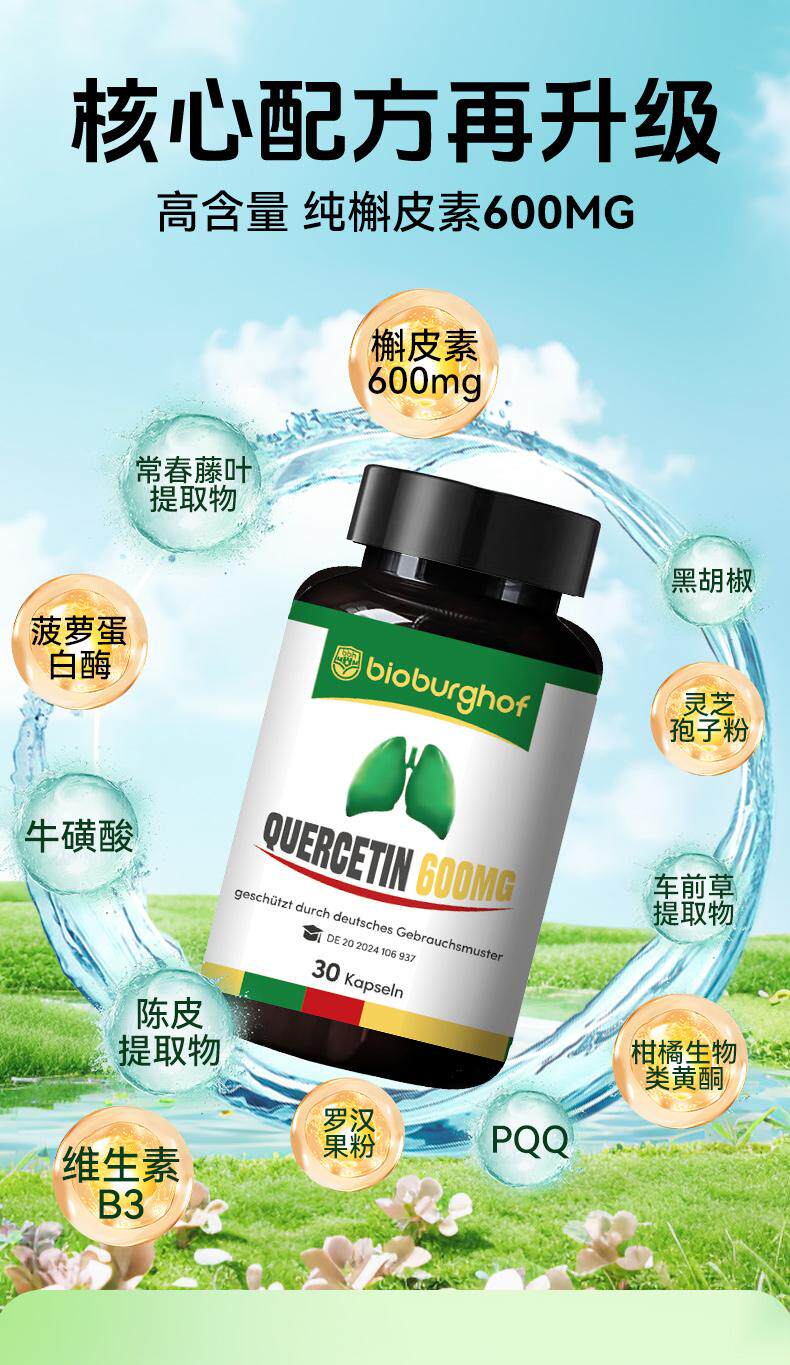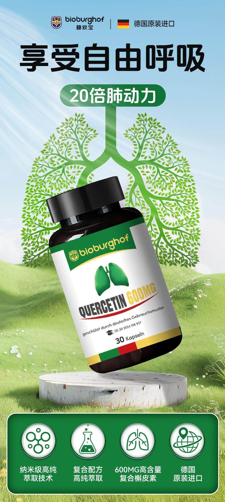 Bioburghof碧欧宝 槲皮素胶囊肺立清清肺护肺结节肺动力 德国进口