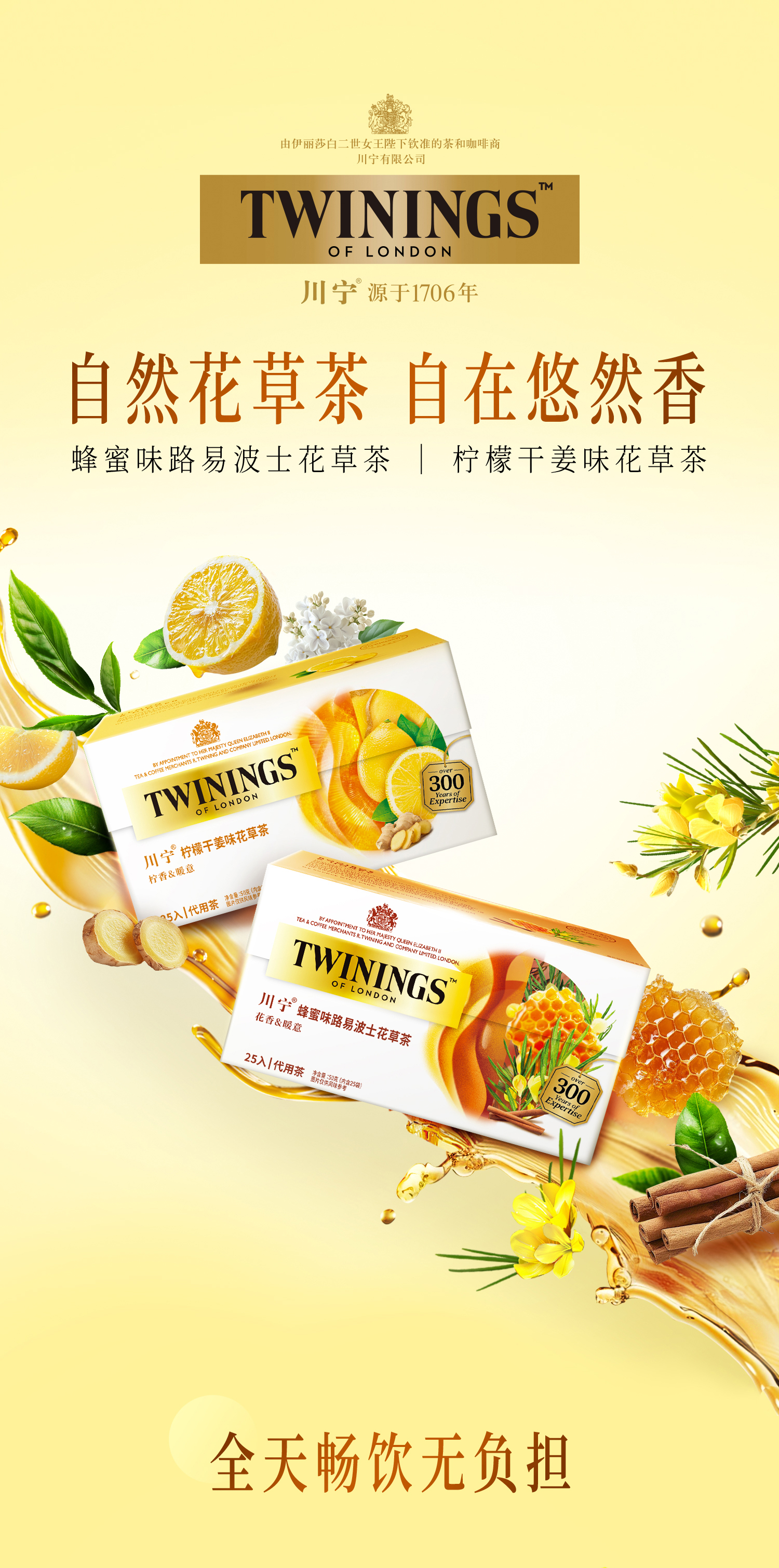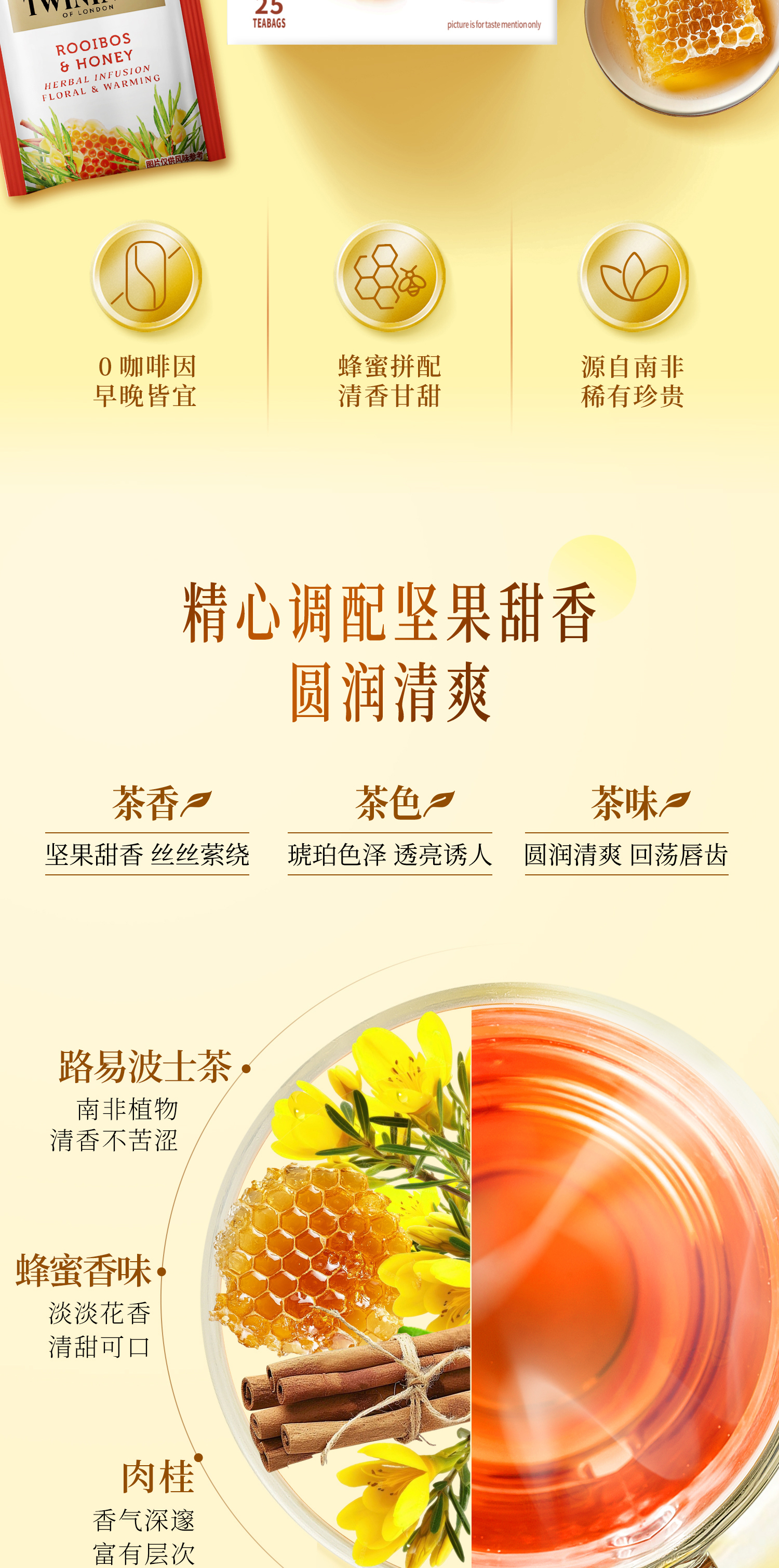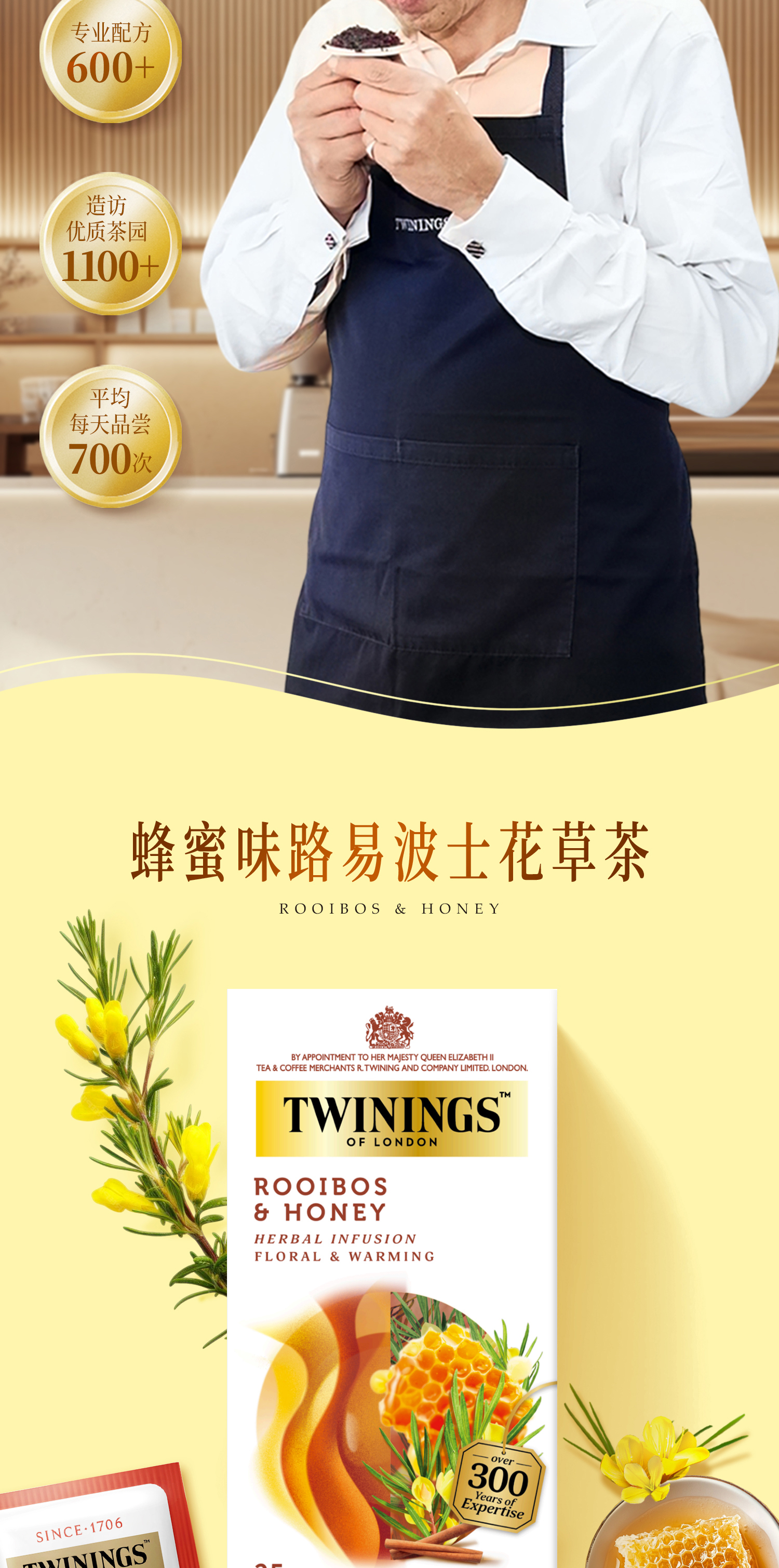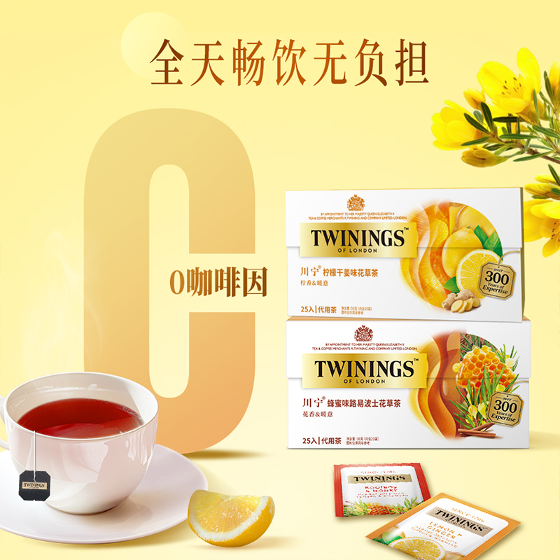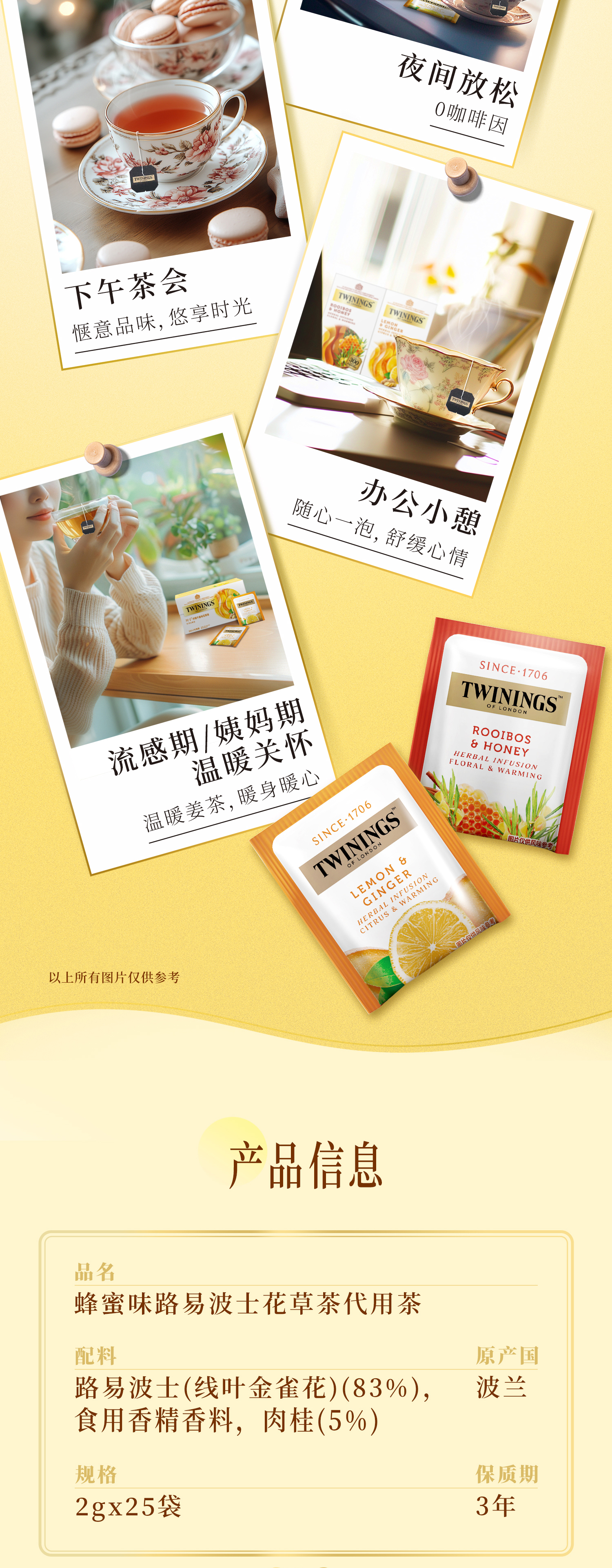 【森哥优选】川宁 2盒50袋 蜂蜜味路易波士花草茶 英国进口twinings 茶包英式奶茶专用茶叶茶粉