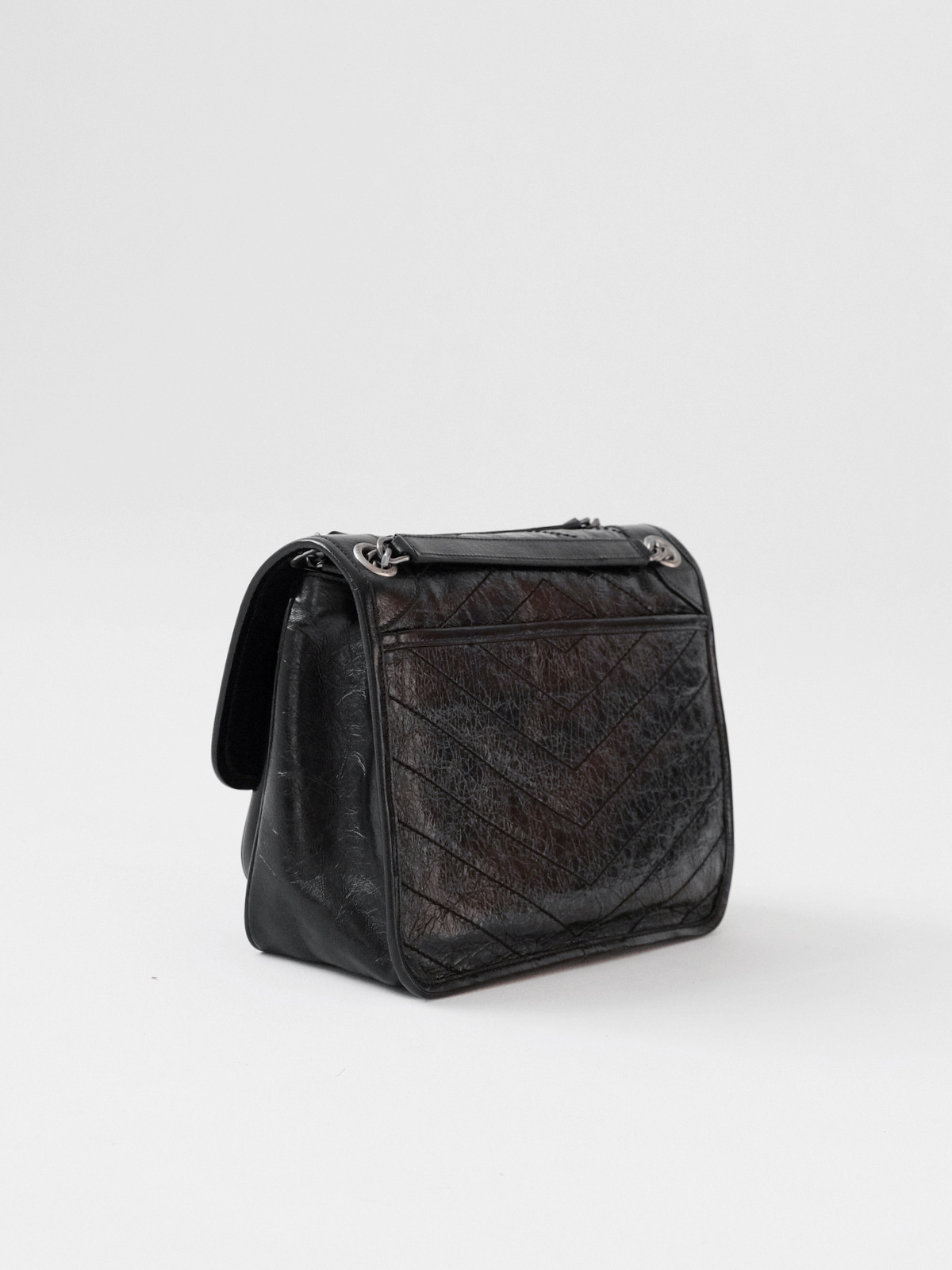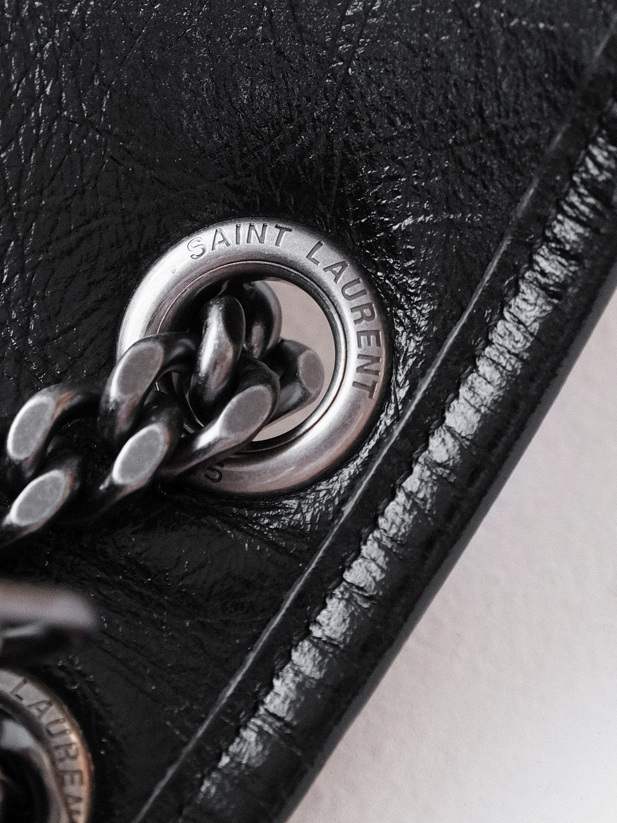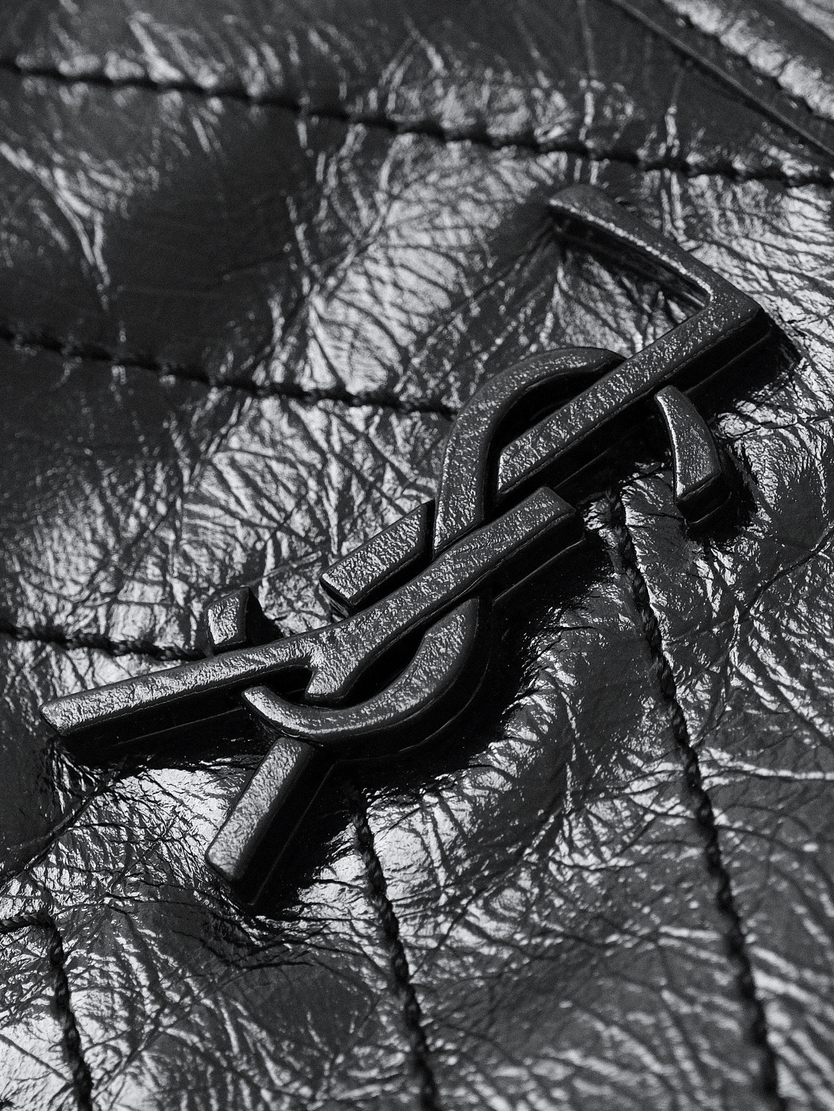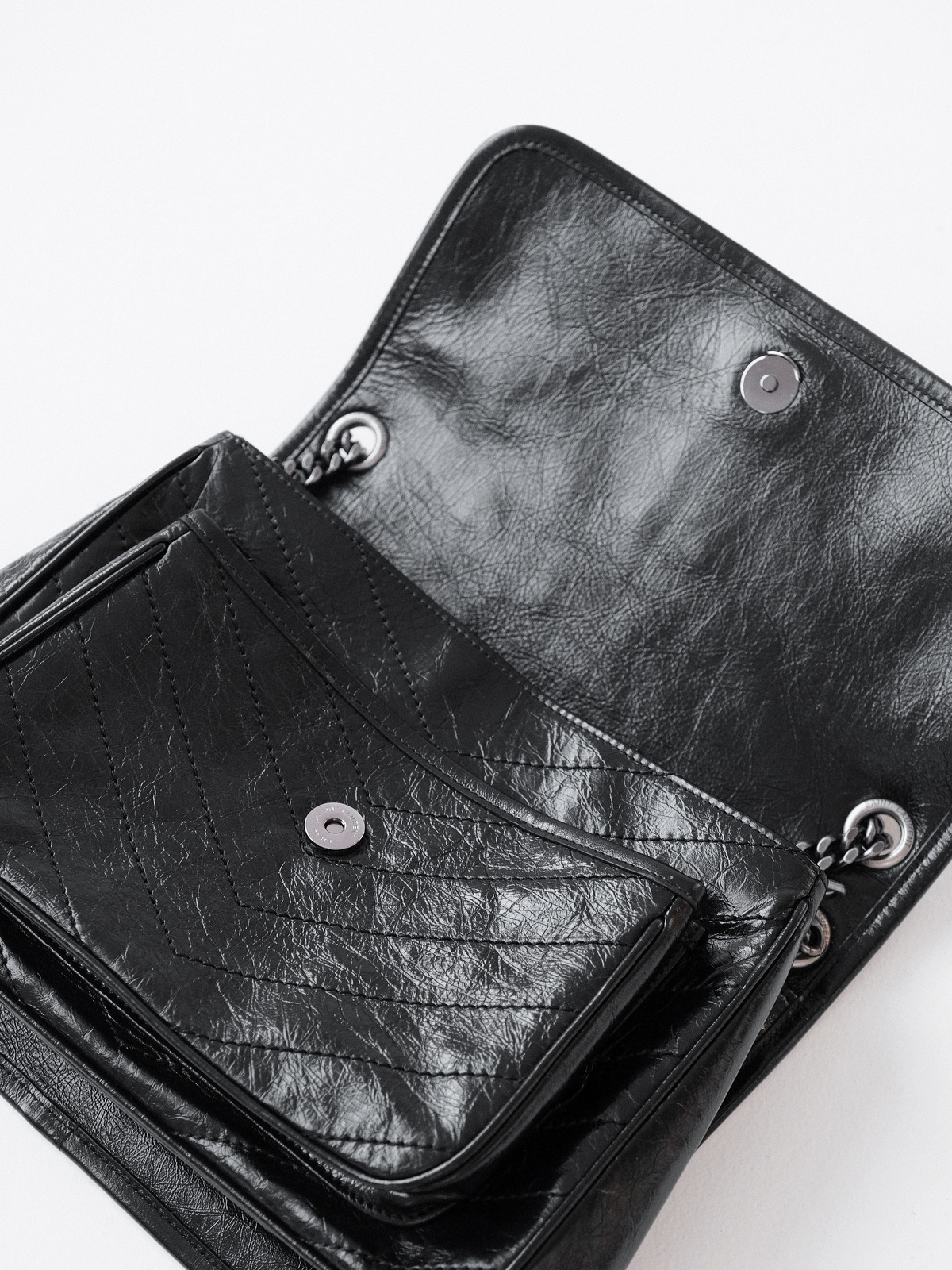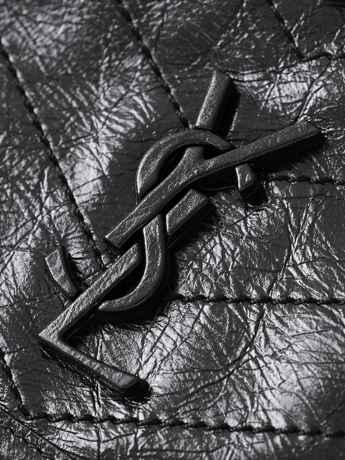 圣罗兰niki 黑链黑标LOGO复古褶皱 牛皮革 流浪包斜挎单肩包 22/28CM小中号双尺寸(ZJ)