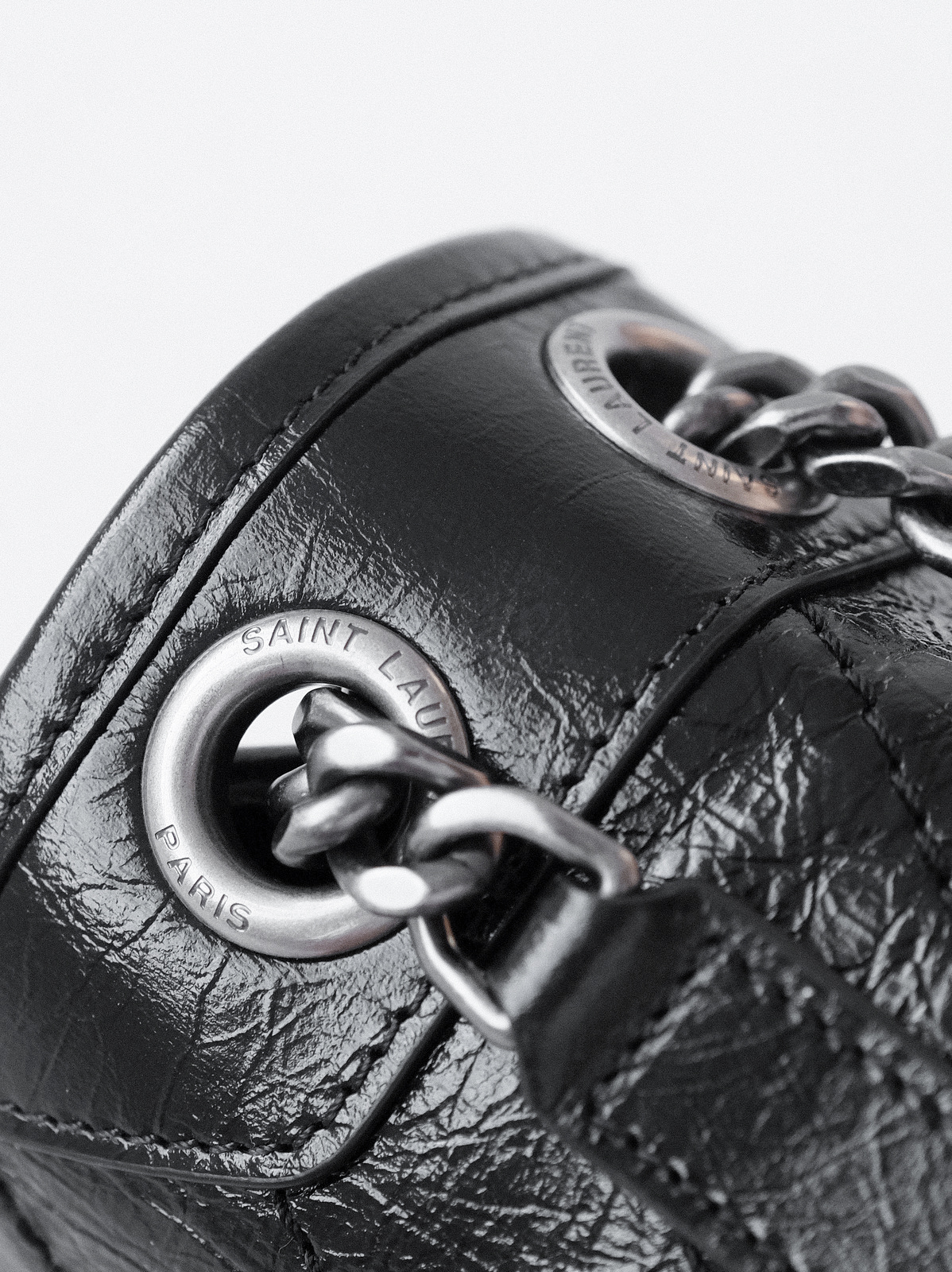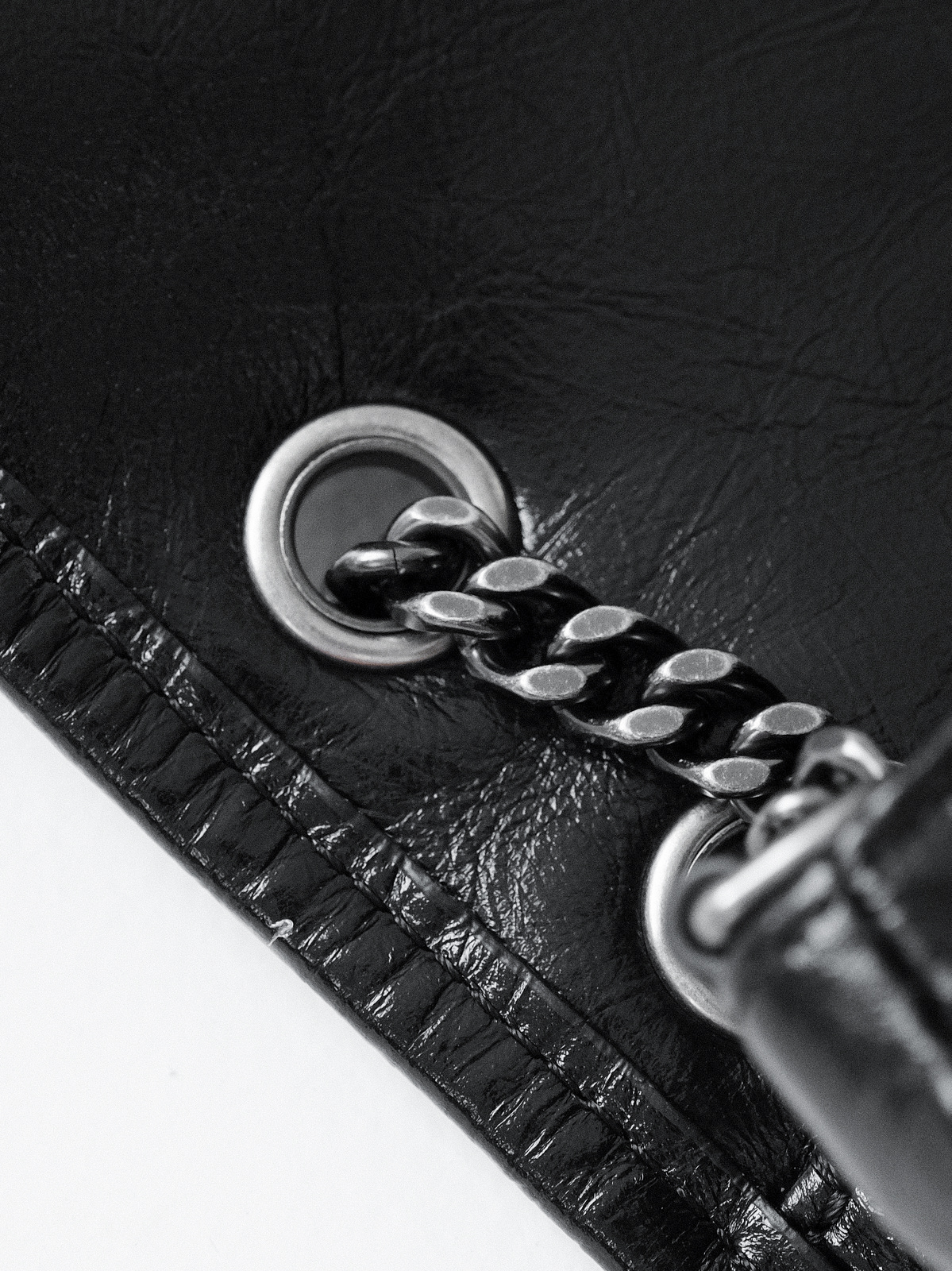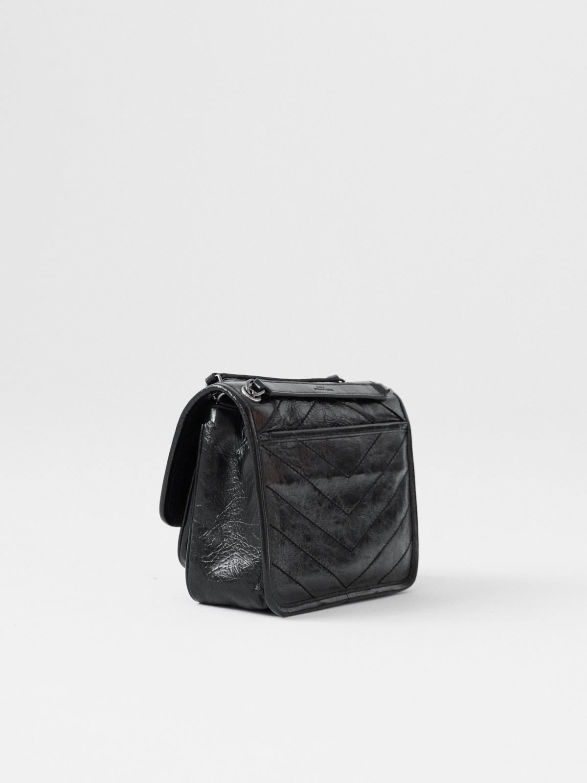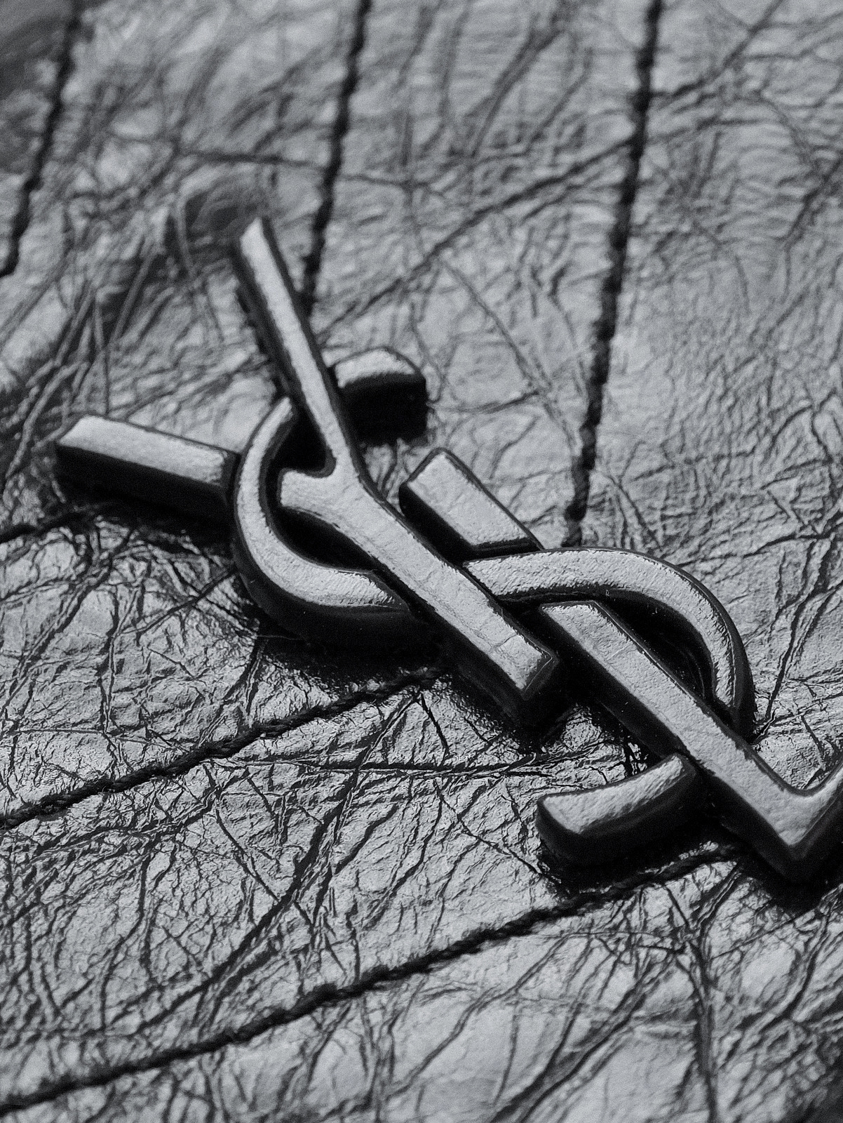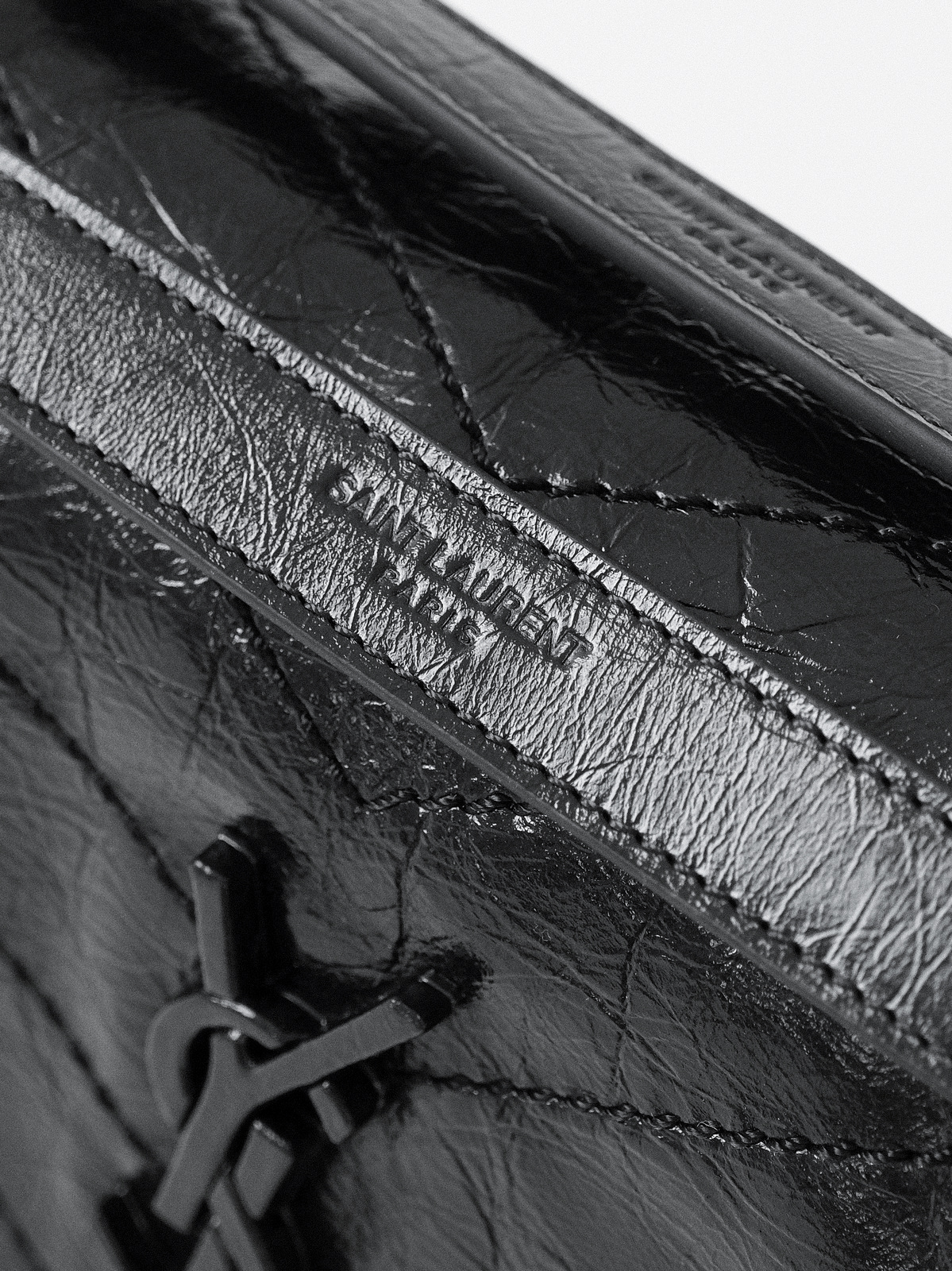 圣罗兰niki 黑链黑标LOGO复古褶皱 牛皮革 流浪包斜挎单肩包 22/28CM小中号双尺寸(ZJ)