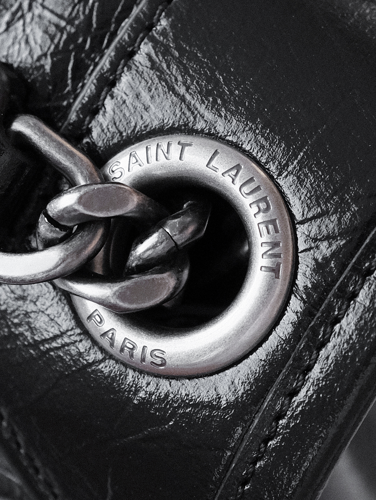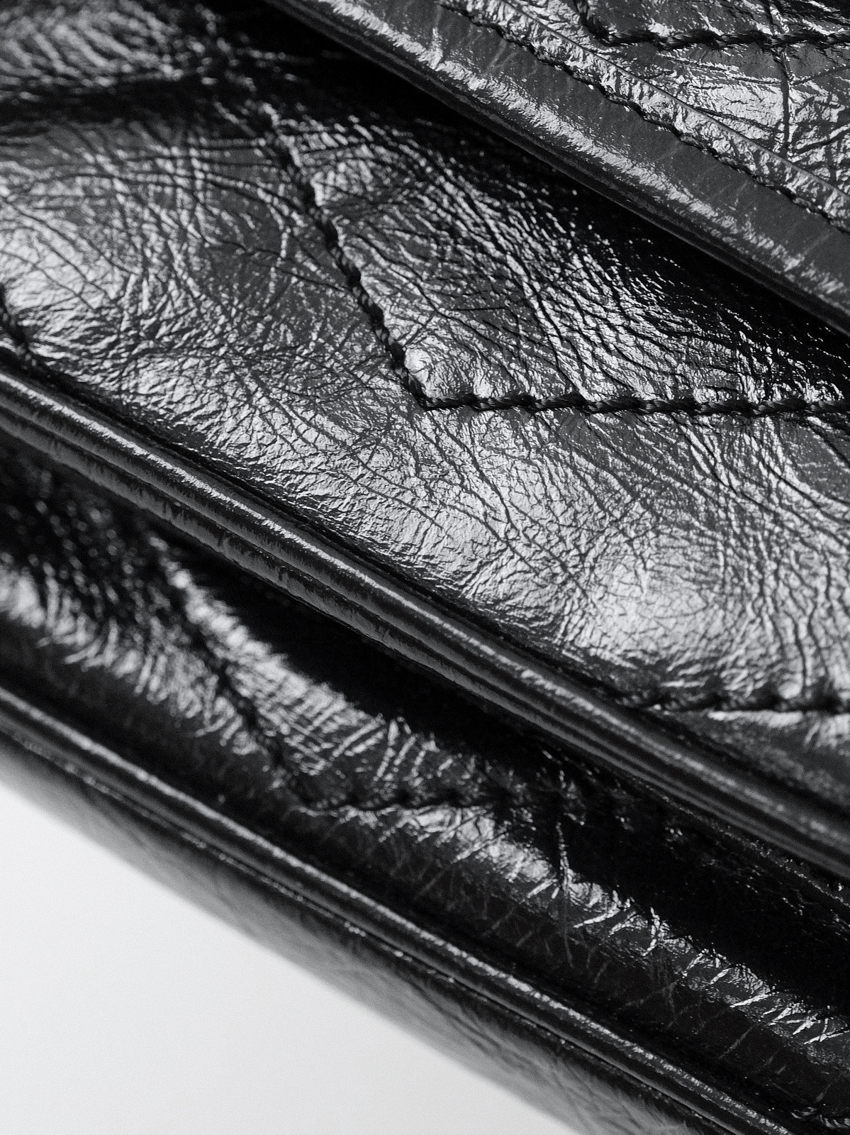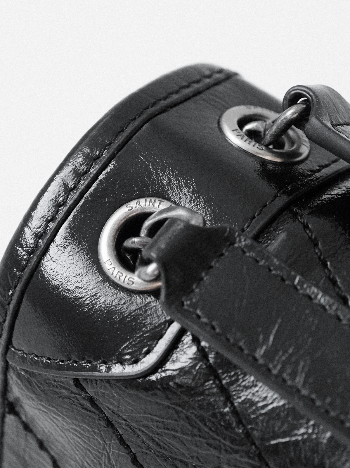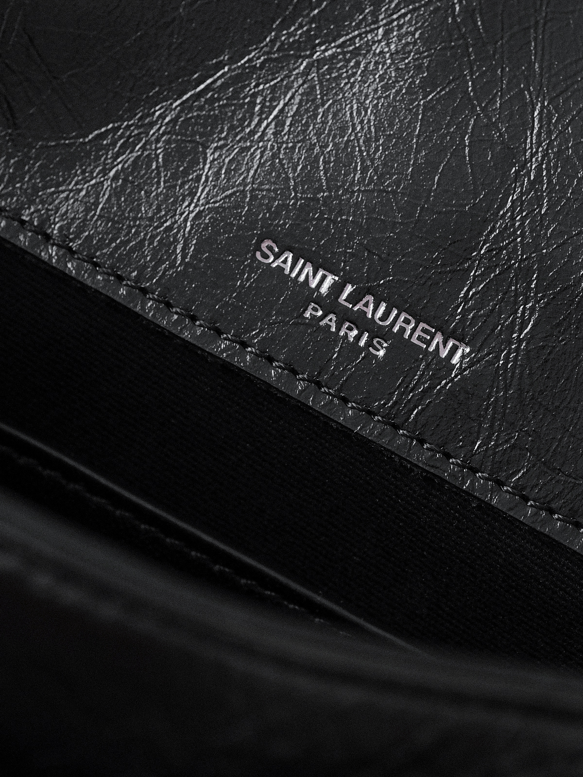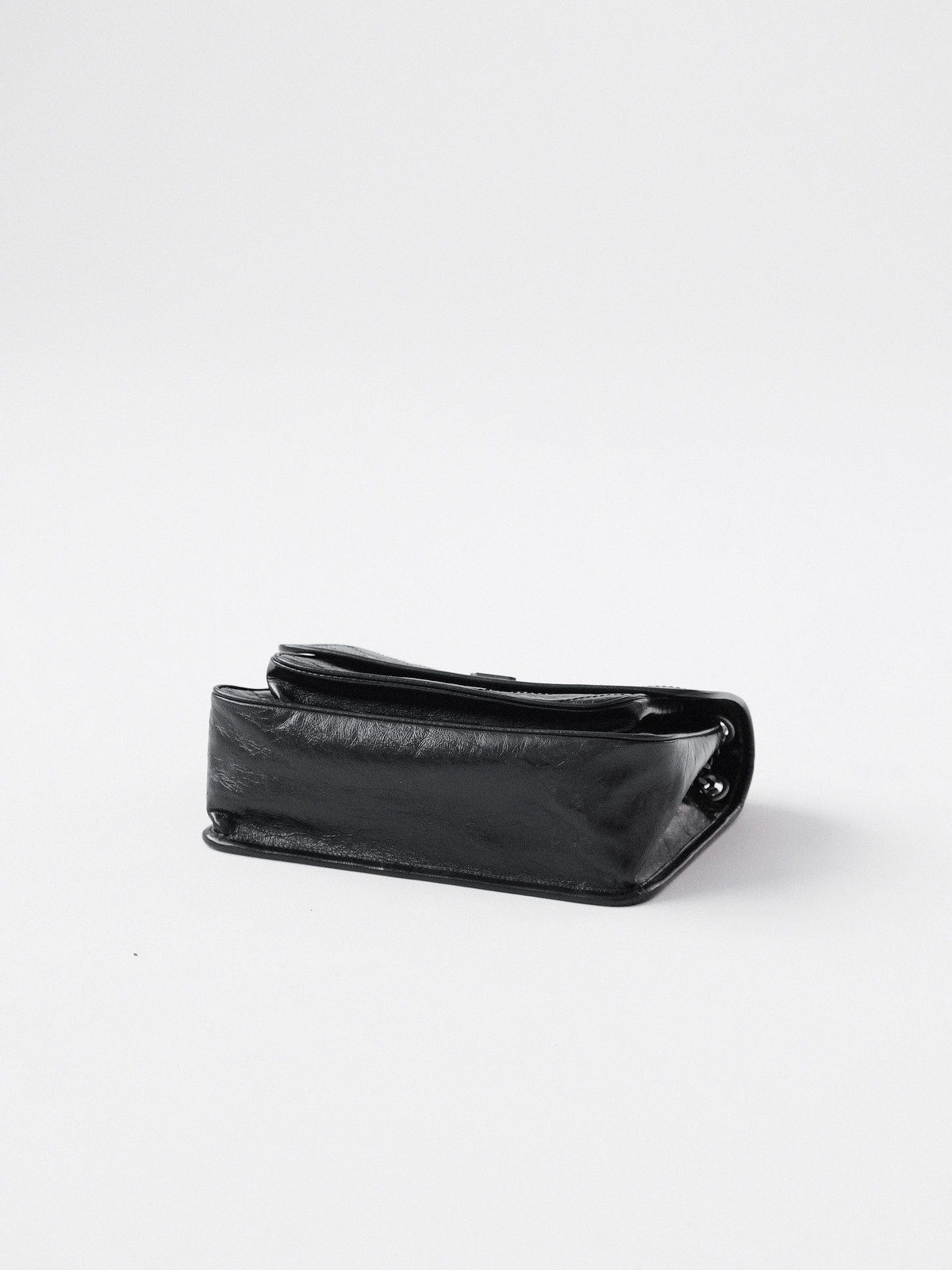 圣罗兰niki 黑链黑标LOGO复古褶皱 牛皮革 流浪包斜挎单肩包 22/28CM小中号双尺寸(ZJ)