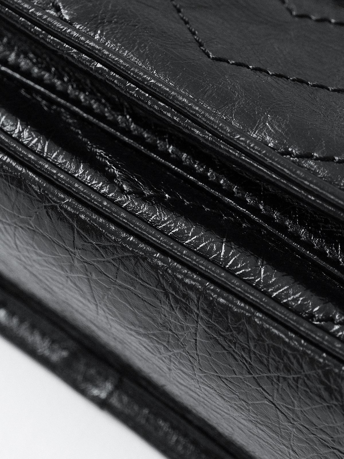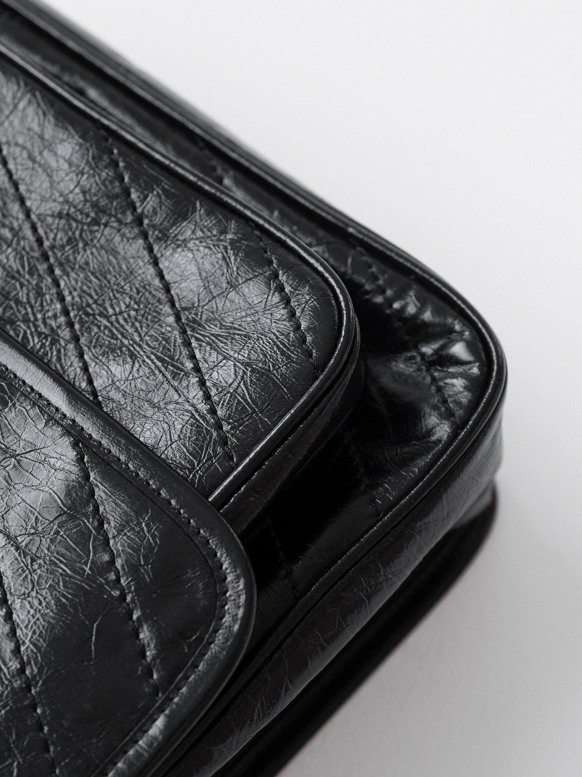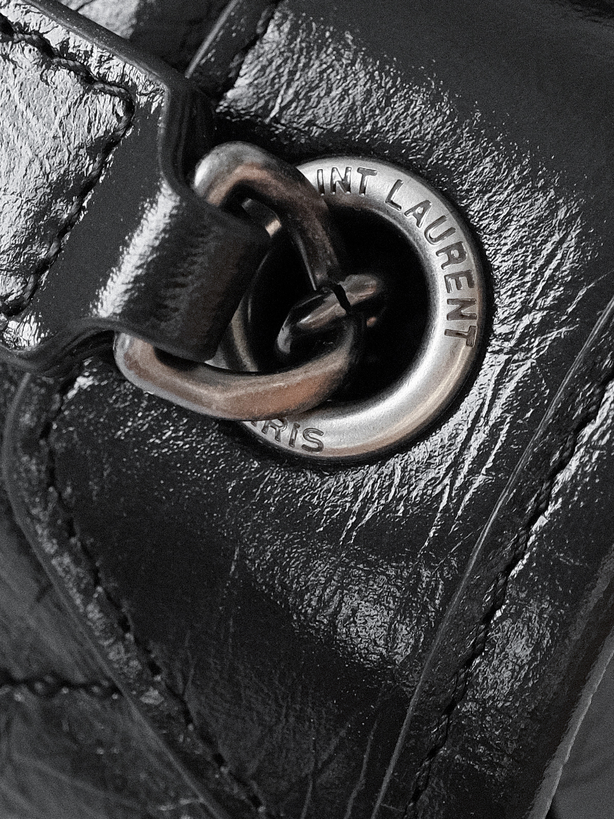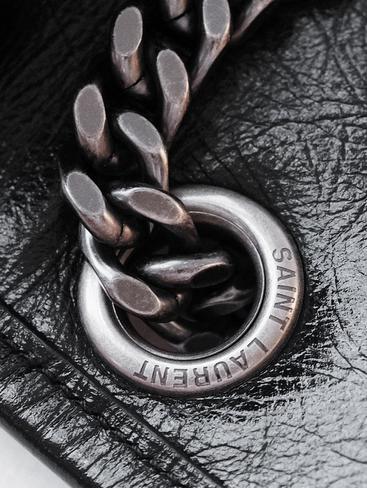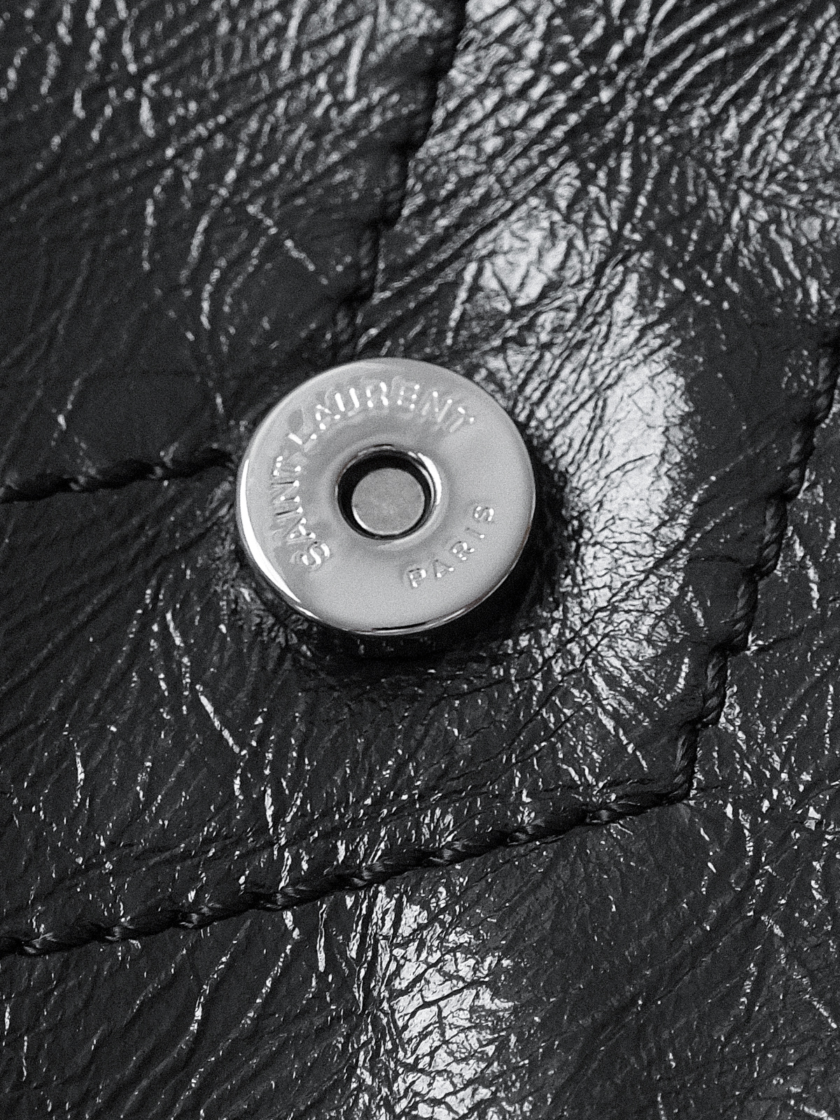 圣罗兰niki 黑链黑标LOGO复古褶皱 牛皮革 流浪包斜挎单肩包 22/28CM小中号双尺寸(ZJ)