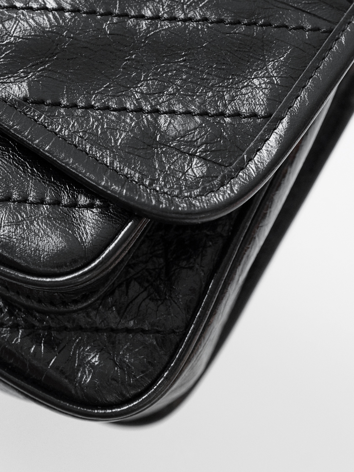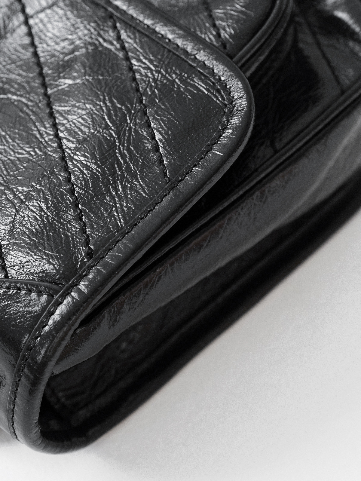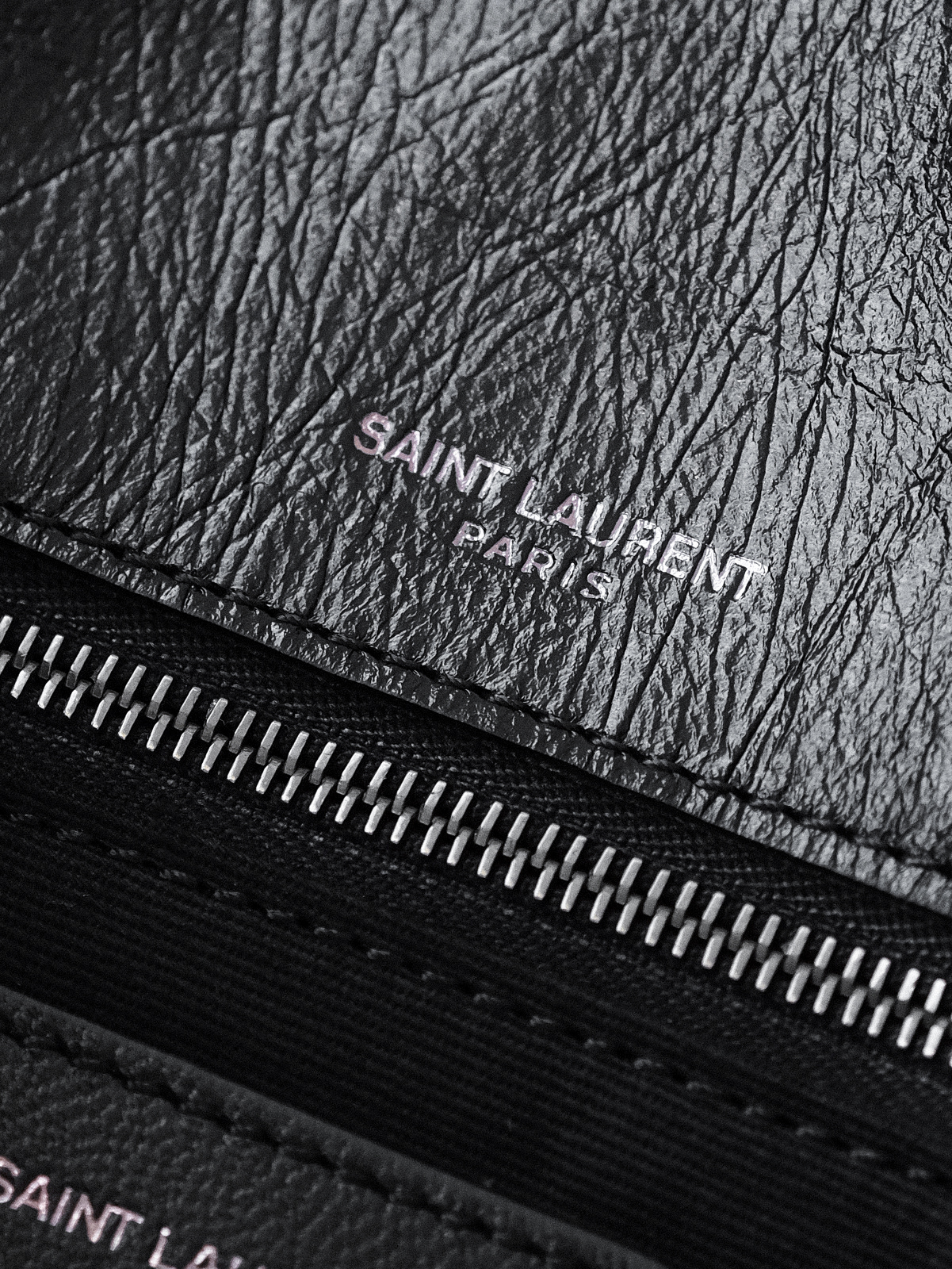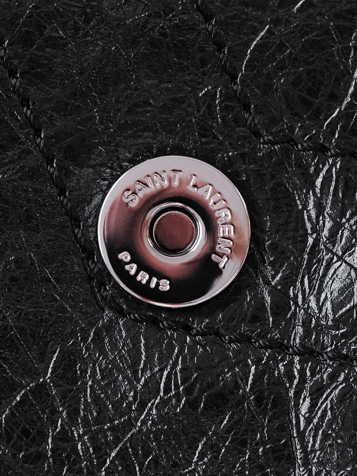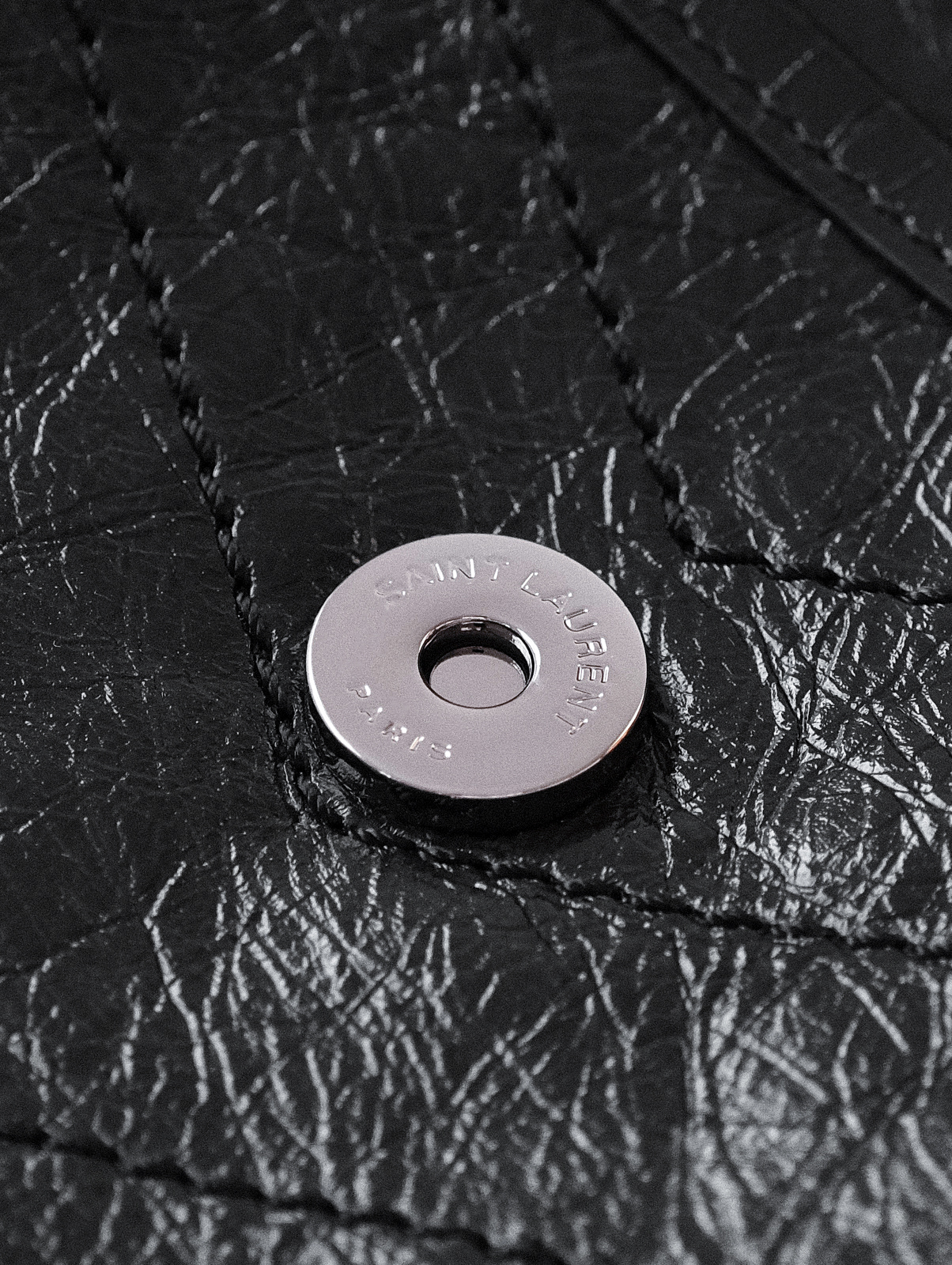 圣罗兰niki 黑链黑标LOGO复古褶皱 牛皮革 流浪包斜挎单肩包 22/28CM小中号双尺寸(ZJ)