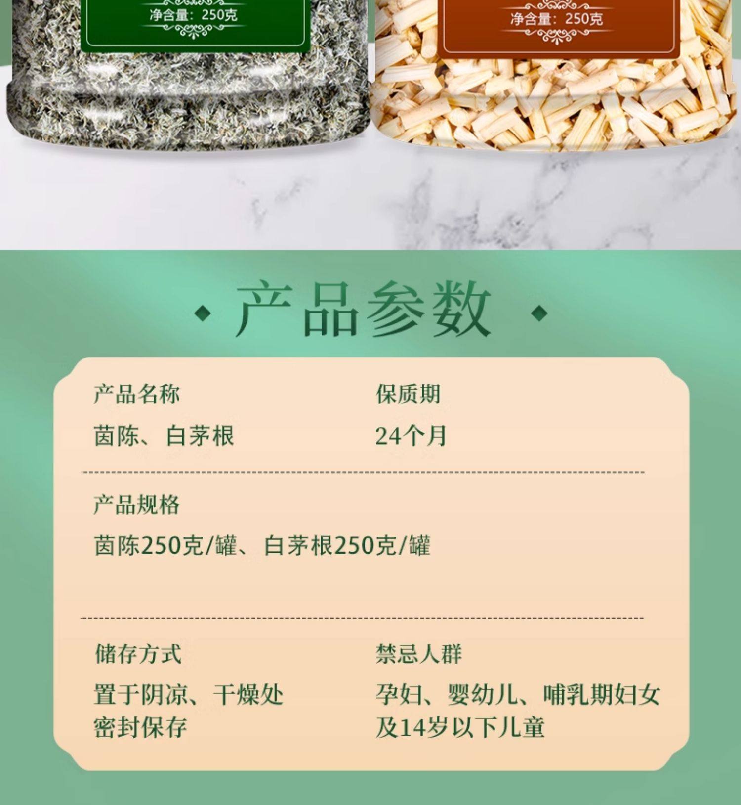 茵陈白茅根中药材组合新鲜野生正品茶包干绵棉因陈的功效与作用茶