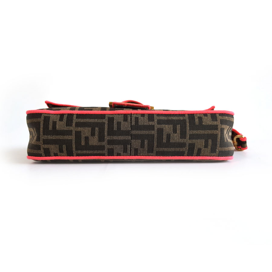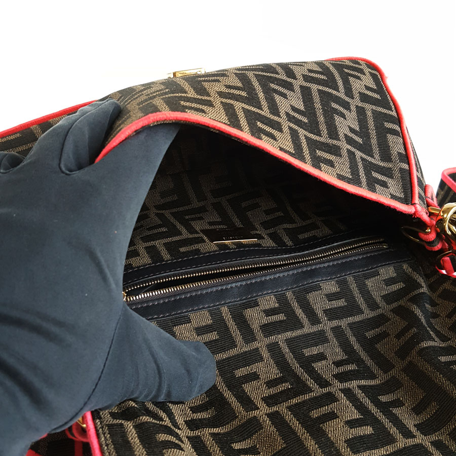 【95新】FENDI芬迪Baguette手袋8BR600中号老花拼红色Baguette法棍包单肩斜挎包女士270126AK34