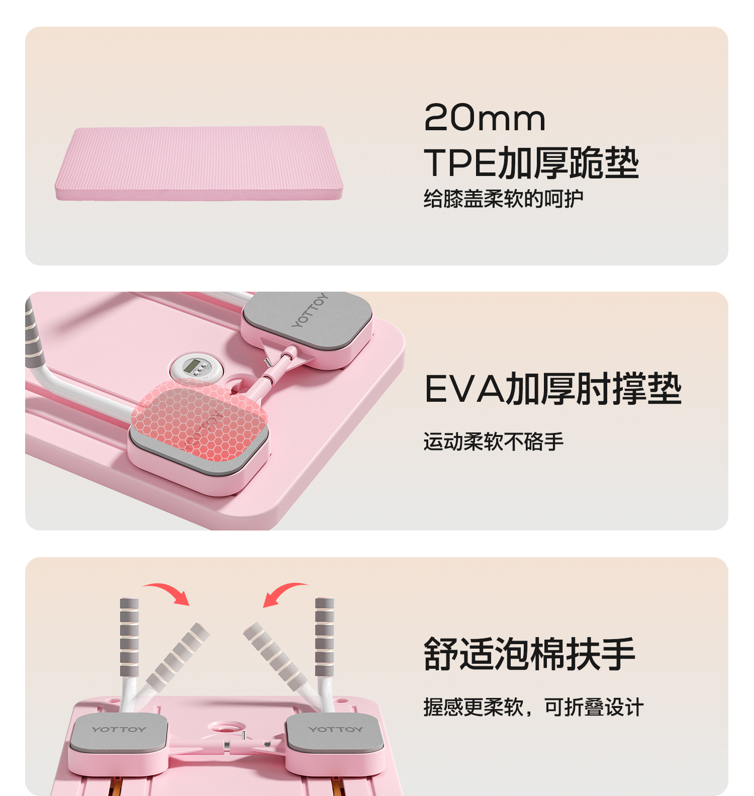 YOTTOY普拉提健腹轮健腹板家用瘦肚子神器腹肌平板支撑健身板器材