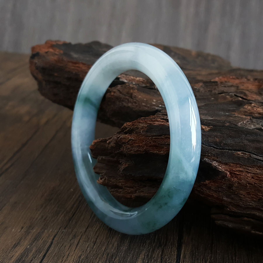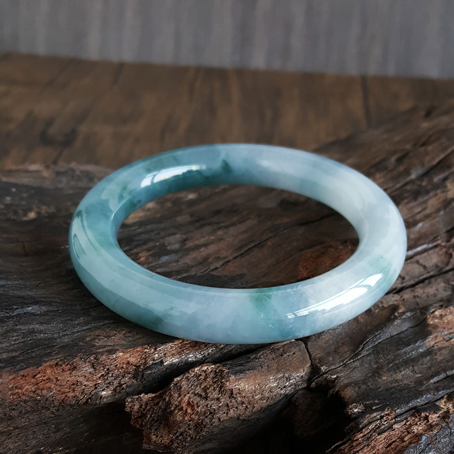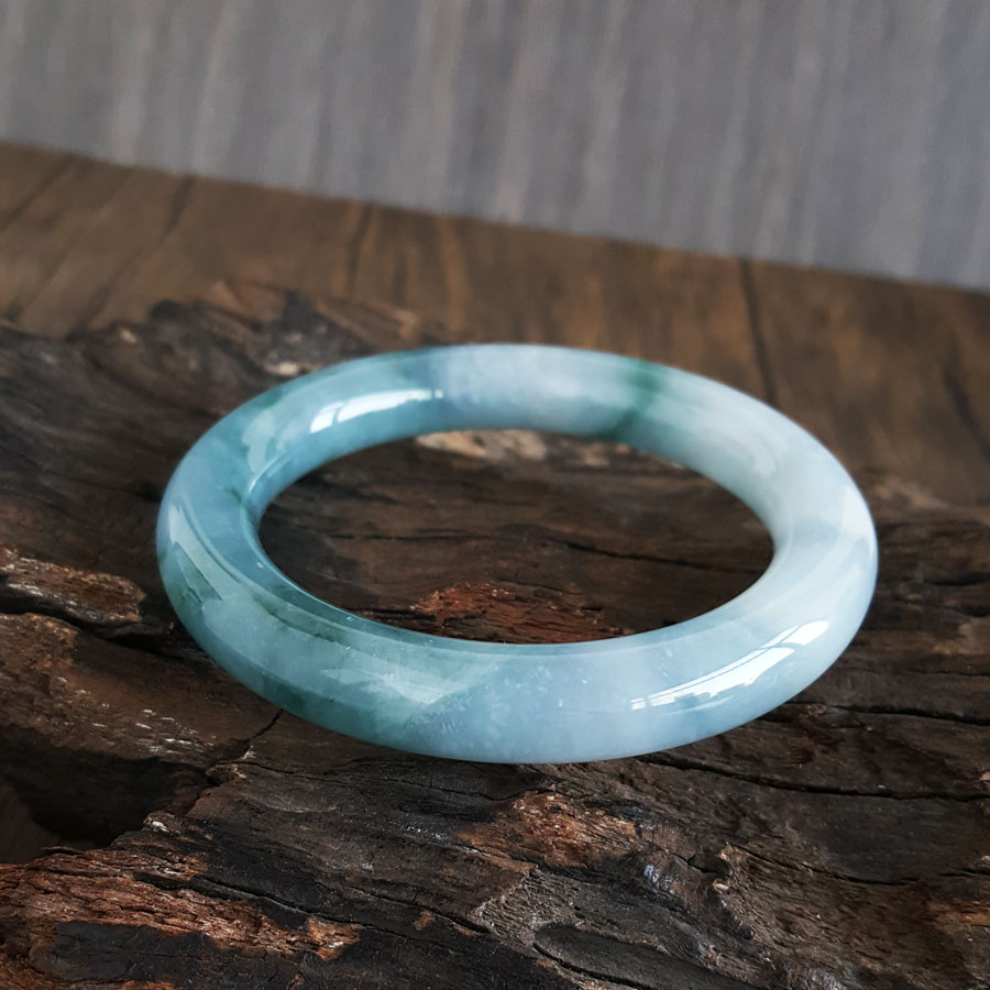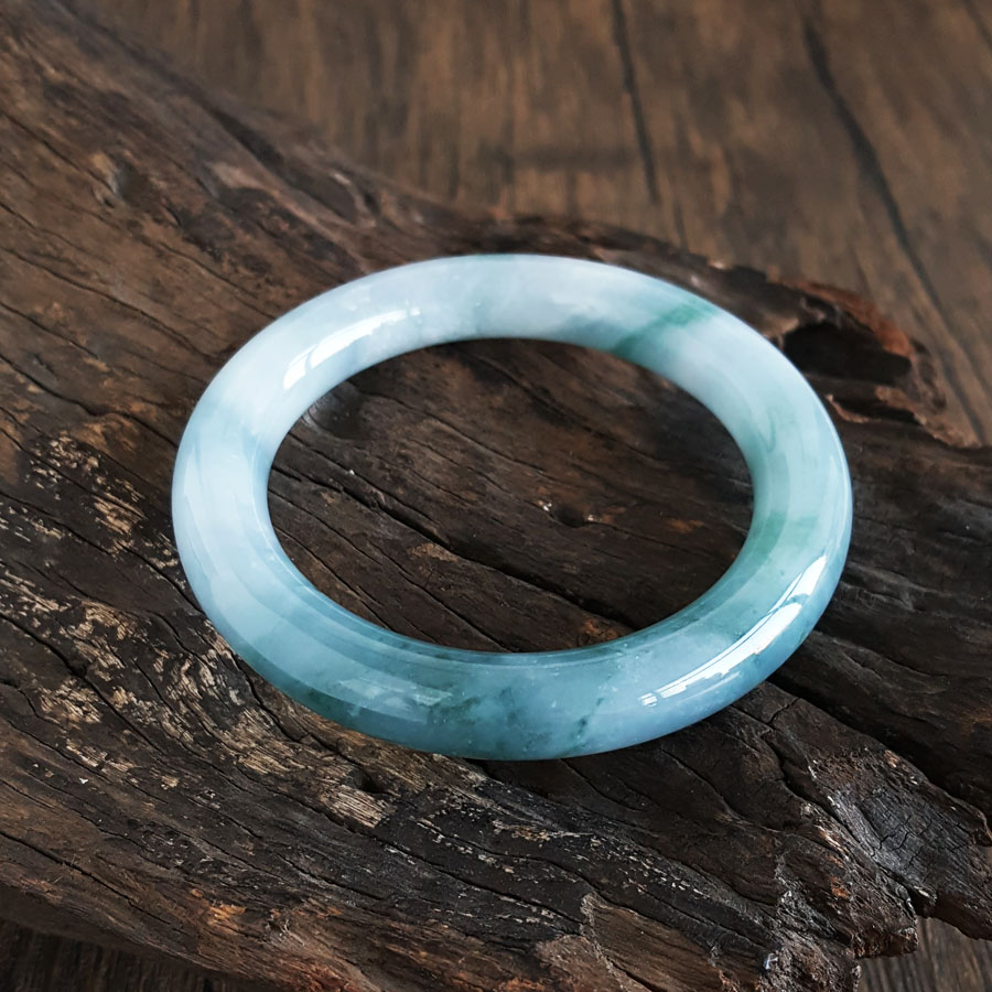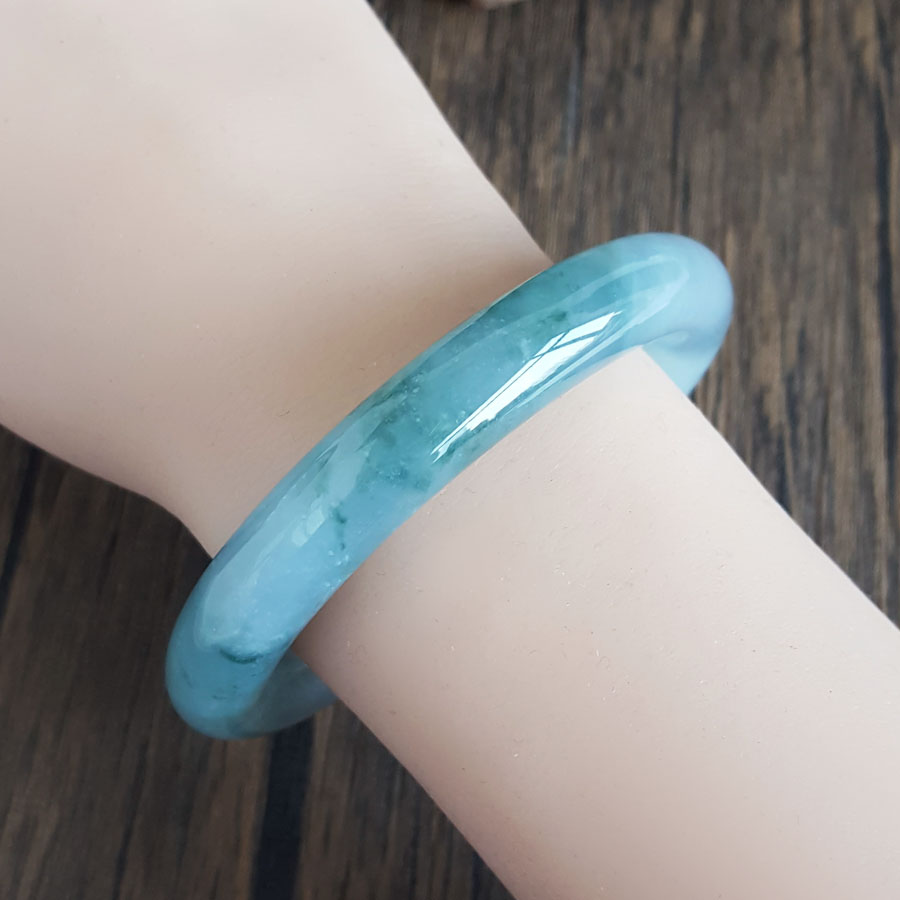 名称 | 天然细腻无裂圆条糯冰种白底飘花55.5号翡翠手镯 |