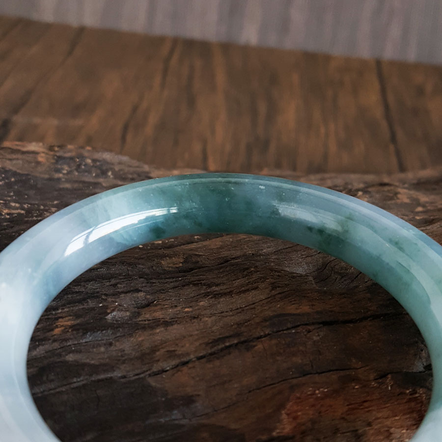 【天然正品】A货翡翠天然细腻无裂圆条糯冰种白底飘花55.5号翡翠手镯女士现售价:8880!250225NJS09