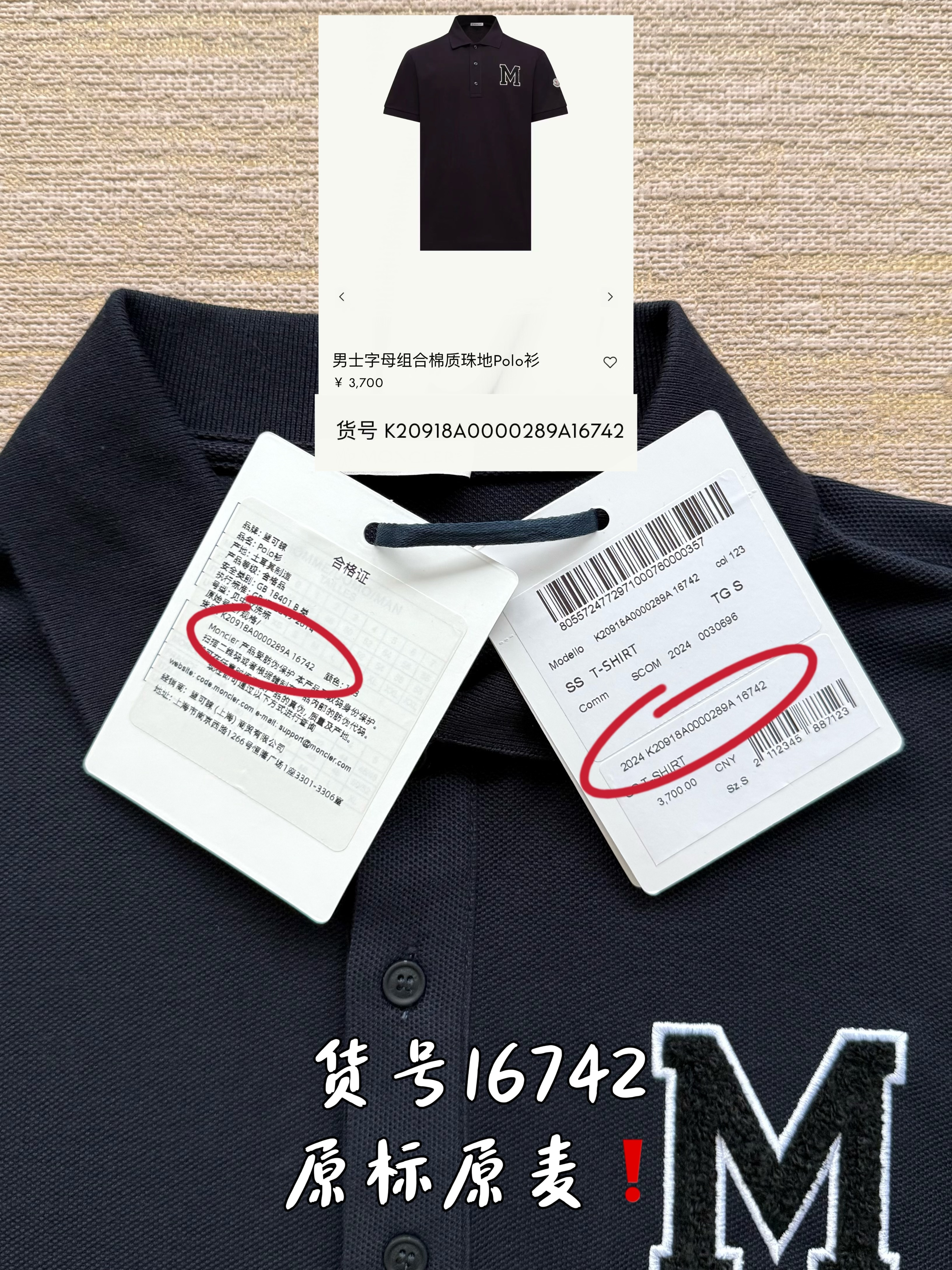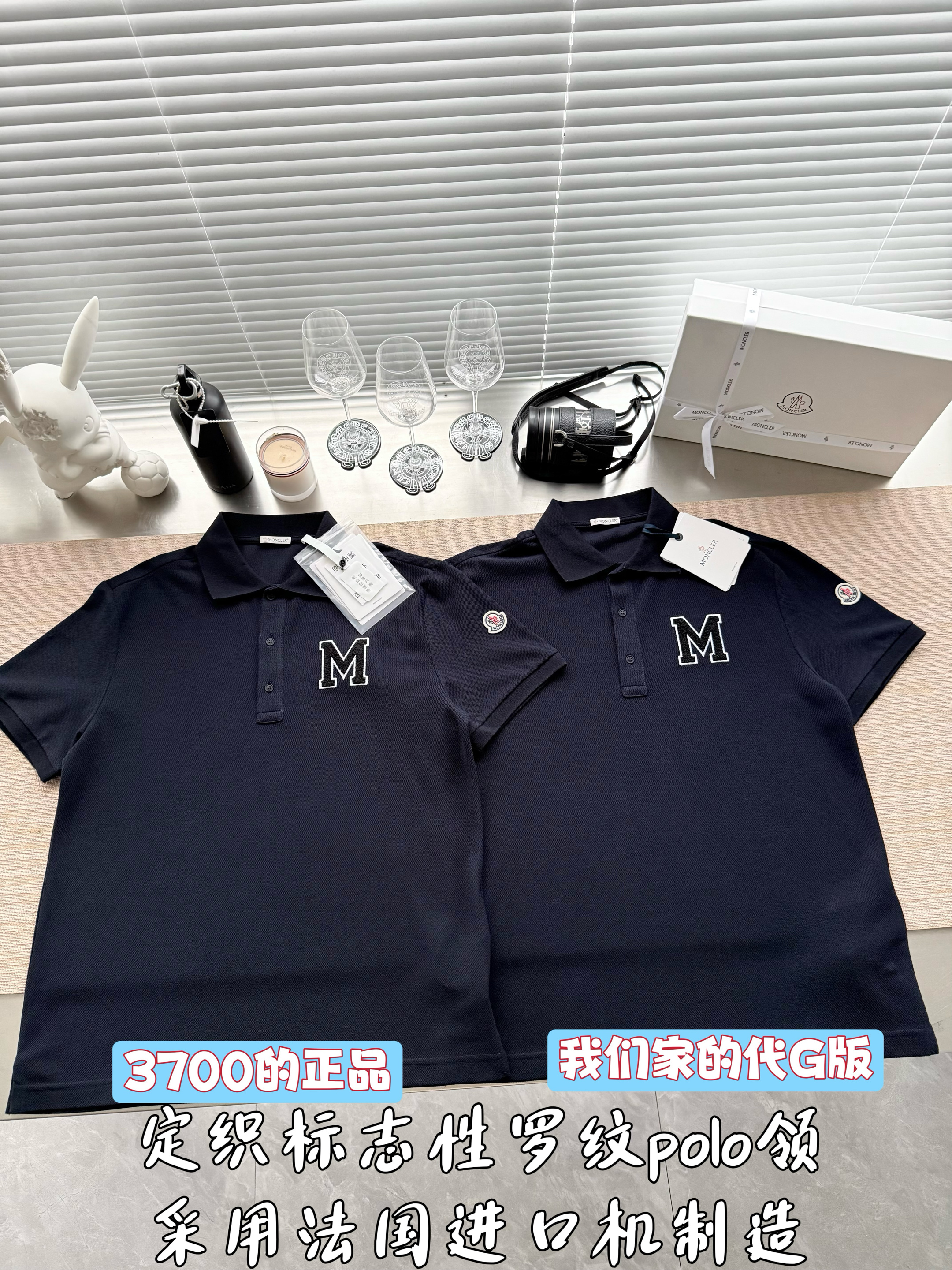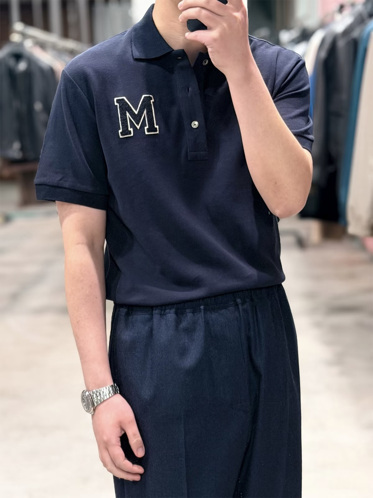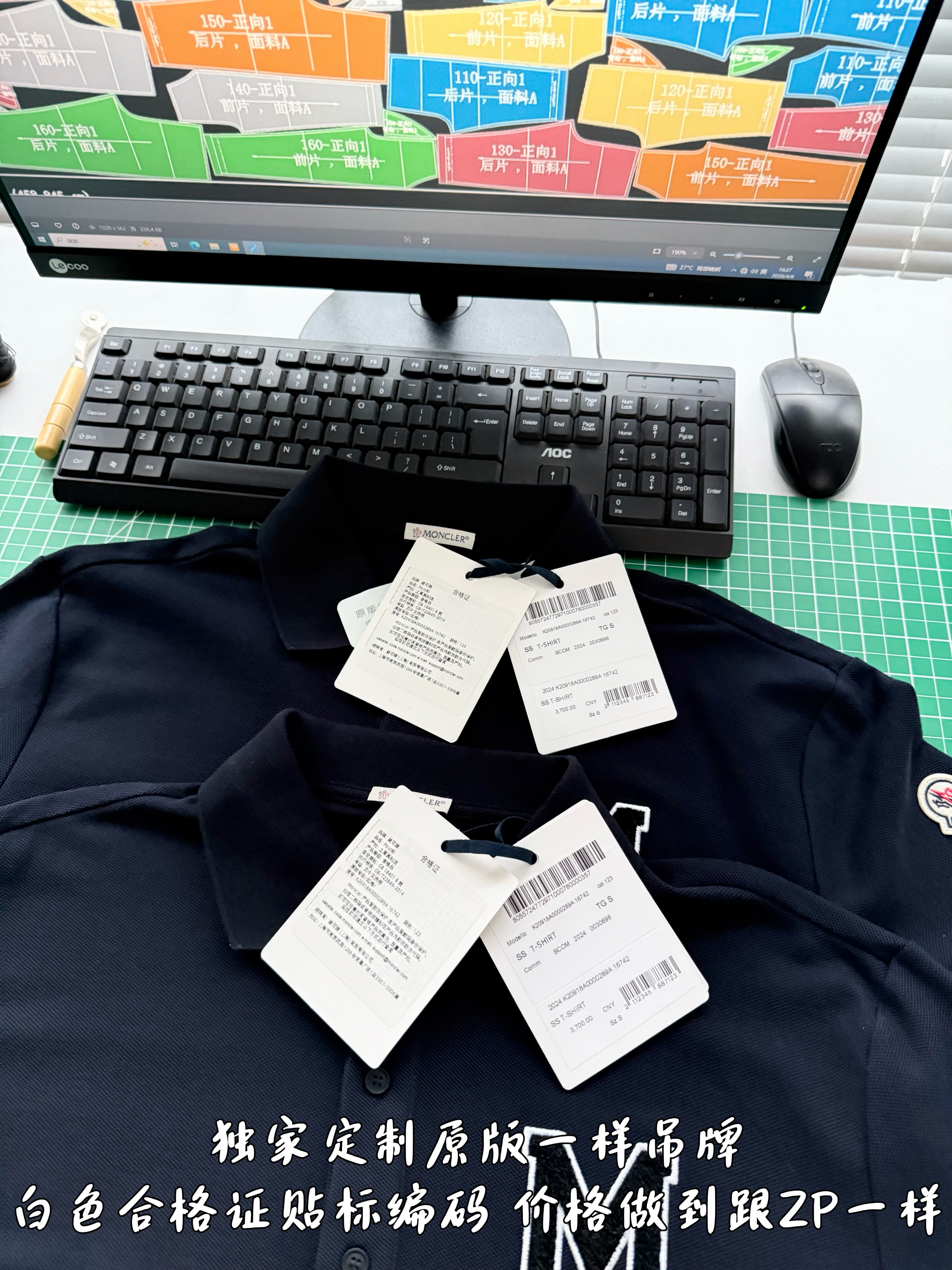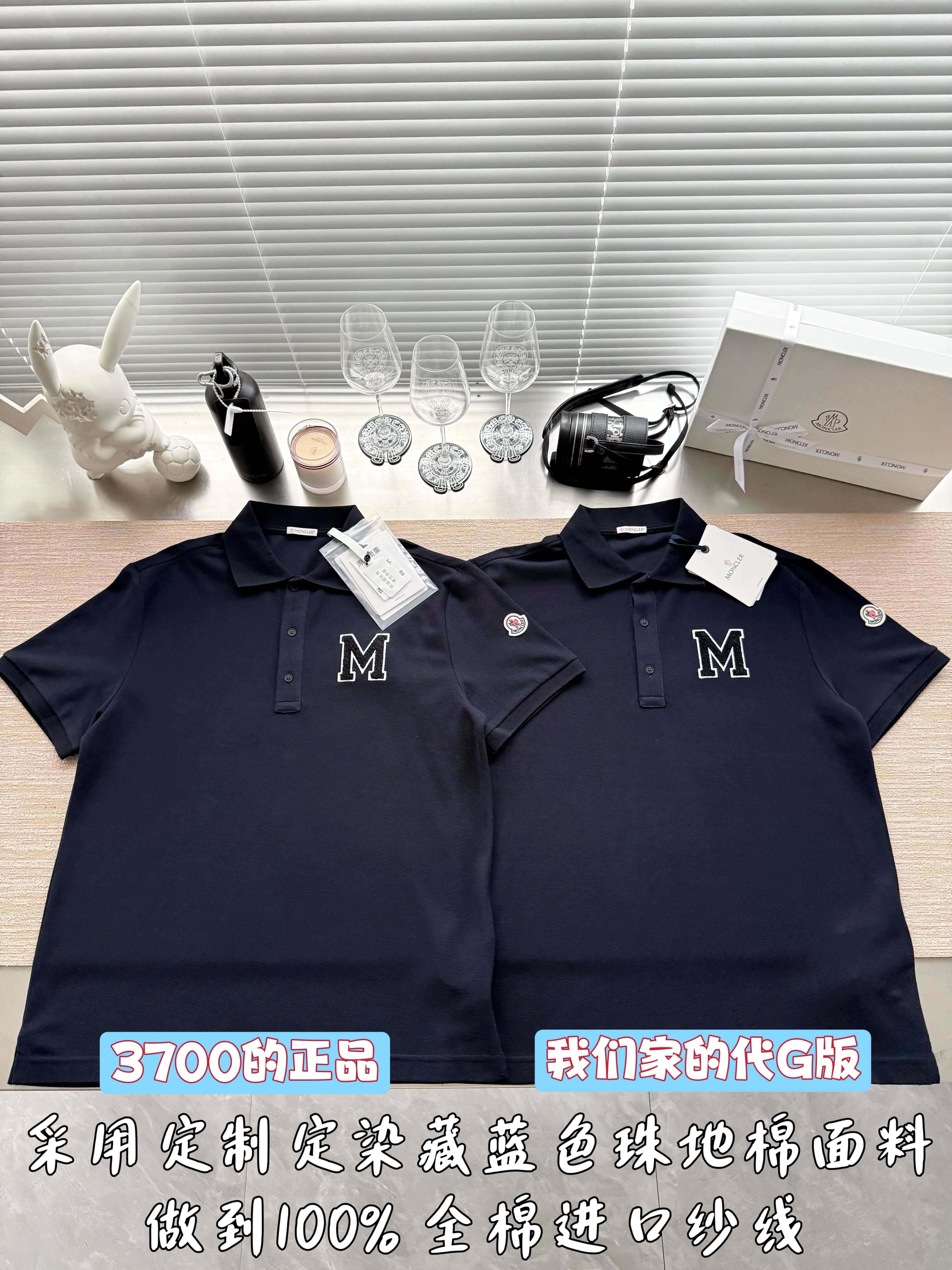 整件衣服3700购买ZP拆解打造,定制藏蓝色珠地棉面料,做到100%全棉进口纱线,定制标志性罗纹polo领,袖口,门襟开模定制字母标识纽扣,胸前饰以M字母毛巾绣贴饰,袖口饰以字母标识logo毛毡刺绣贴饰,真正做到1:1copy 闭眼入