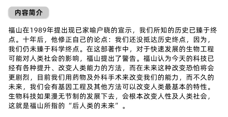 理想国译丛019 我们的后人类未来:生物技术的后果 弗朗西斯 ·福山 著