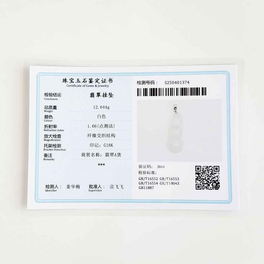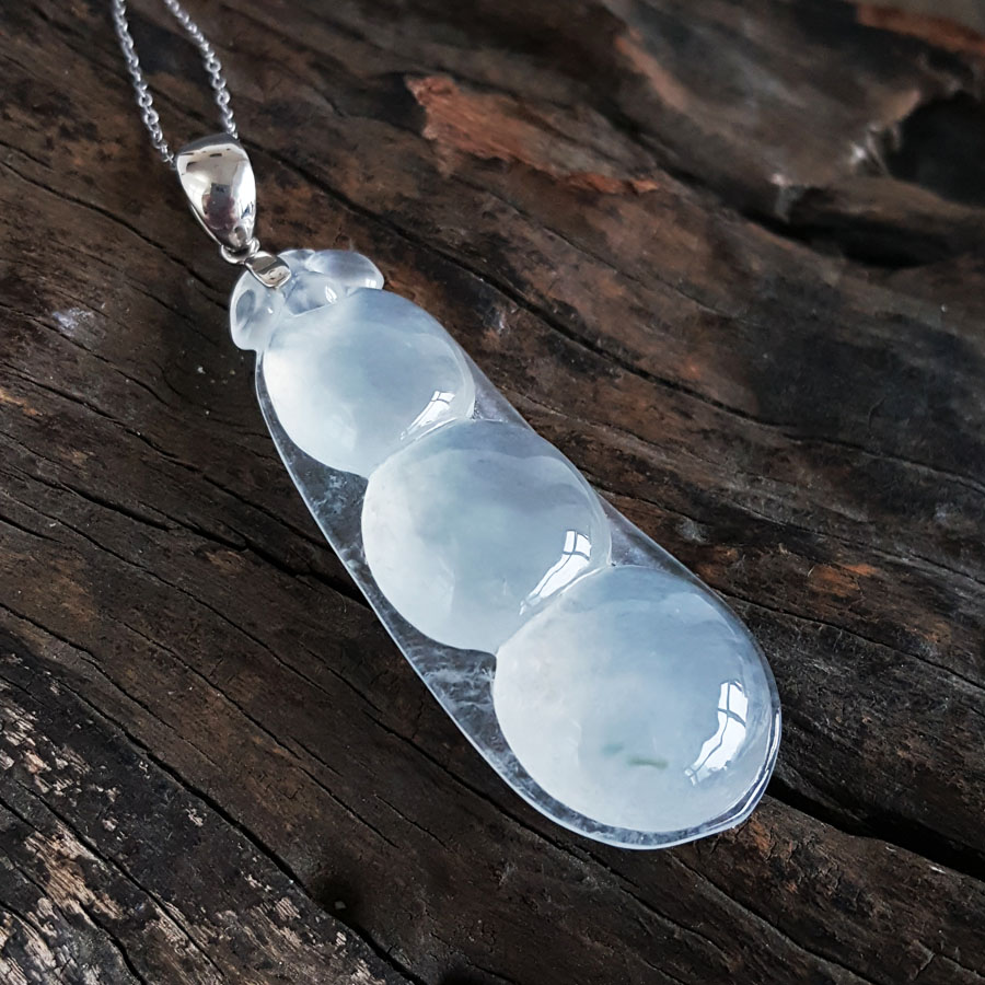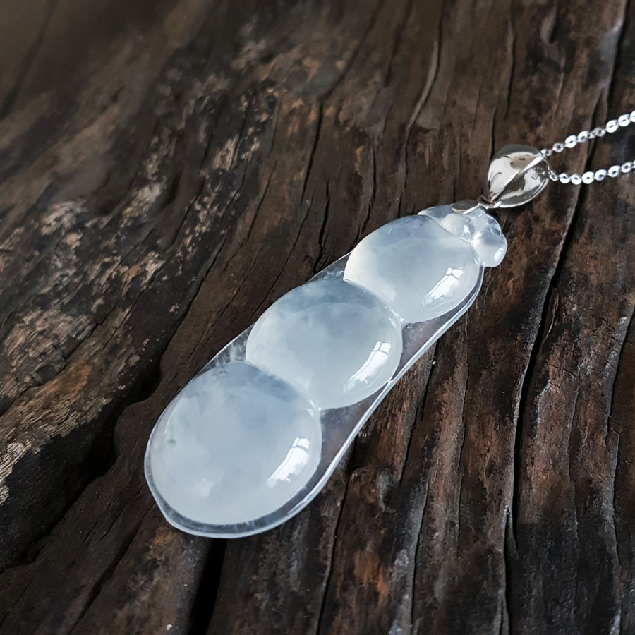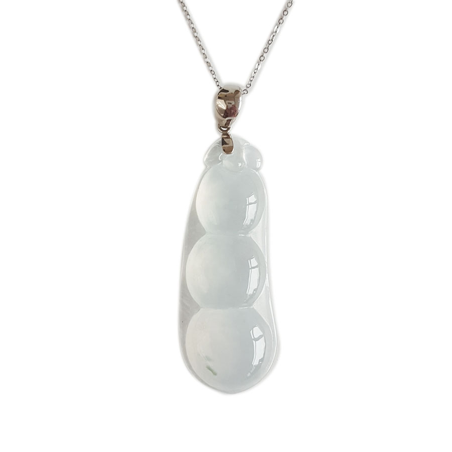 名称 | AU750收藏级白金镶天然细腻白色高冰种福豆翡翠吊坠项链 |