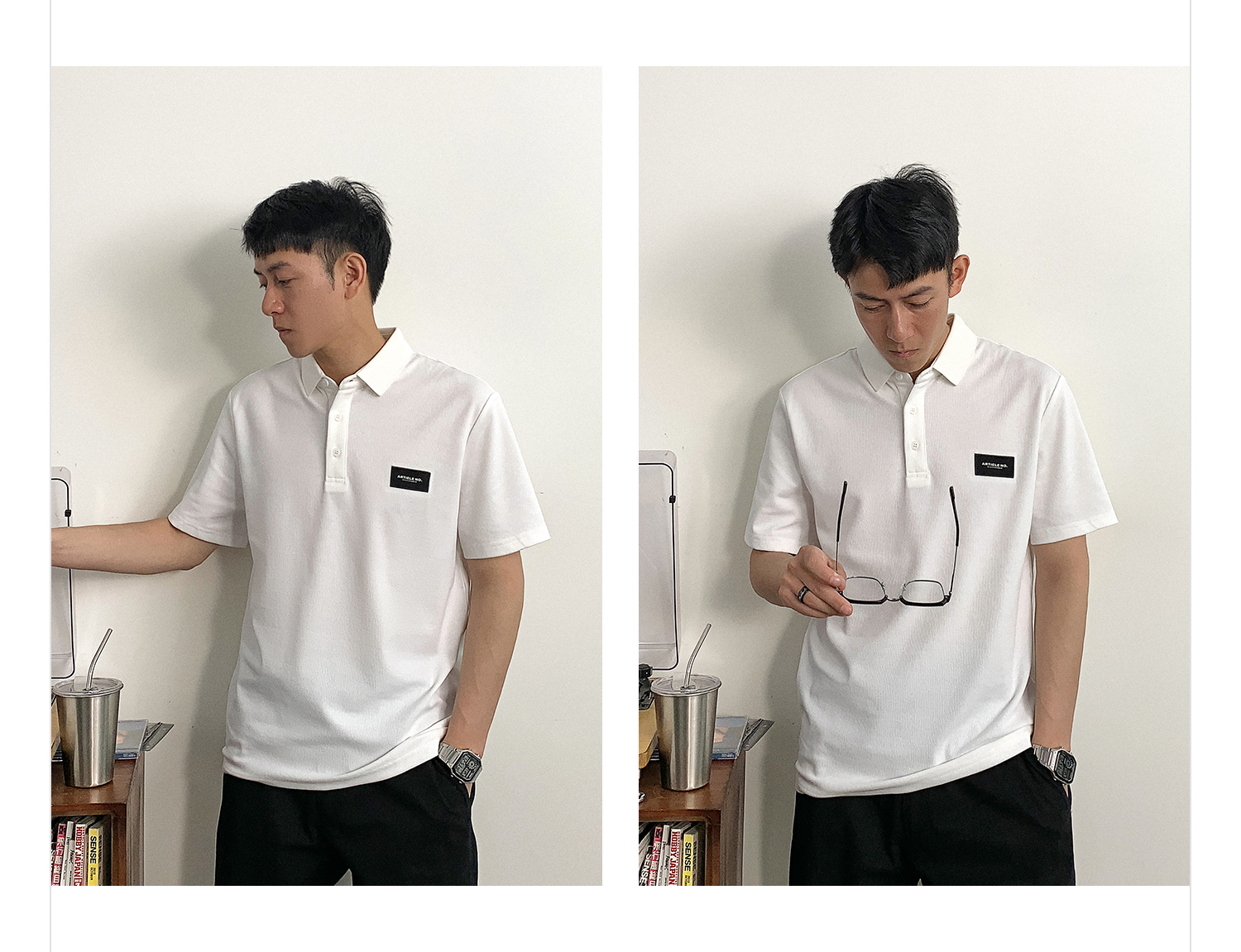 徐太浪日系简约纯色商务短袖Polo衫男夏季潮牌男装休闲翻领t恤ins