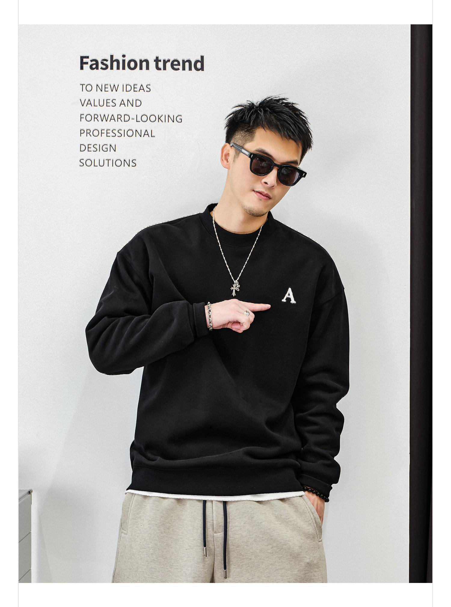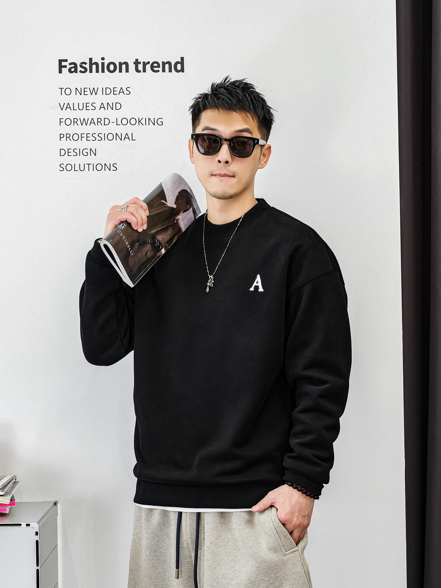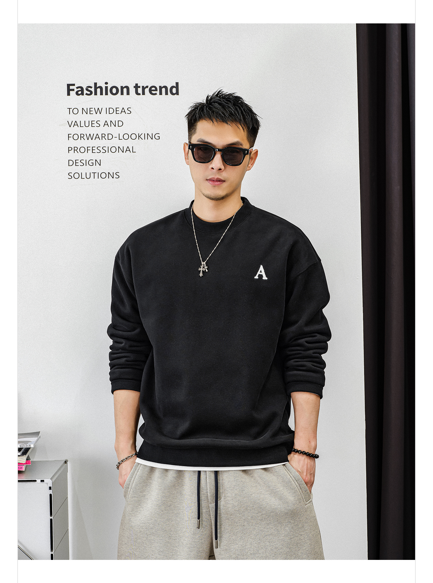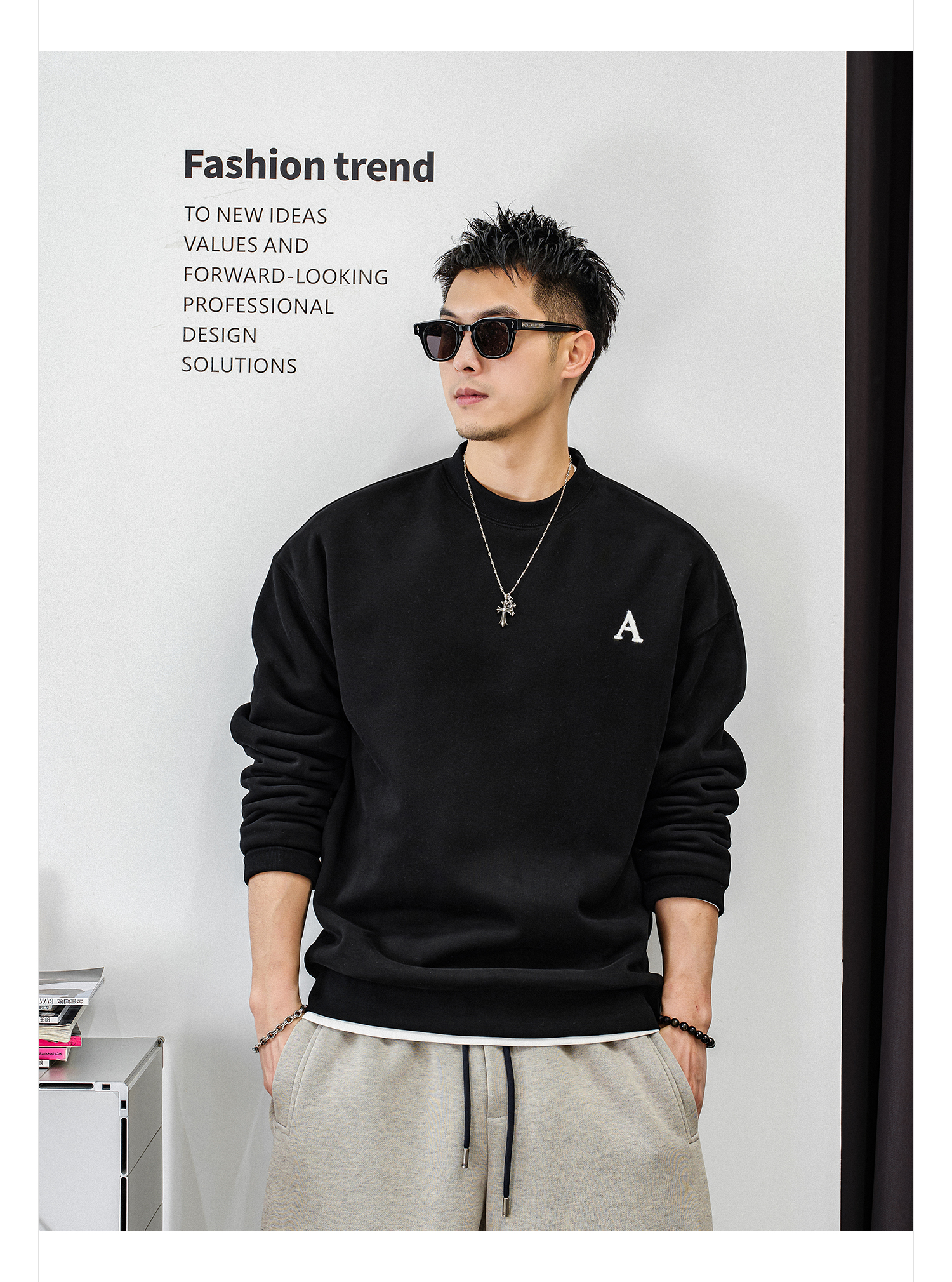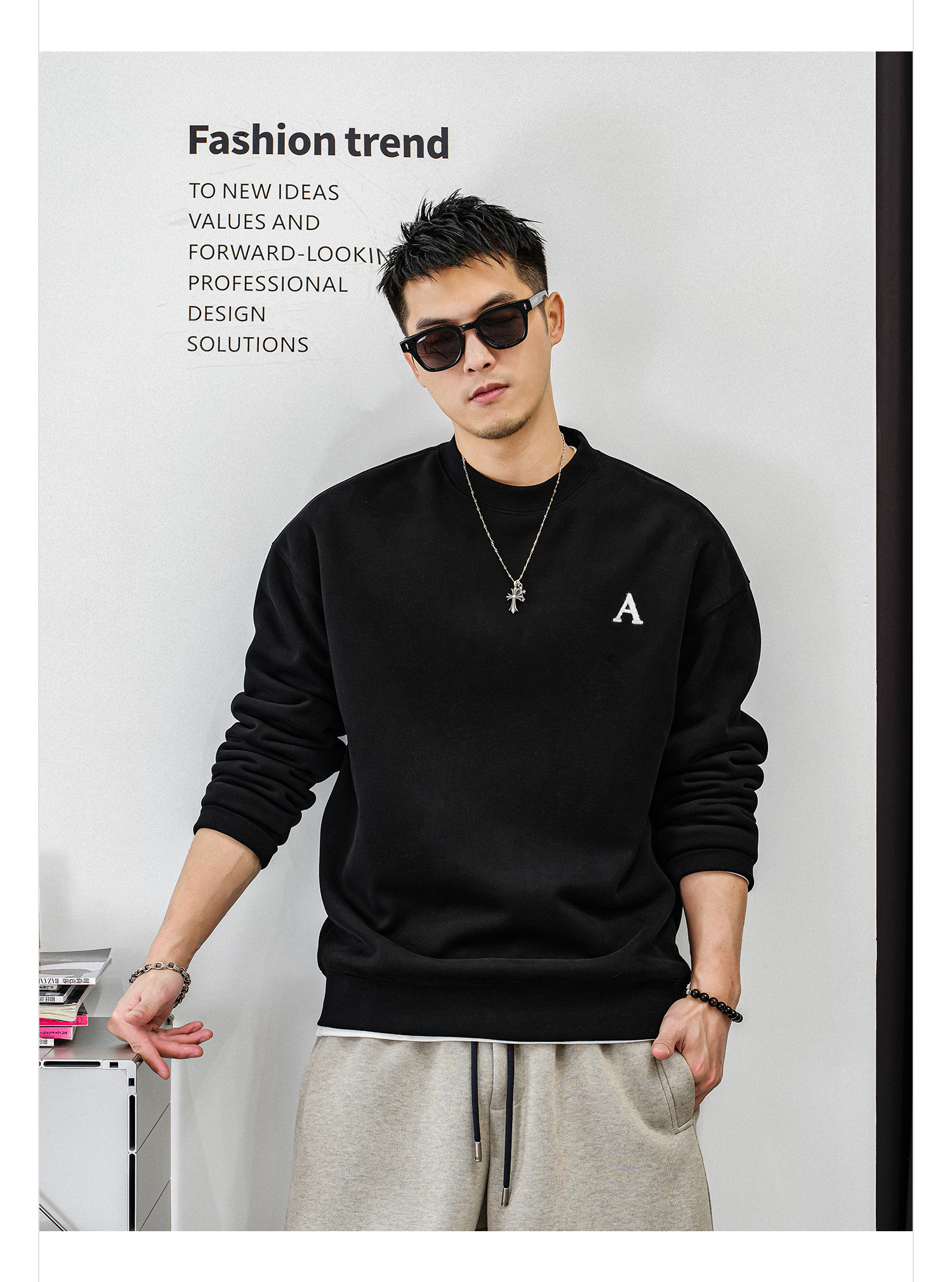 徐太浪【字母刺绣 休闲风】加绒卫衣男秋冬款大码内搭打底衫上衣