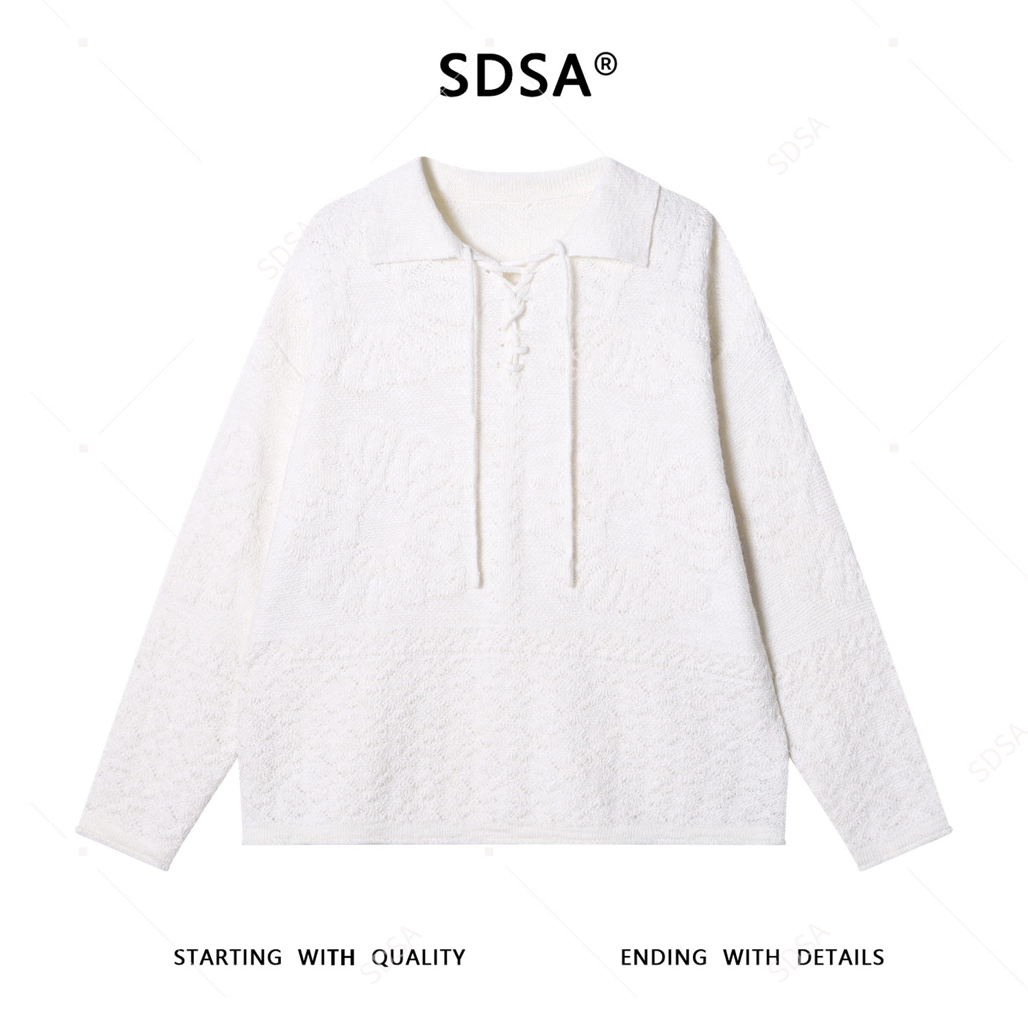 91287SDSA男士秋冬新款痞帅男装设计感系带宽松毛衣镂空翻领针织衫时尚