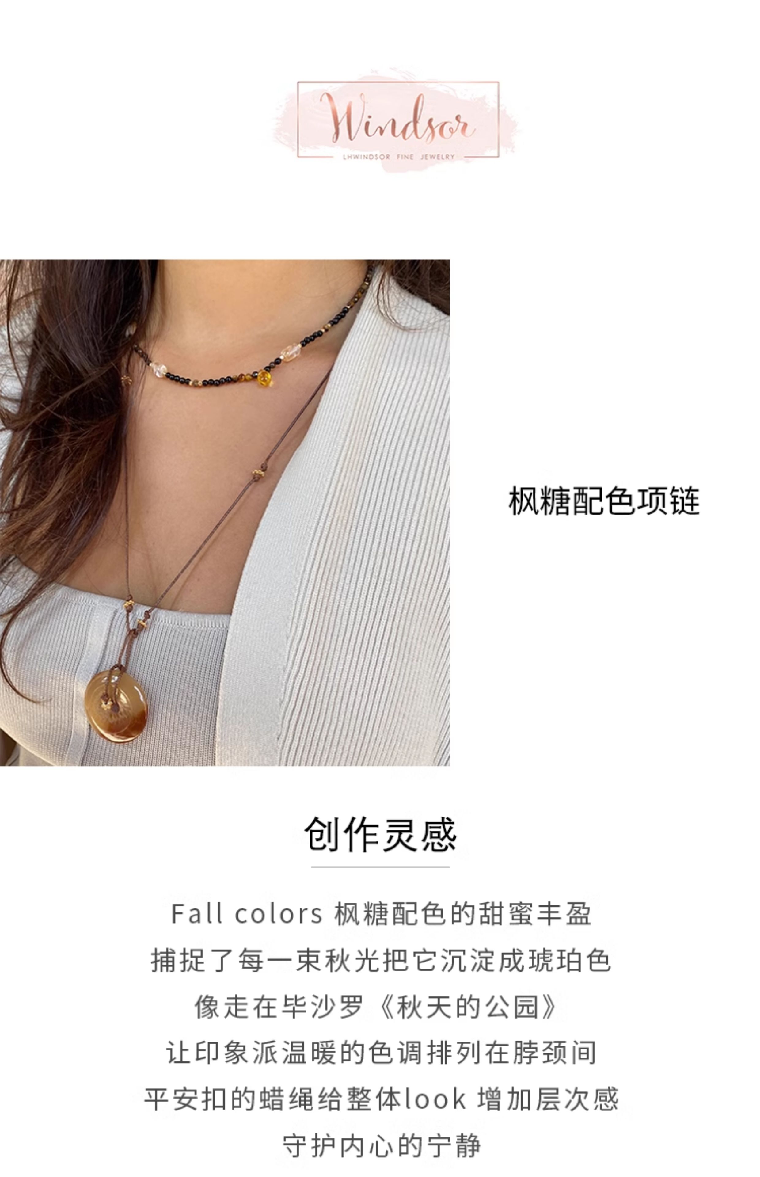 LHWINDSOR 原创设计枫糖配色项链珠串项链平安扣项链