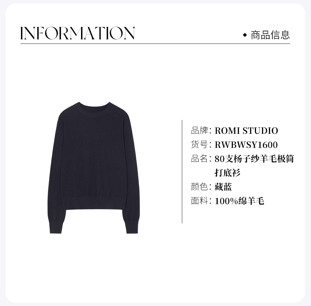 ROMI STUDIO“温暖如初”100%高支绵羊毛扬子纱套头毛衫 RWBWSY1600