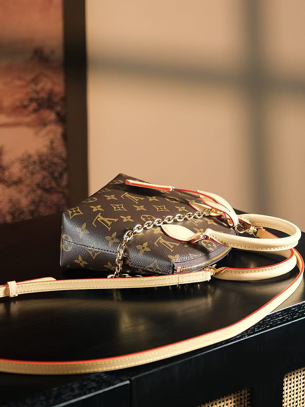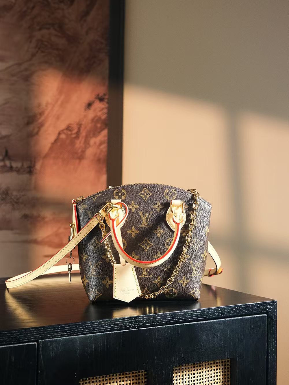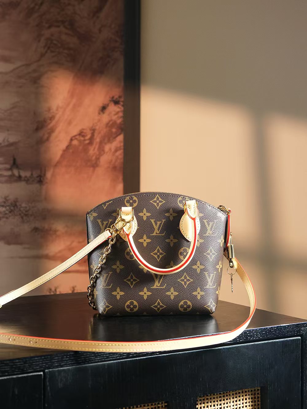 本款Lockit BB手袋自1960年代的Knick-Knack手袋汲取灵感,可灵活切换多种背携方式。Monogram涂层帆布搭配弧形上缘和椭圆饰边,道出原版设计的经典元素。挂锁开合再度致敬品牌悠久传承。