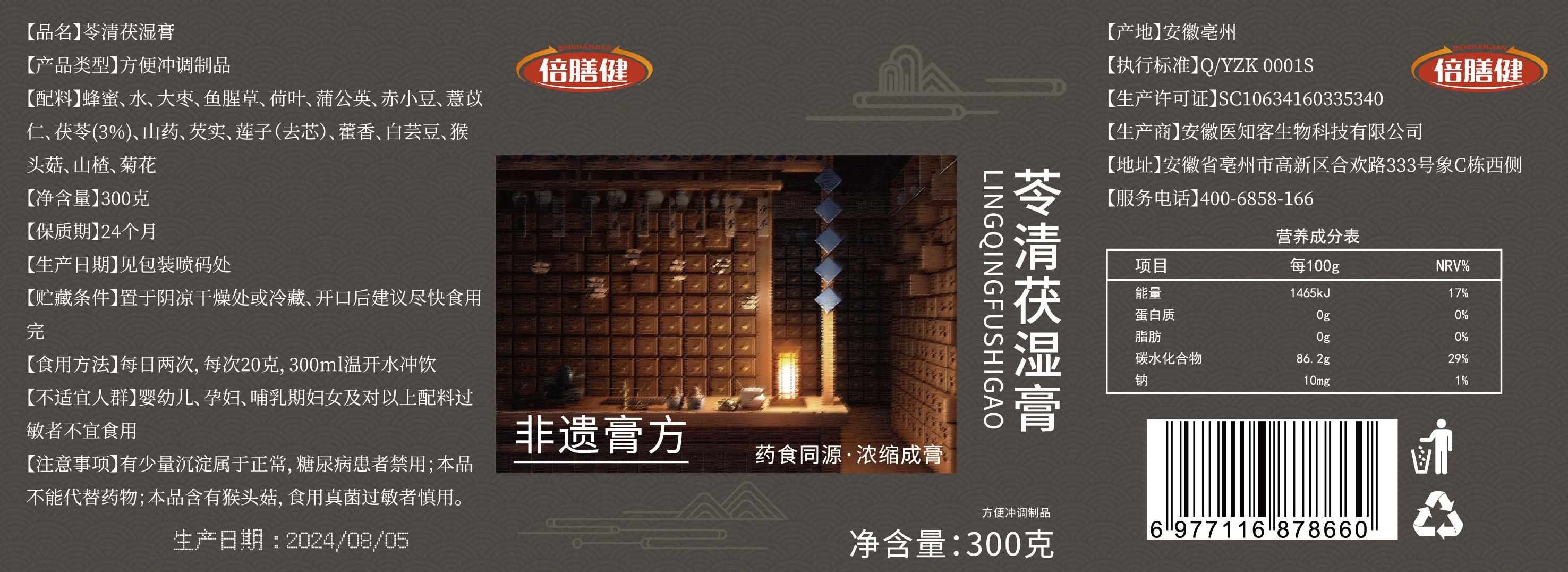 【旗舰正品】苓清茯湿膏伏湿膏芸纤古法熬制薏仁膏草本膏体浓稠300g