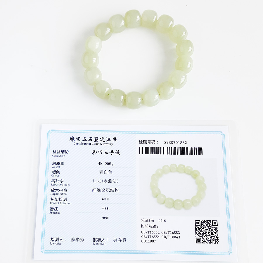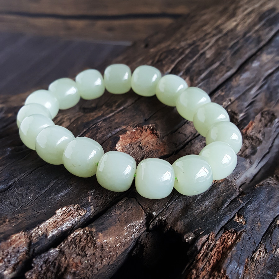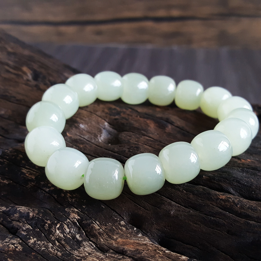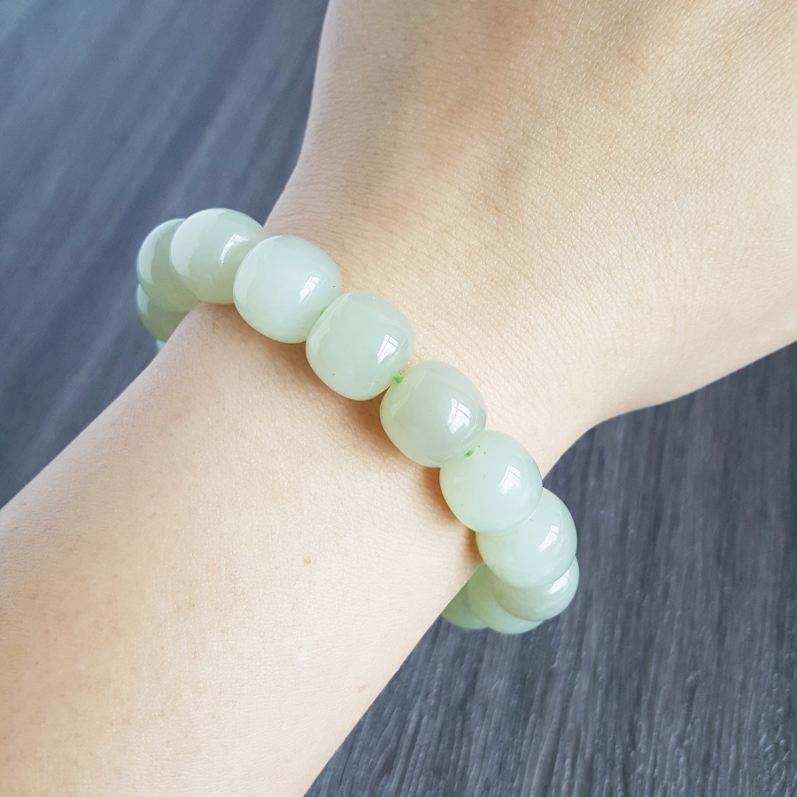 【天然正品】天然新疆料无杂裂10*12MM湖水绿和田玉手串手链10*12MM(皆取最大值)010823XY04特价